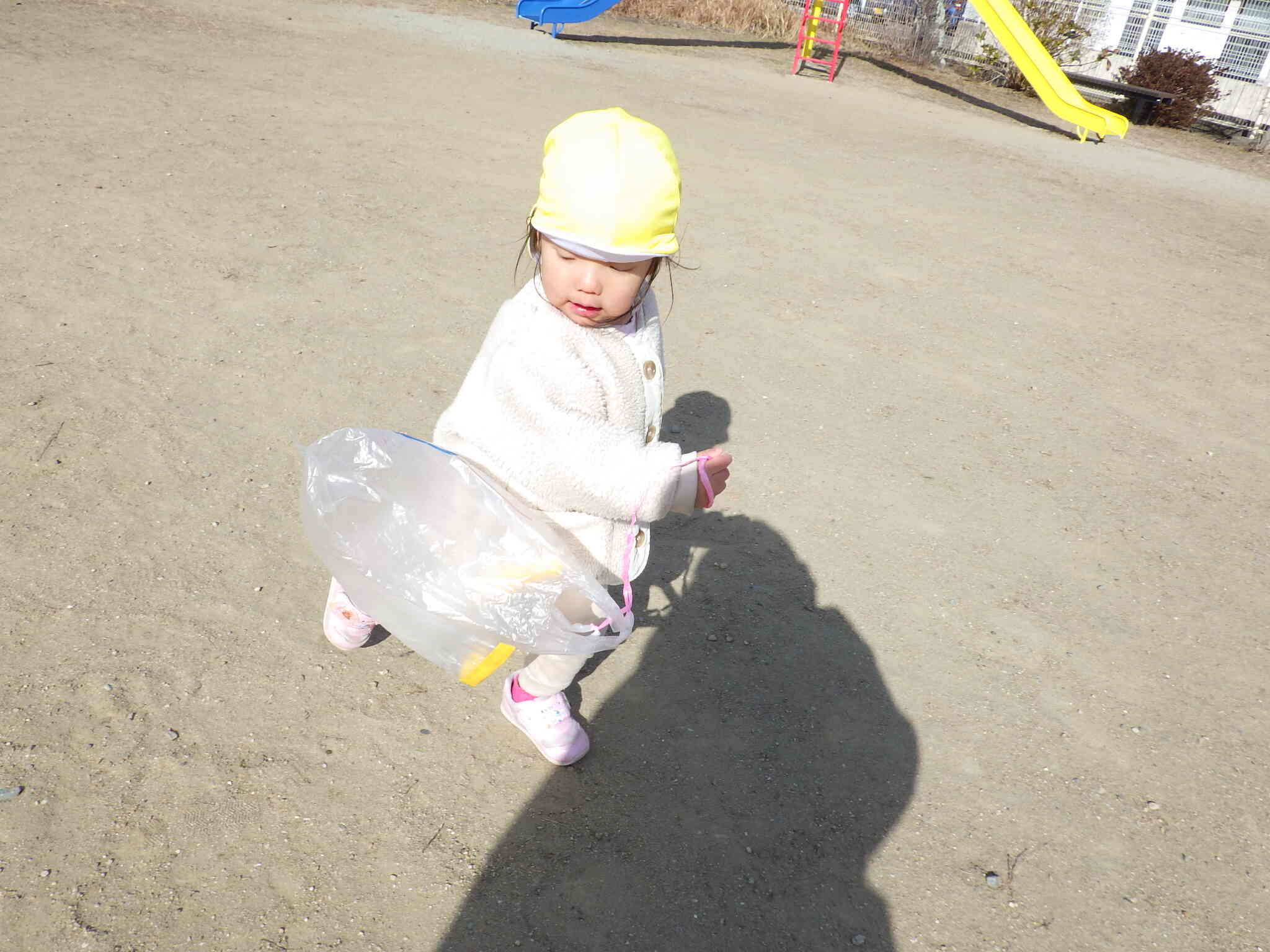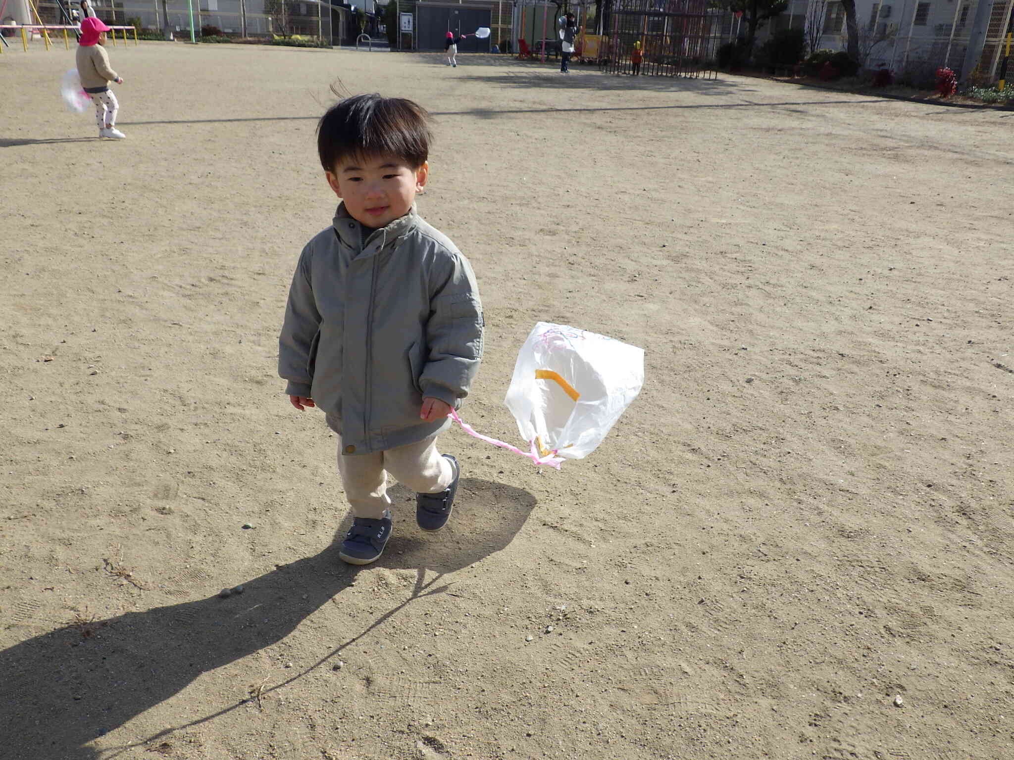 凧あげしたり、すべり台、砂遊びと自分で好きな遊びを見つけて、先生や友だちと一緒にあそびます♪