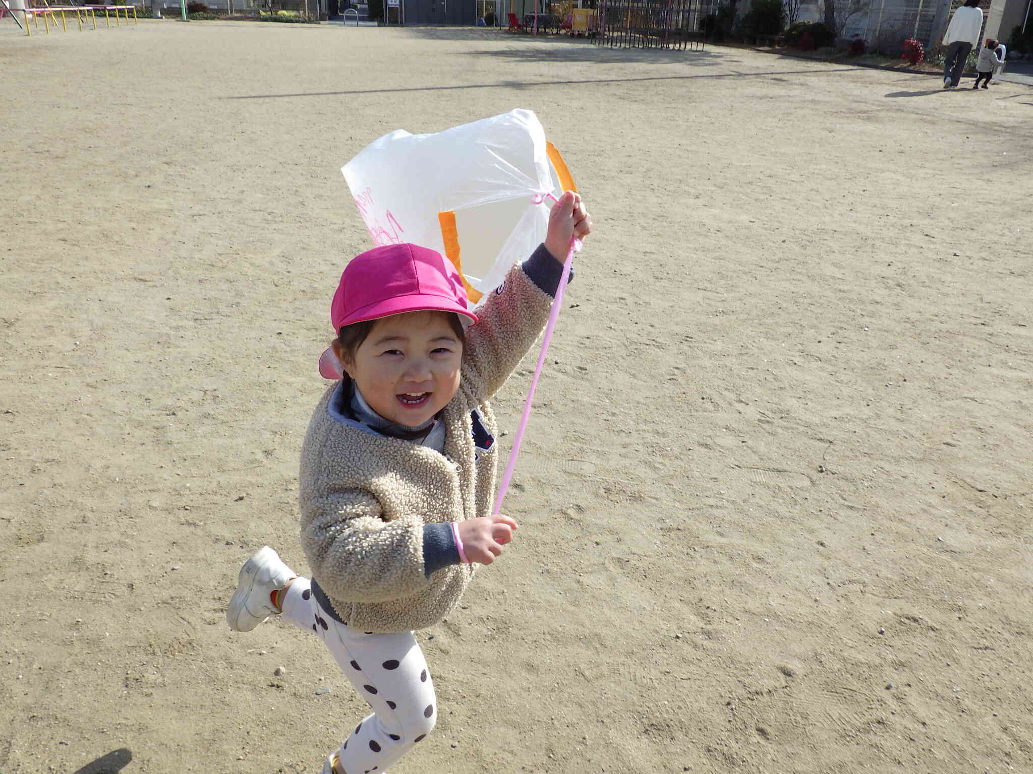 いっぱい走ると、凧がフワフワっと上がって楽しいね♪