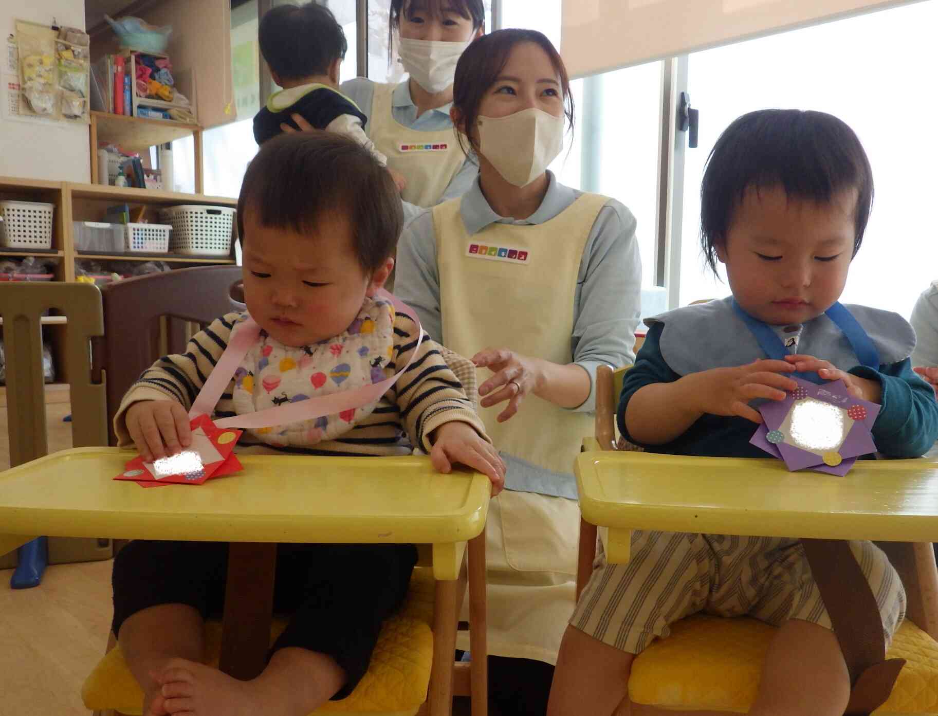 4月生まれは、0歳児さんのお友だち2人です♪