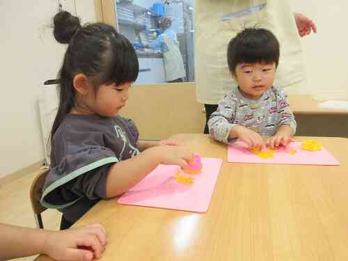寒天をクッキー型を使って型をとったよ♪みんな上手に型をとっていました♪
