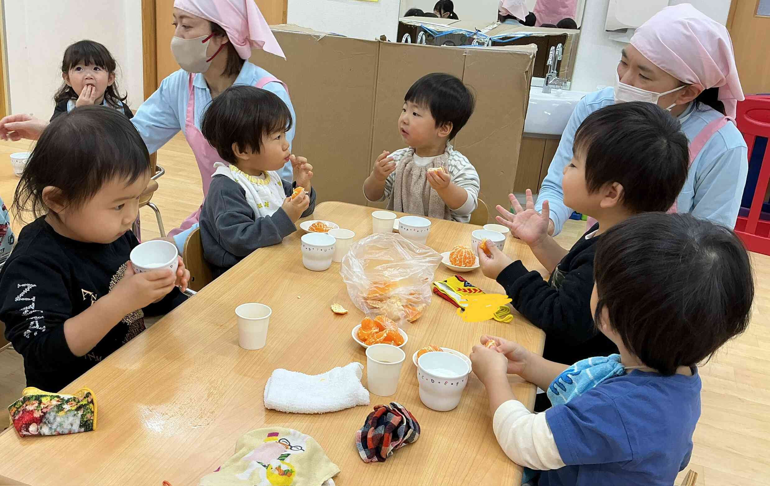 甘くておいしいみかんに、みんな手を伸ばしておかわりをしていました!