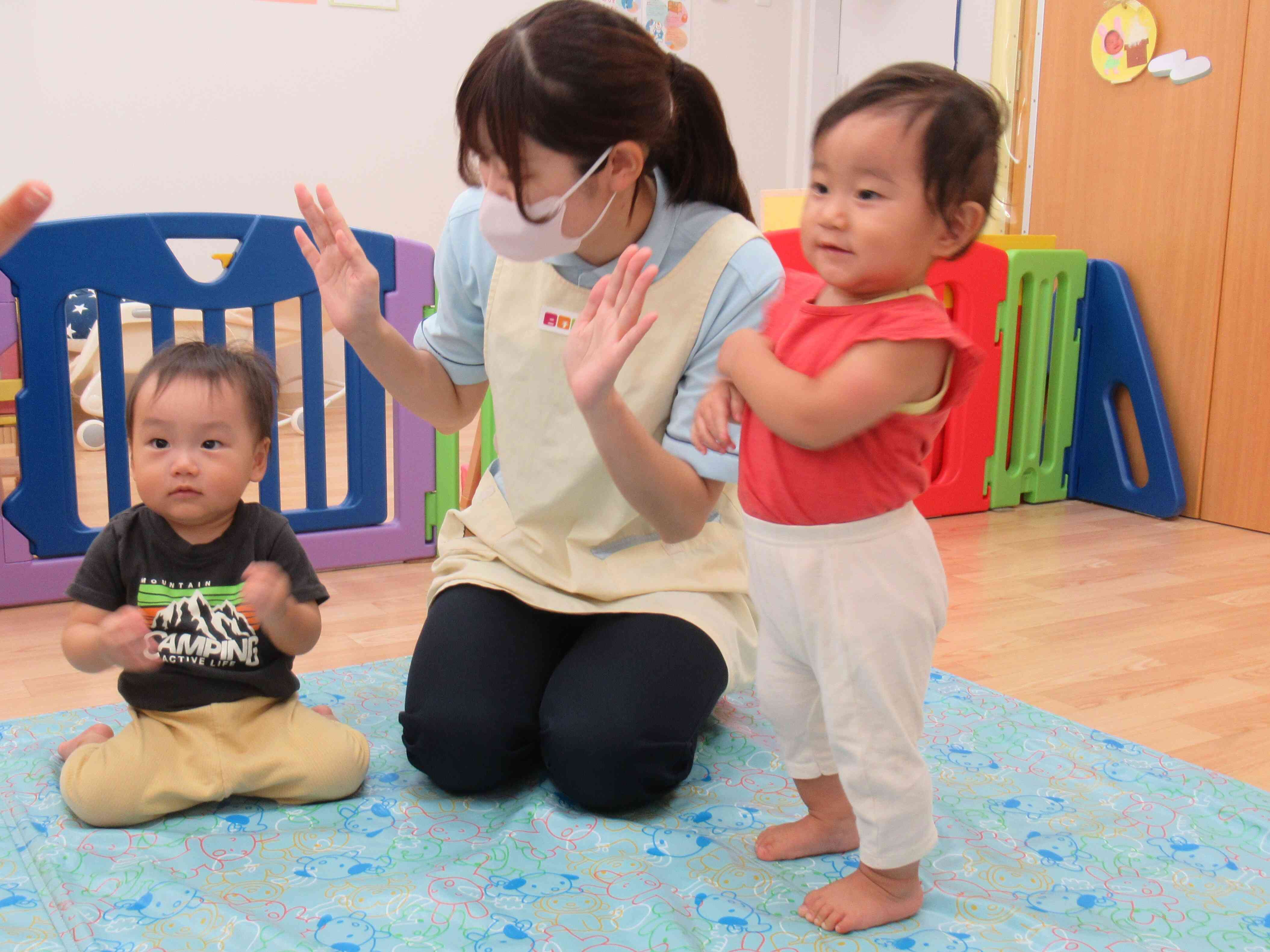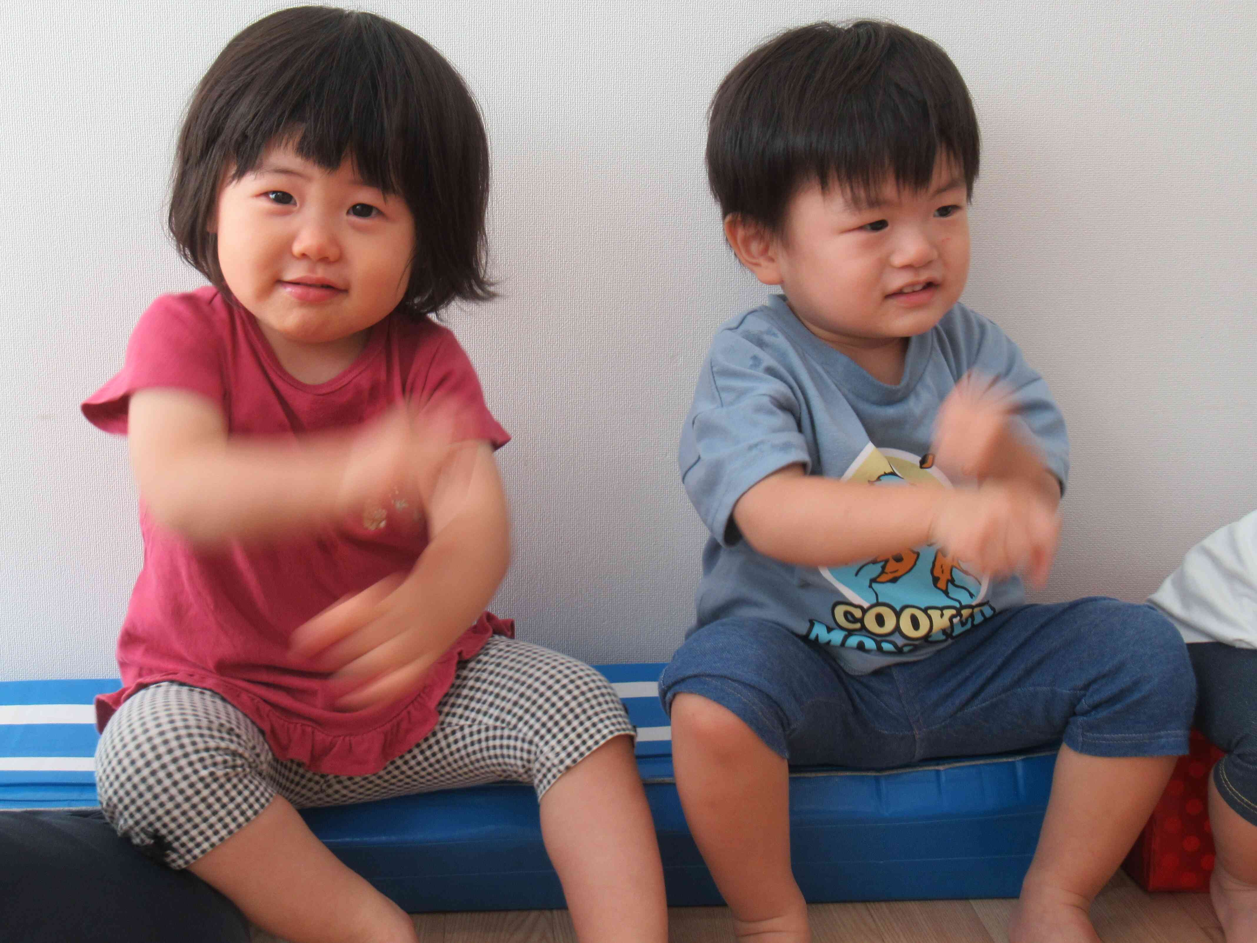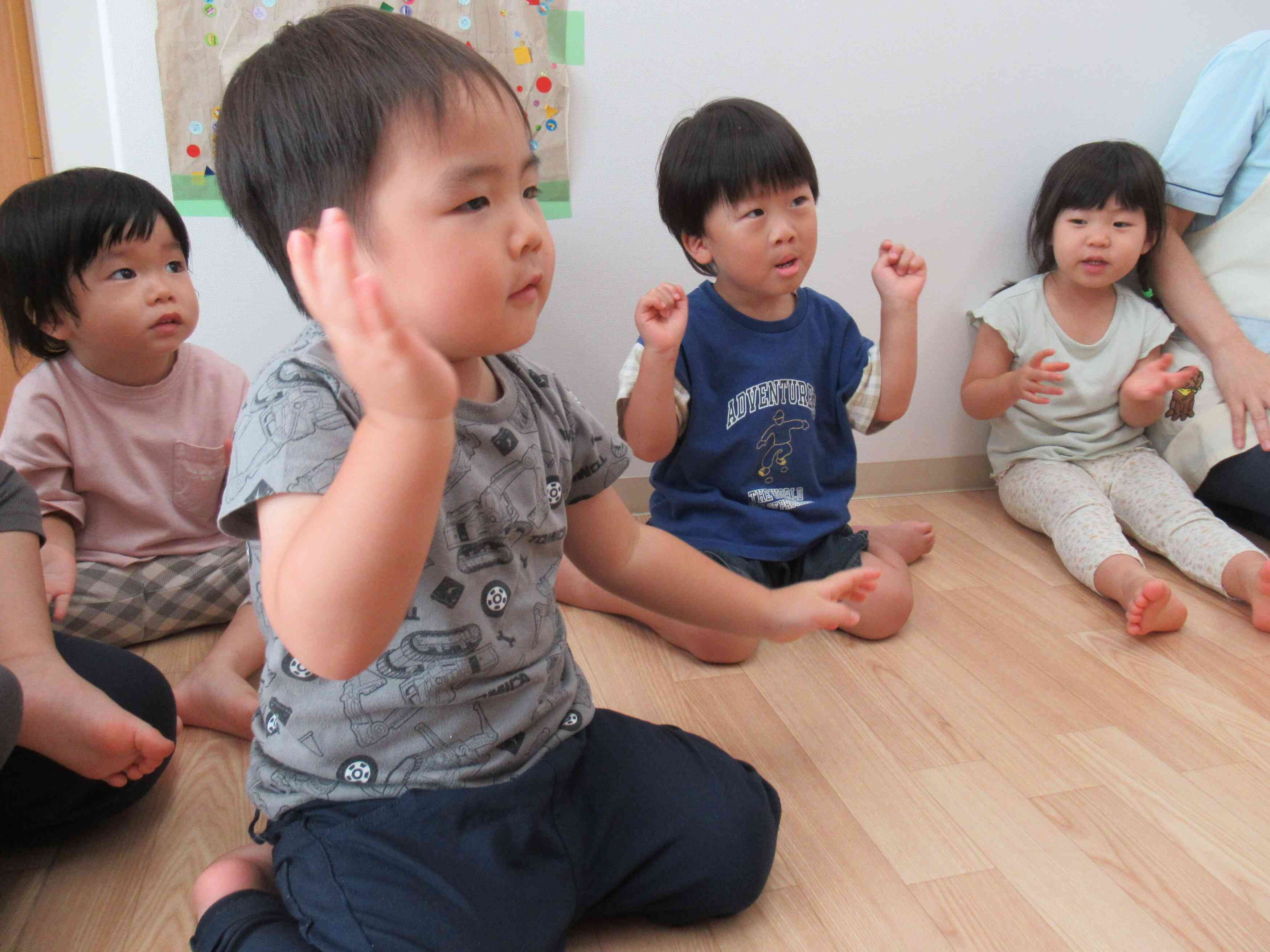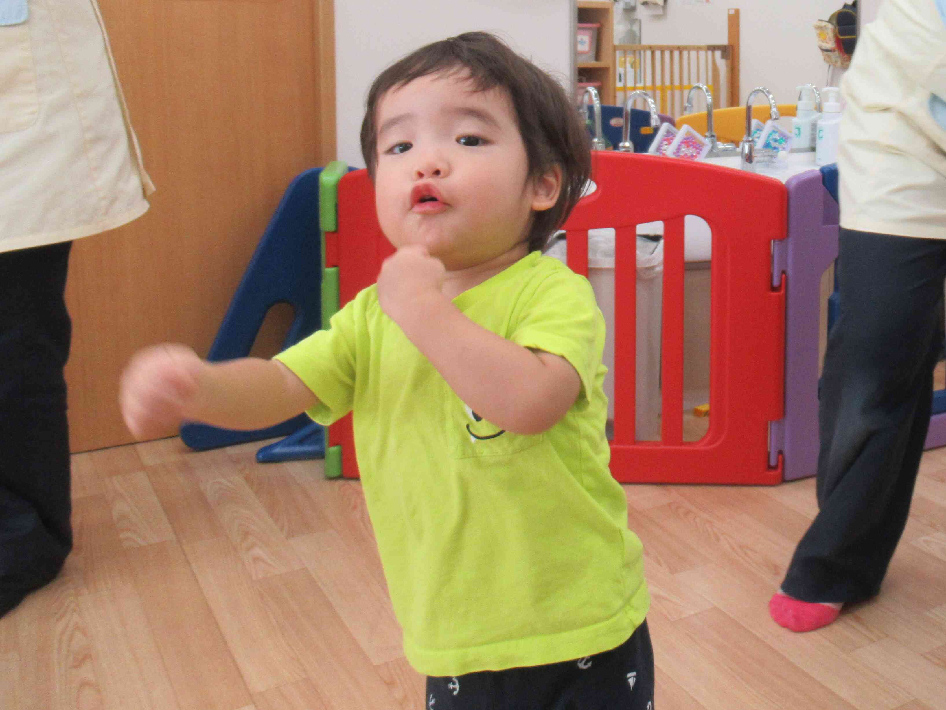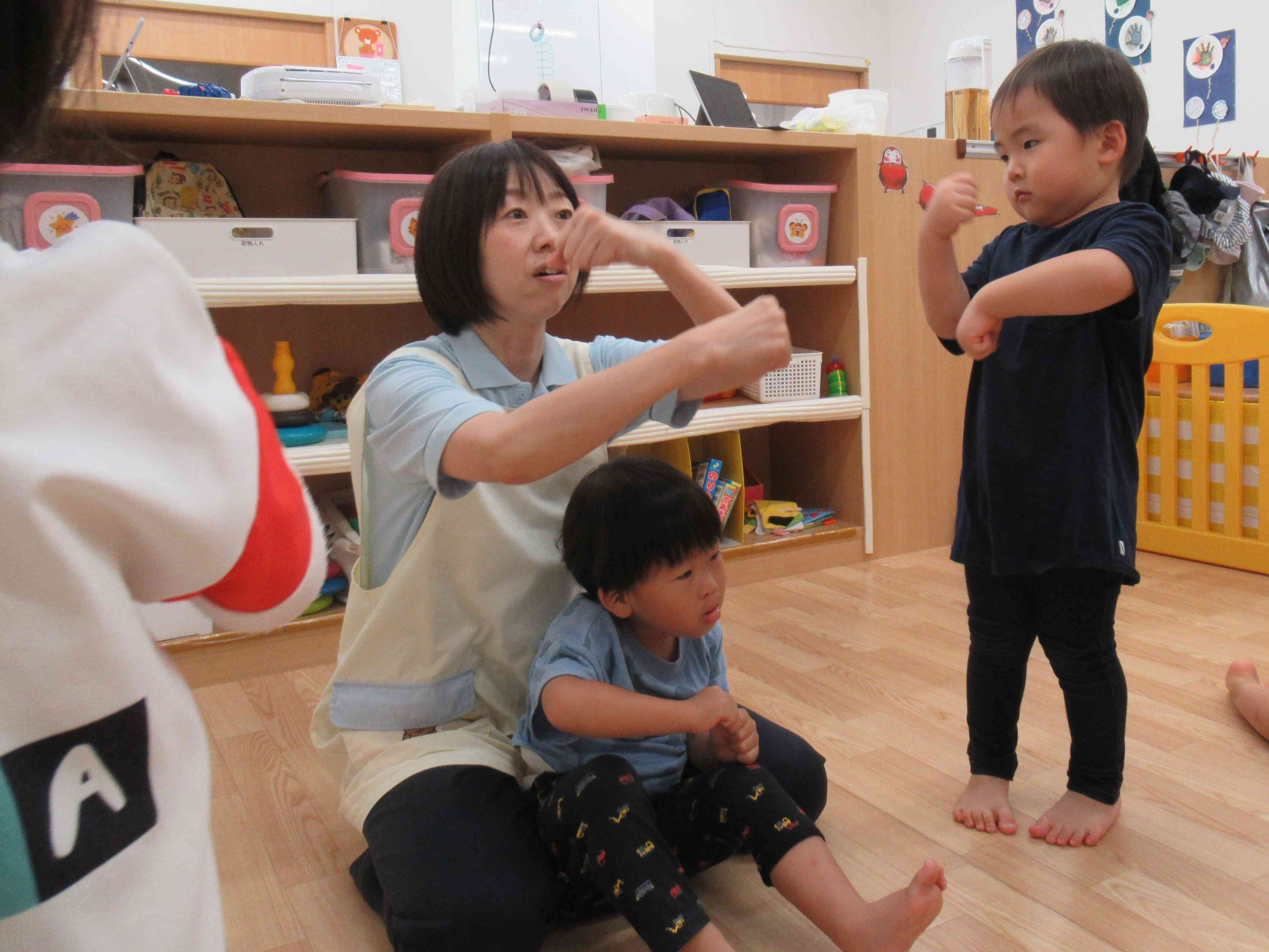 次は「おおきなくりのきのしたで」に合わせて手で栗を作りました。