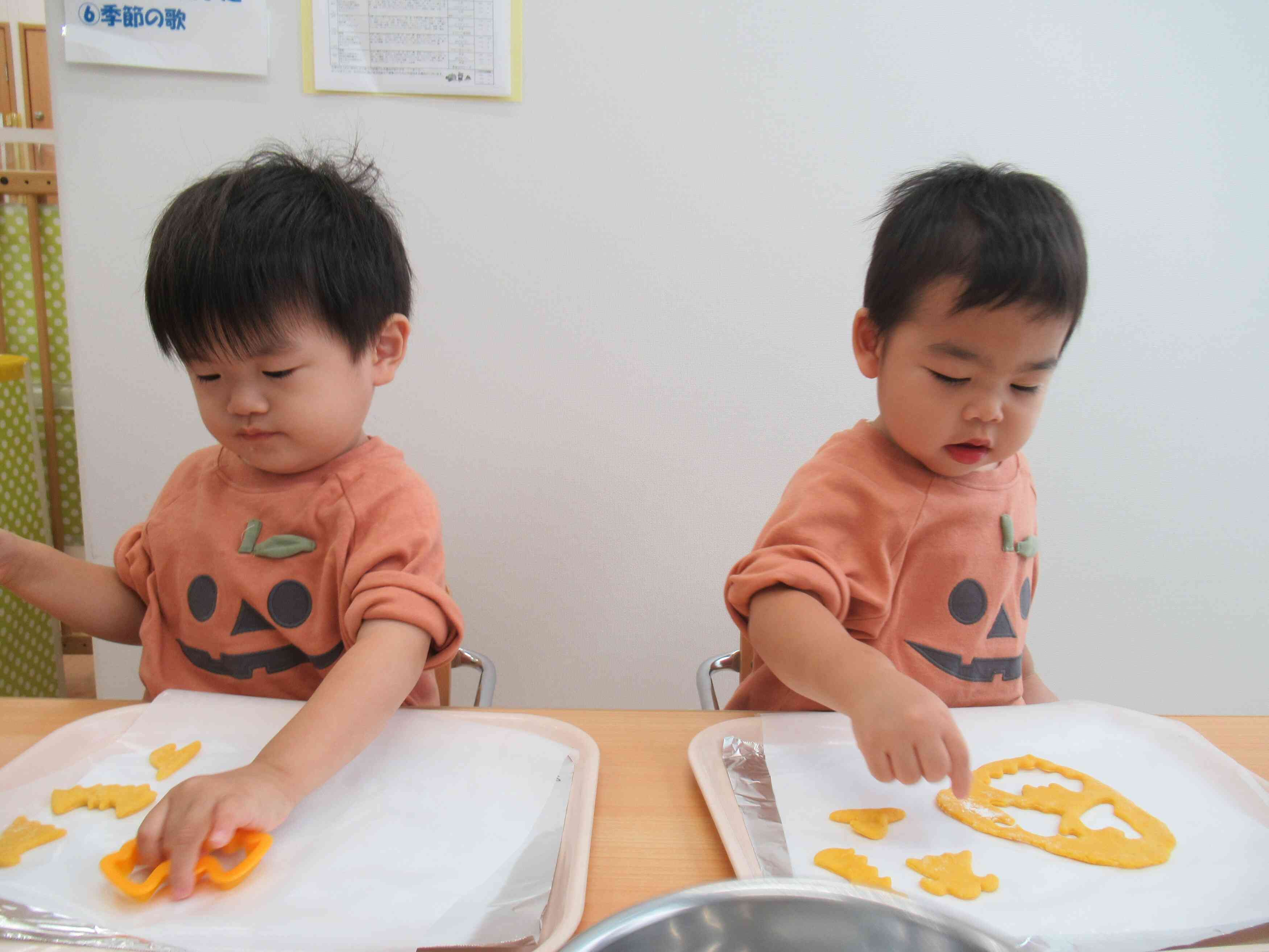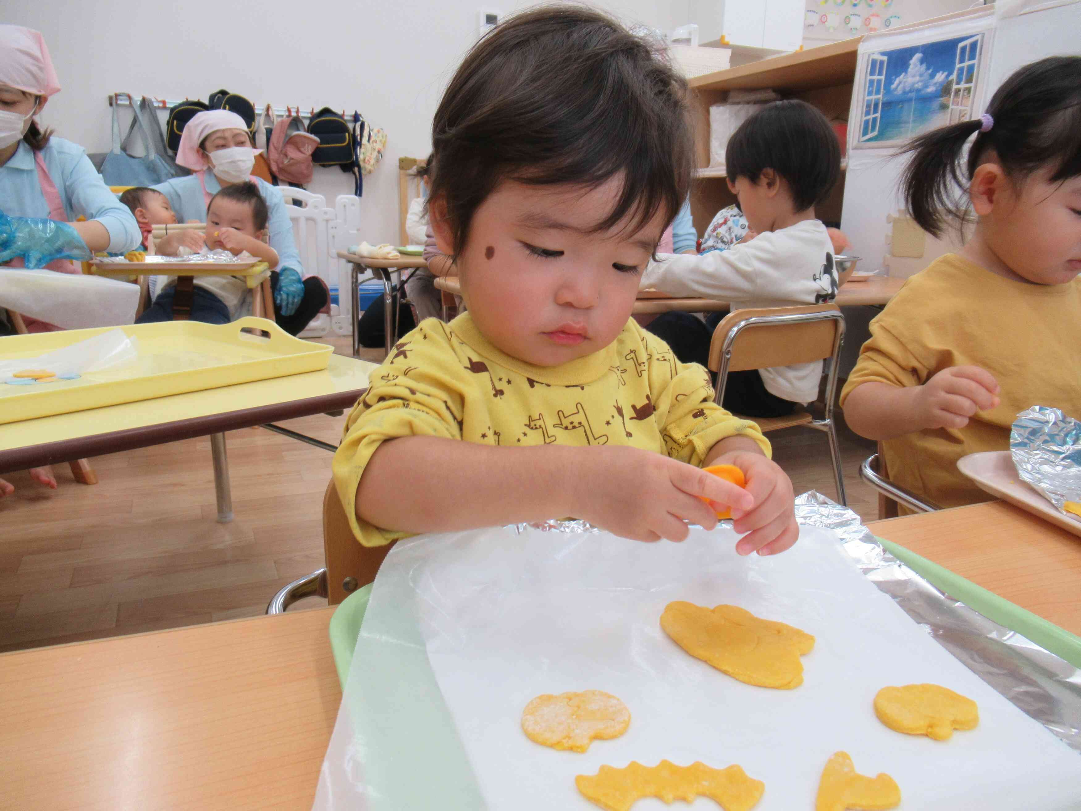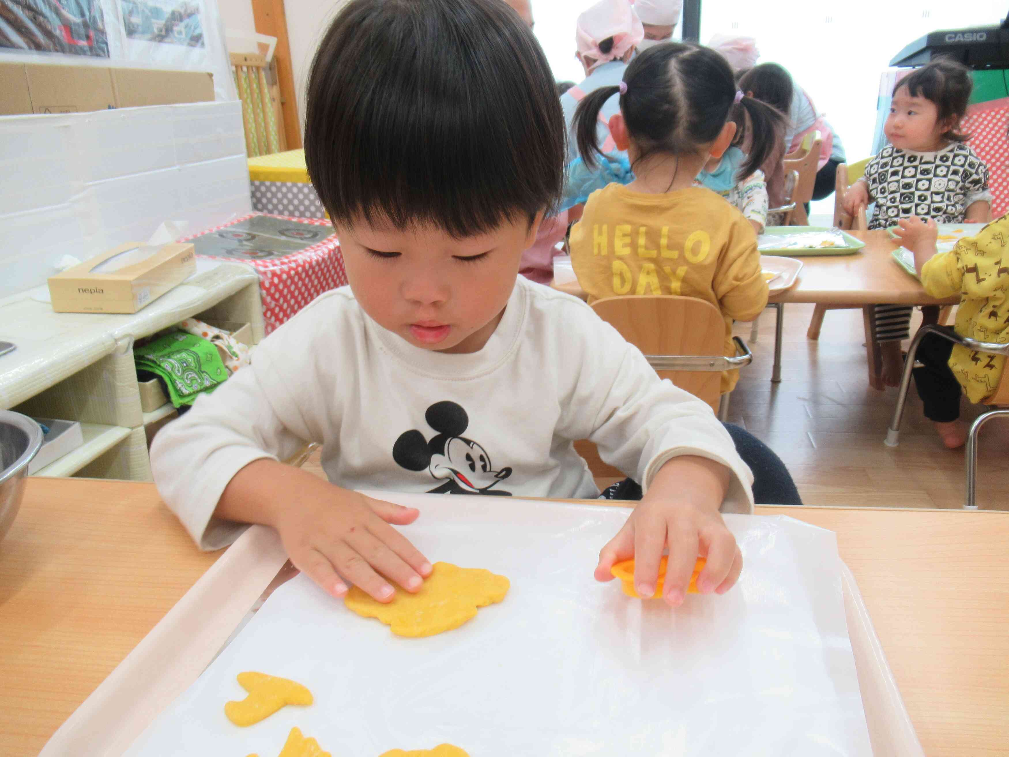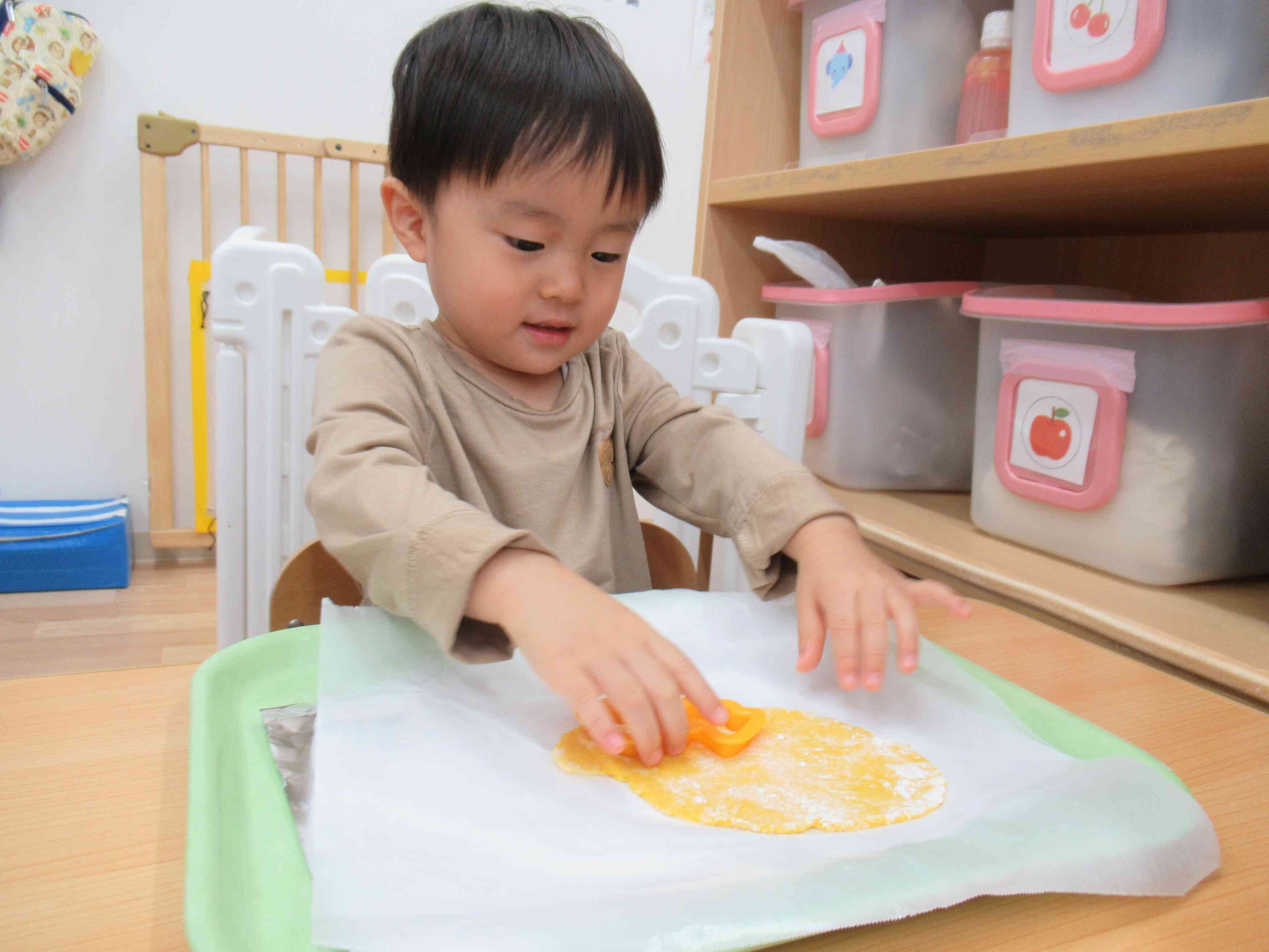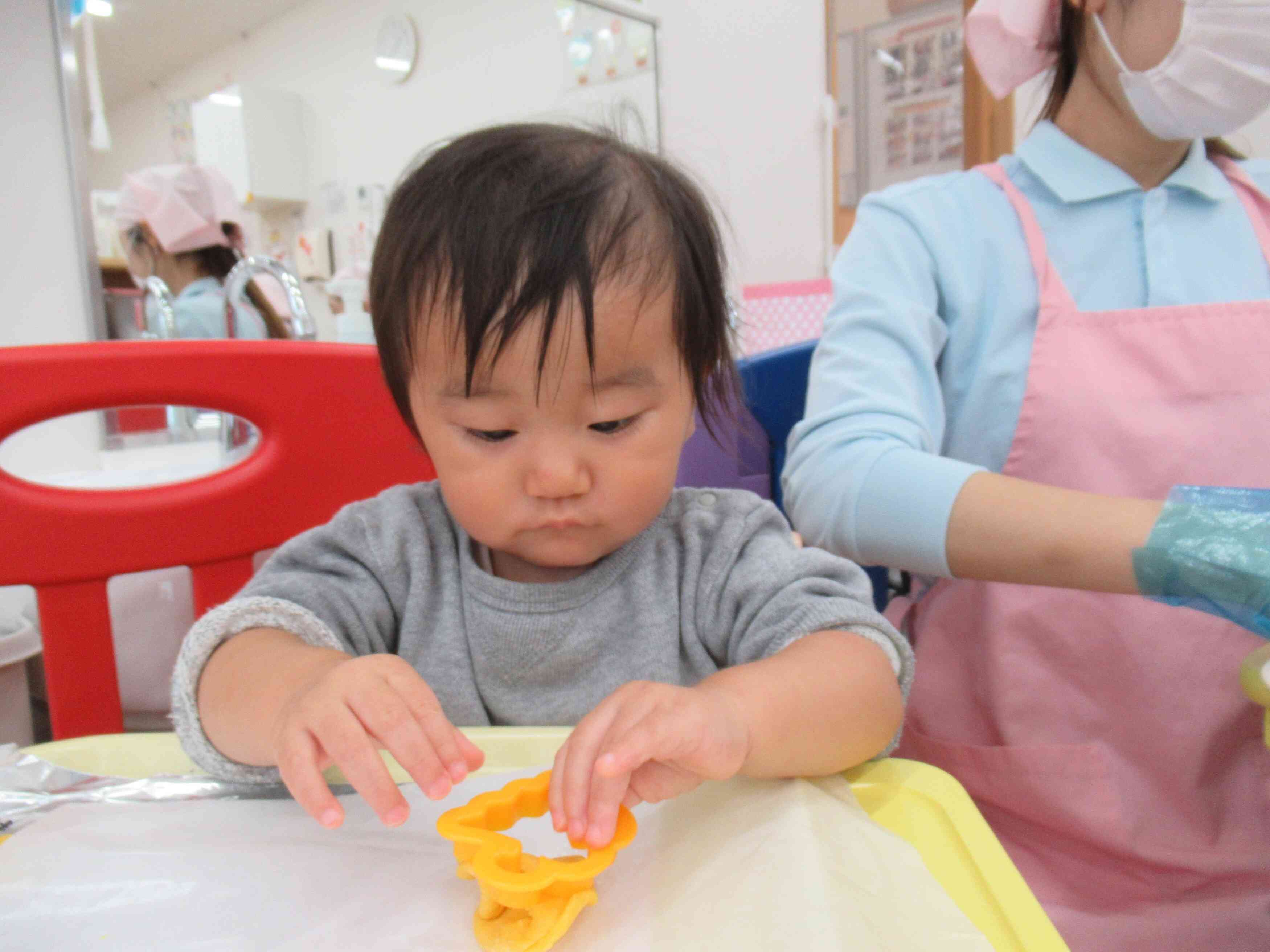 型を抜く場所がなくなったら保育者と一緒に丸めて平らに♪
