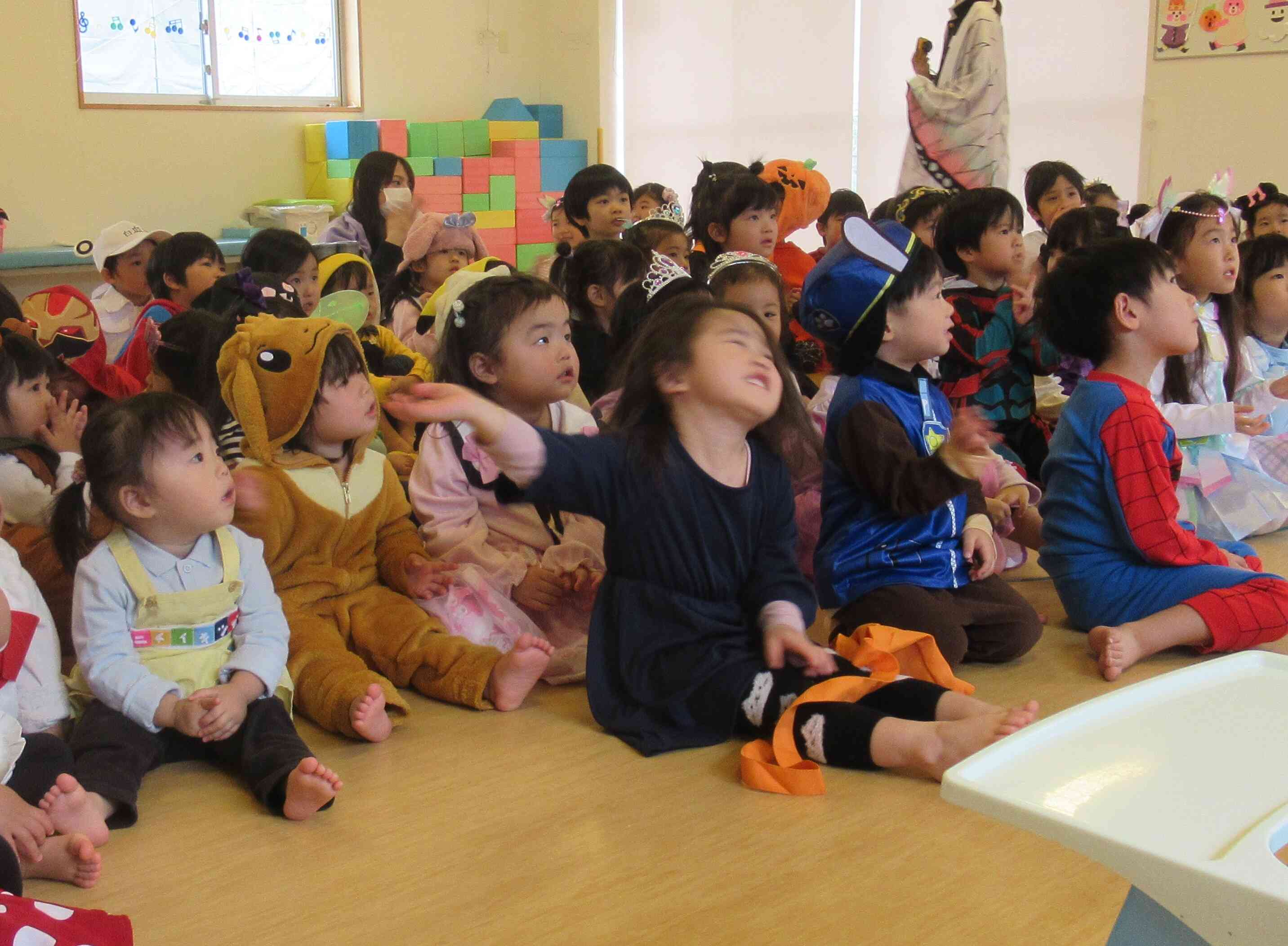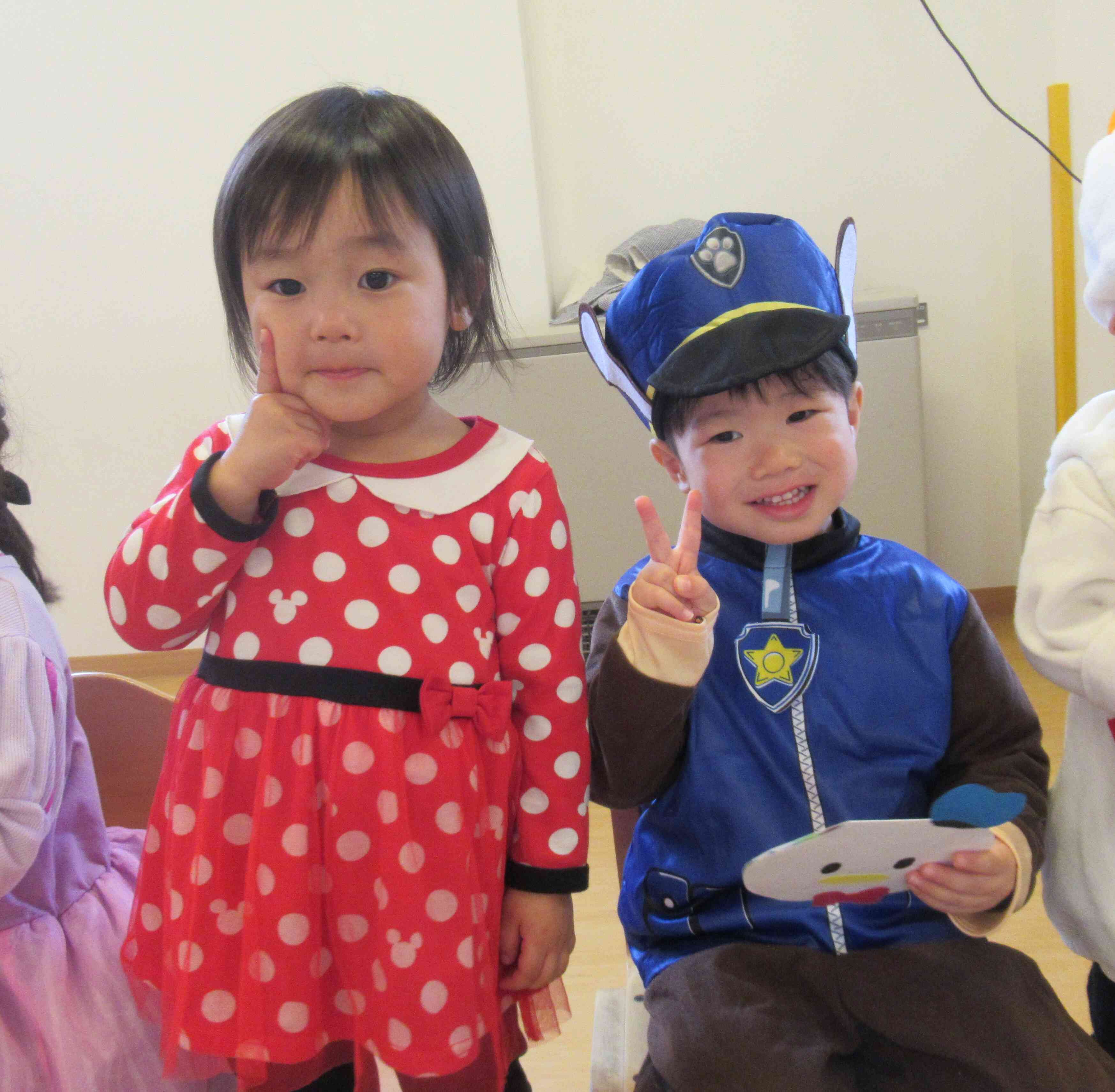 お誕生日のインタビューをしました。「3さいです」とお話しし、3歳のポーズを見せてくれました。「格好いいね!」「おめでとう」とたくさんお祝いの言葉をみんなで伝えました。