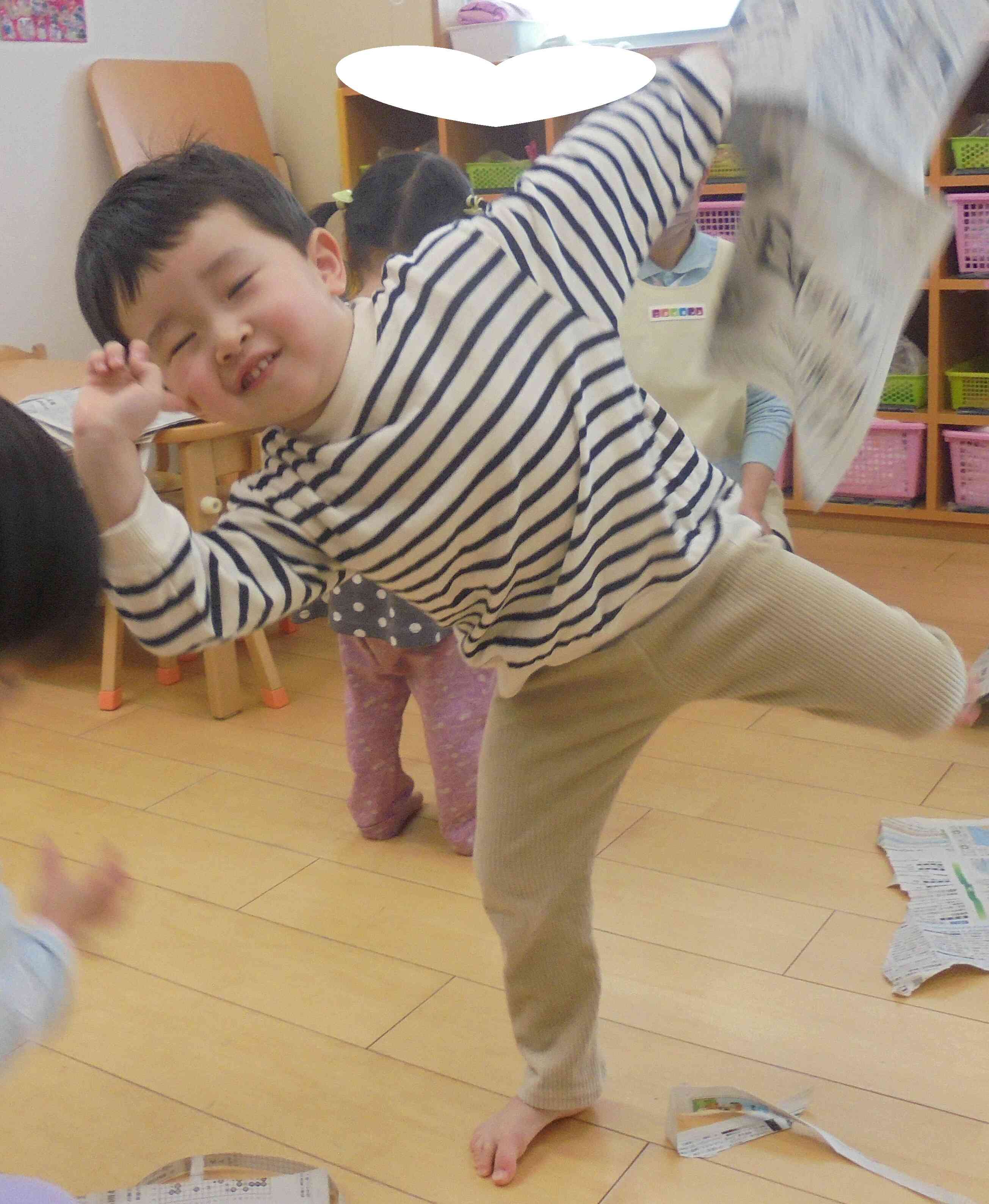 新聞紙遊びの様子(うさぎ組)