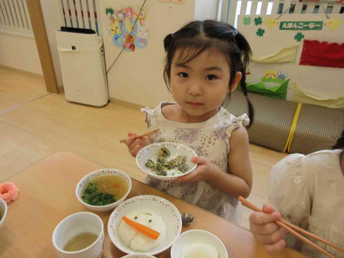 給食は運動会にちなみ、ハチマキを巻いた子どもイメージして