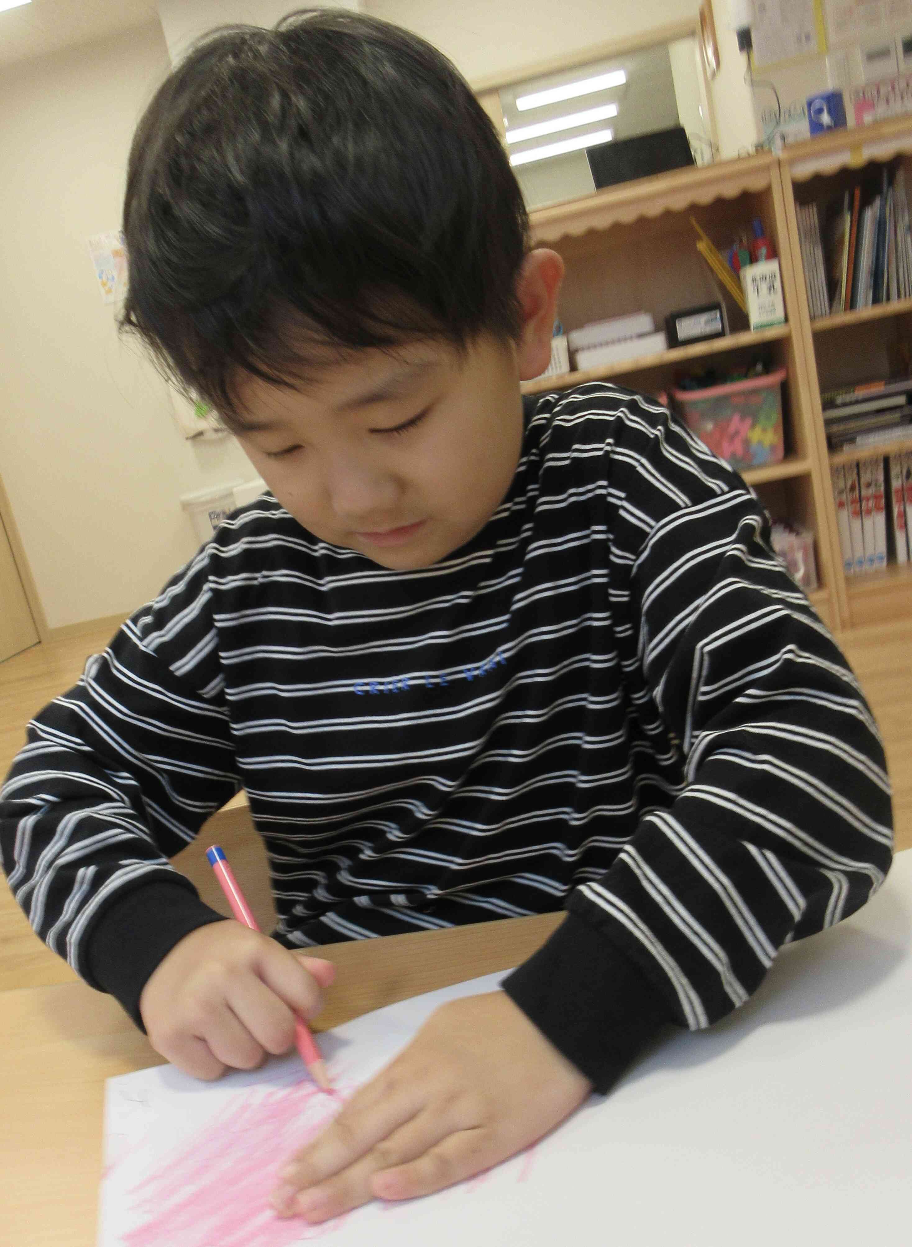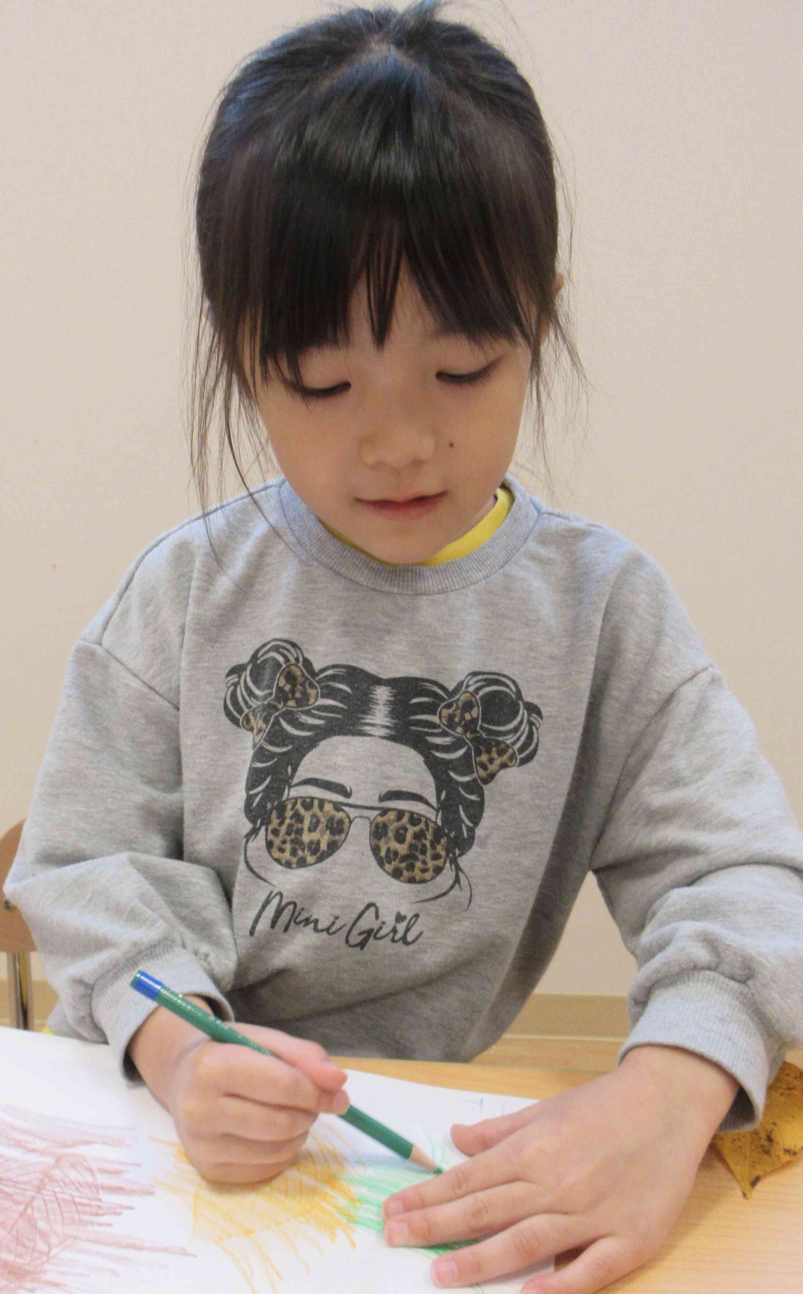 色々な色鉛筆でゴシゴシ。落ち葉の形が浮き出てくる様子を面白がっていた子どもたちです。
