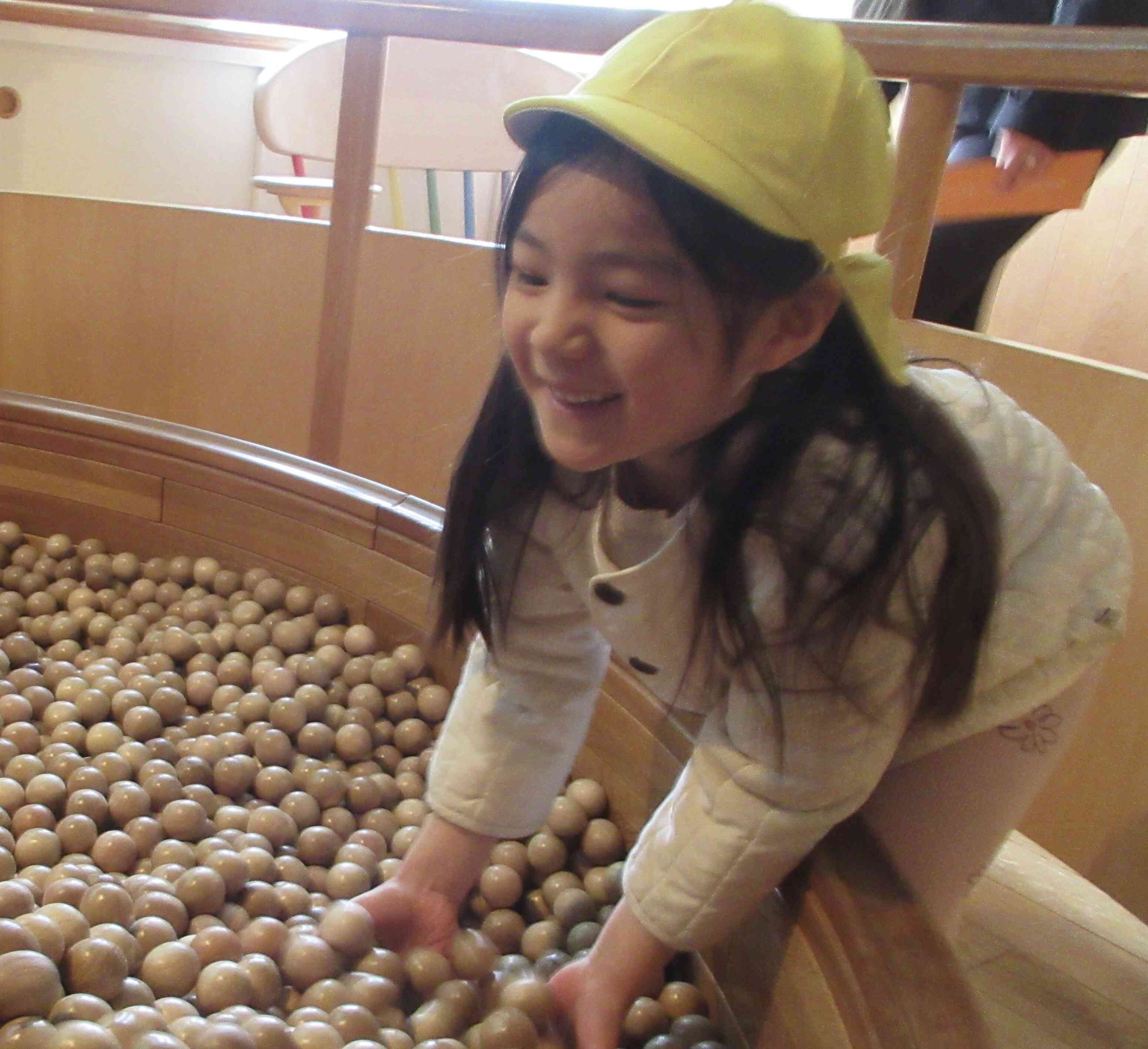 中でも木製ボールプールに興味を持ったようで、