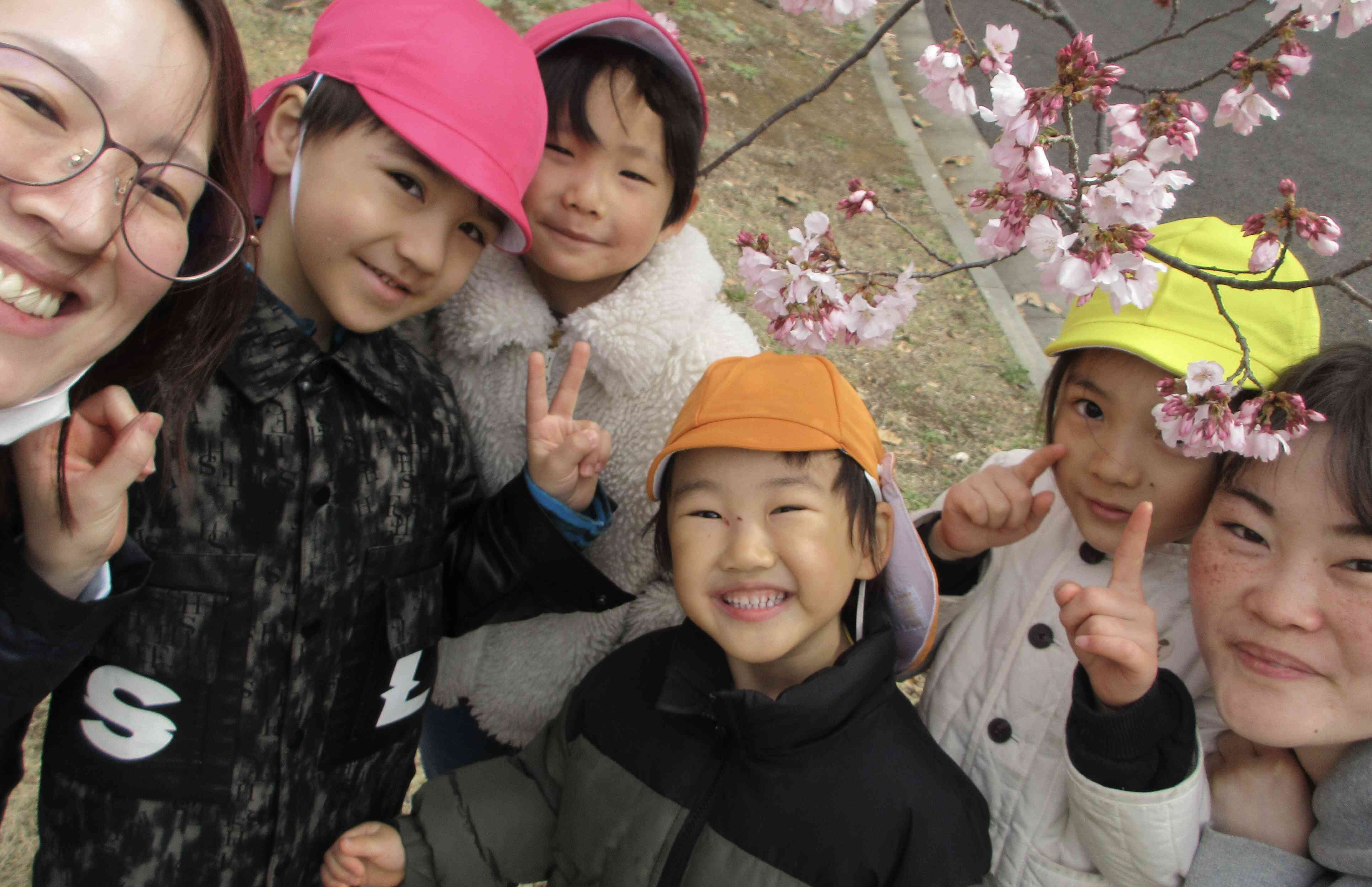 紫やピンク、白など色とりどりの花が咲いている中でこどもたちがとびきり喜んでいたのが桜。