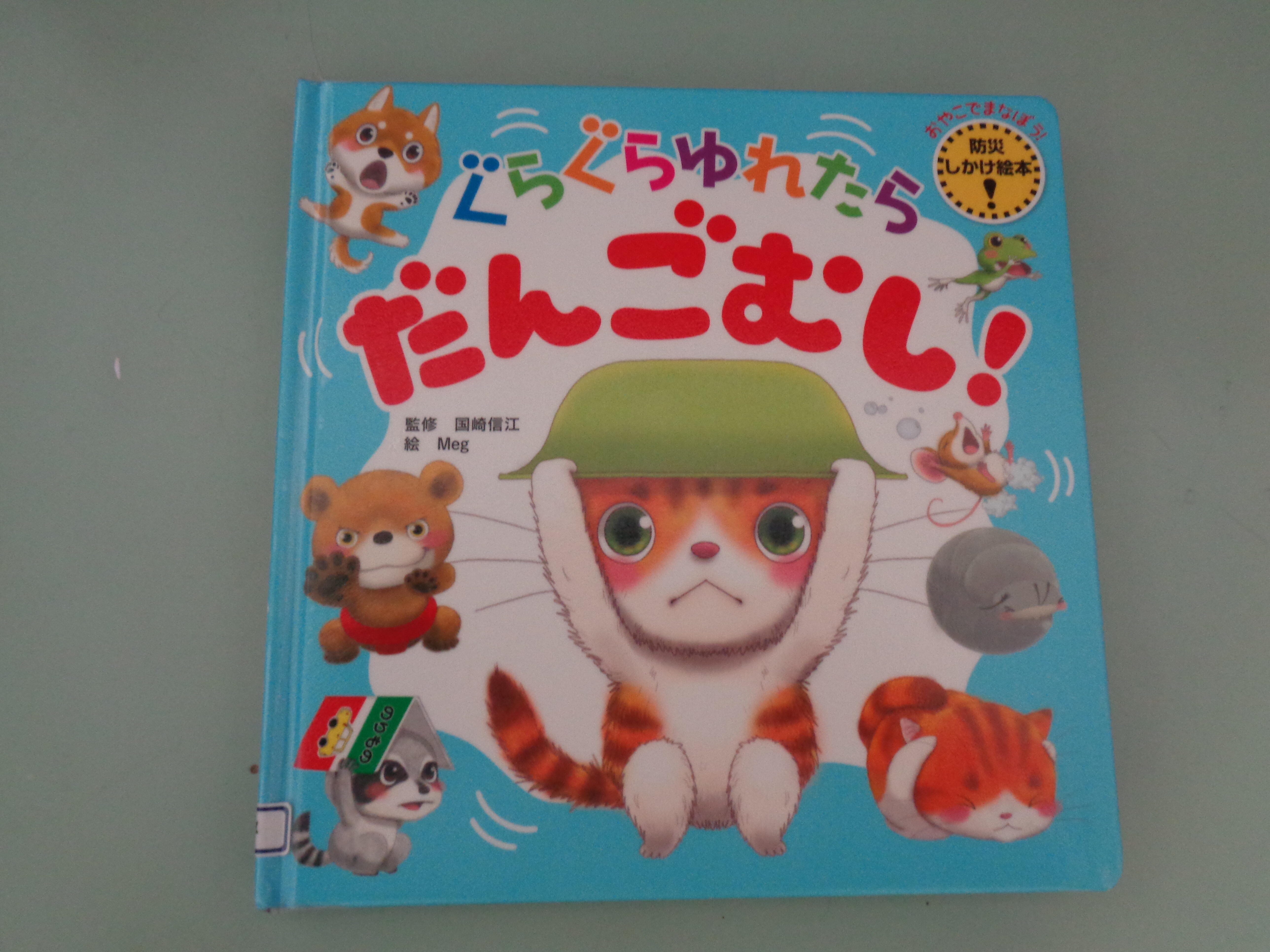 お話の後、防災仕掛け絵本の『ぐらぐらゆれたら だんごむし!』