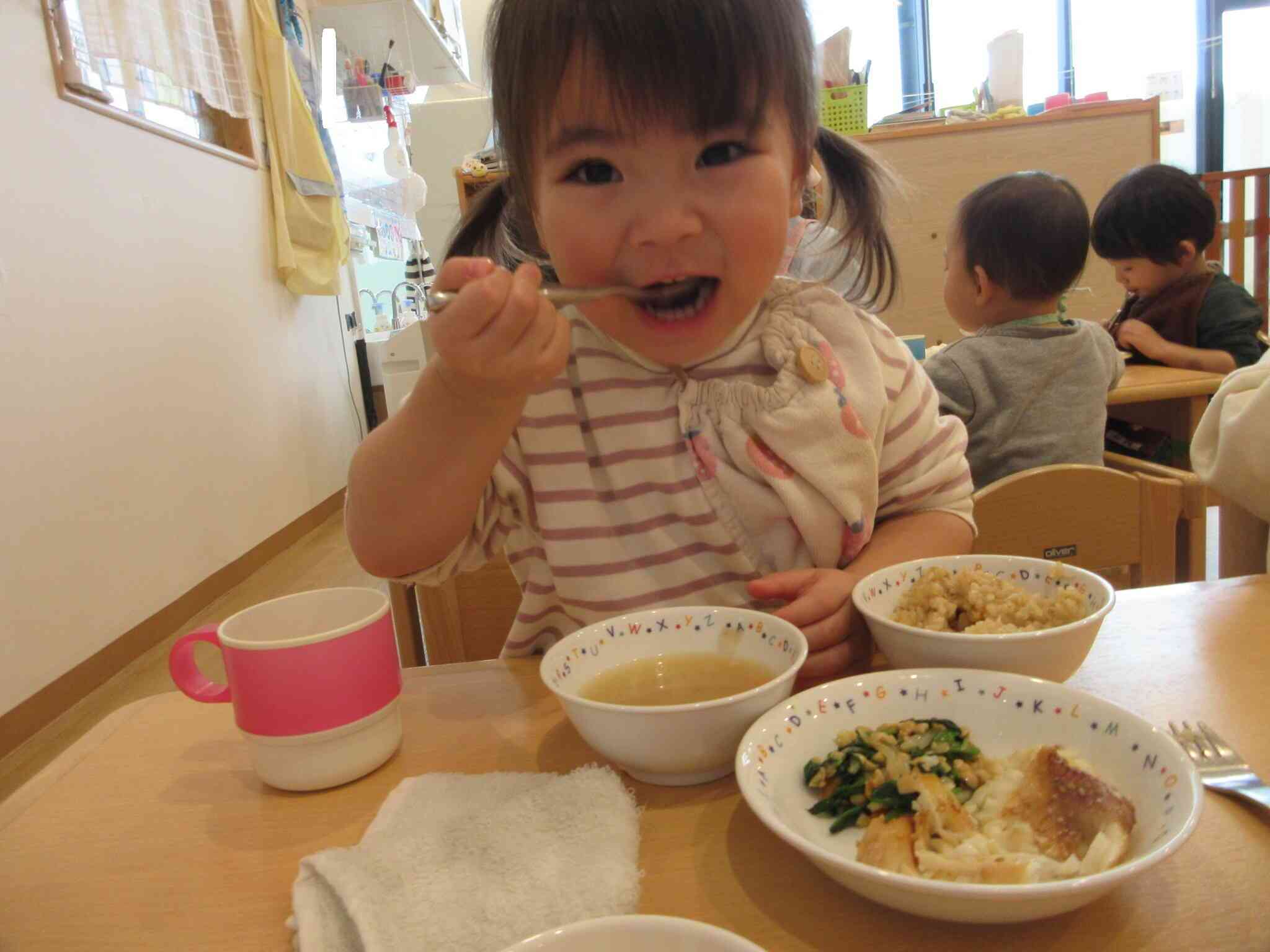 きのこの炊き込みごはんは きのこの旨味が出て、食欲をそそる いい香りがしていてみんな完食していました!