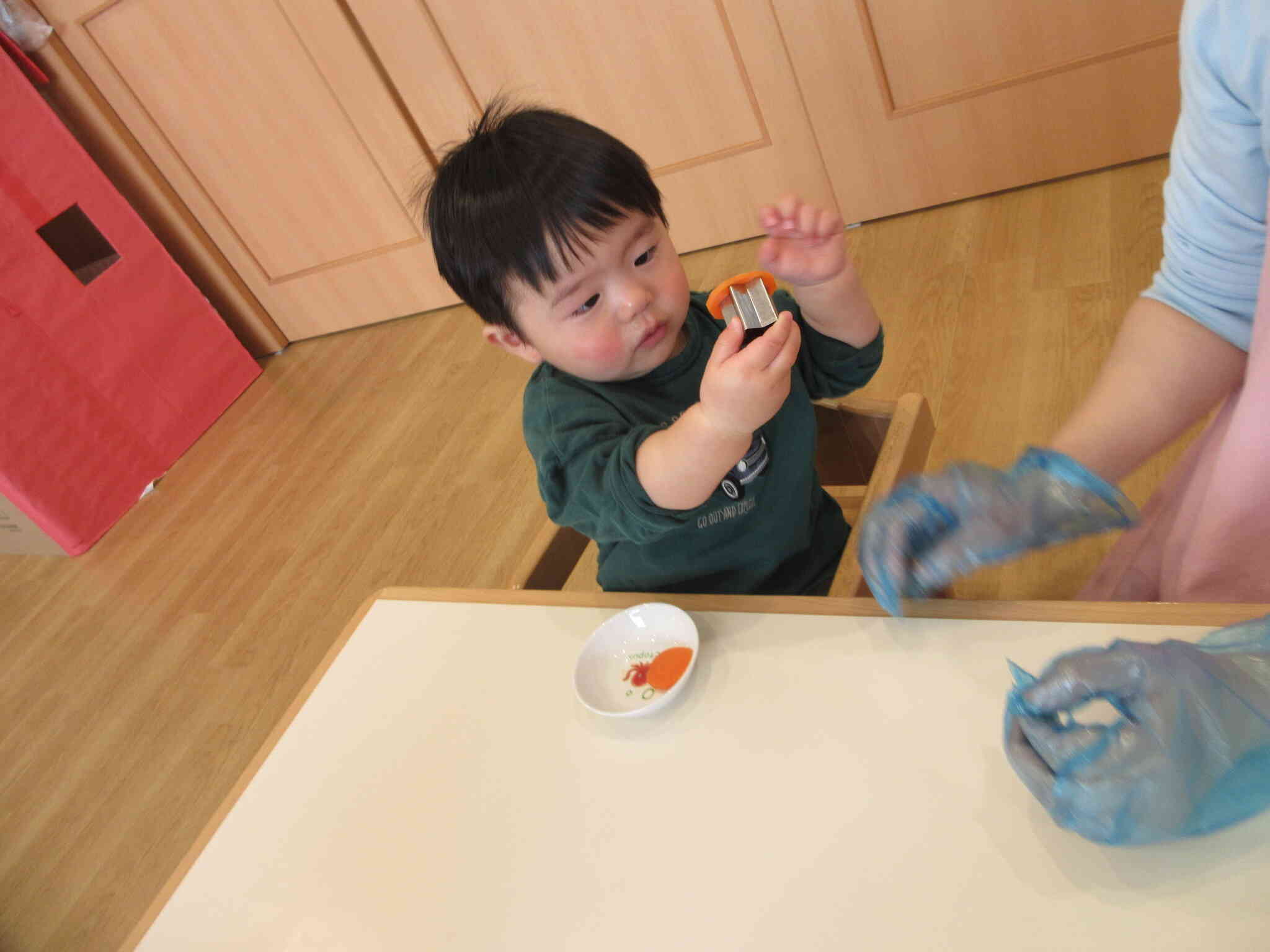 重たい野菜を持って自分の足でしっかり歩いて帰りました!