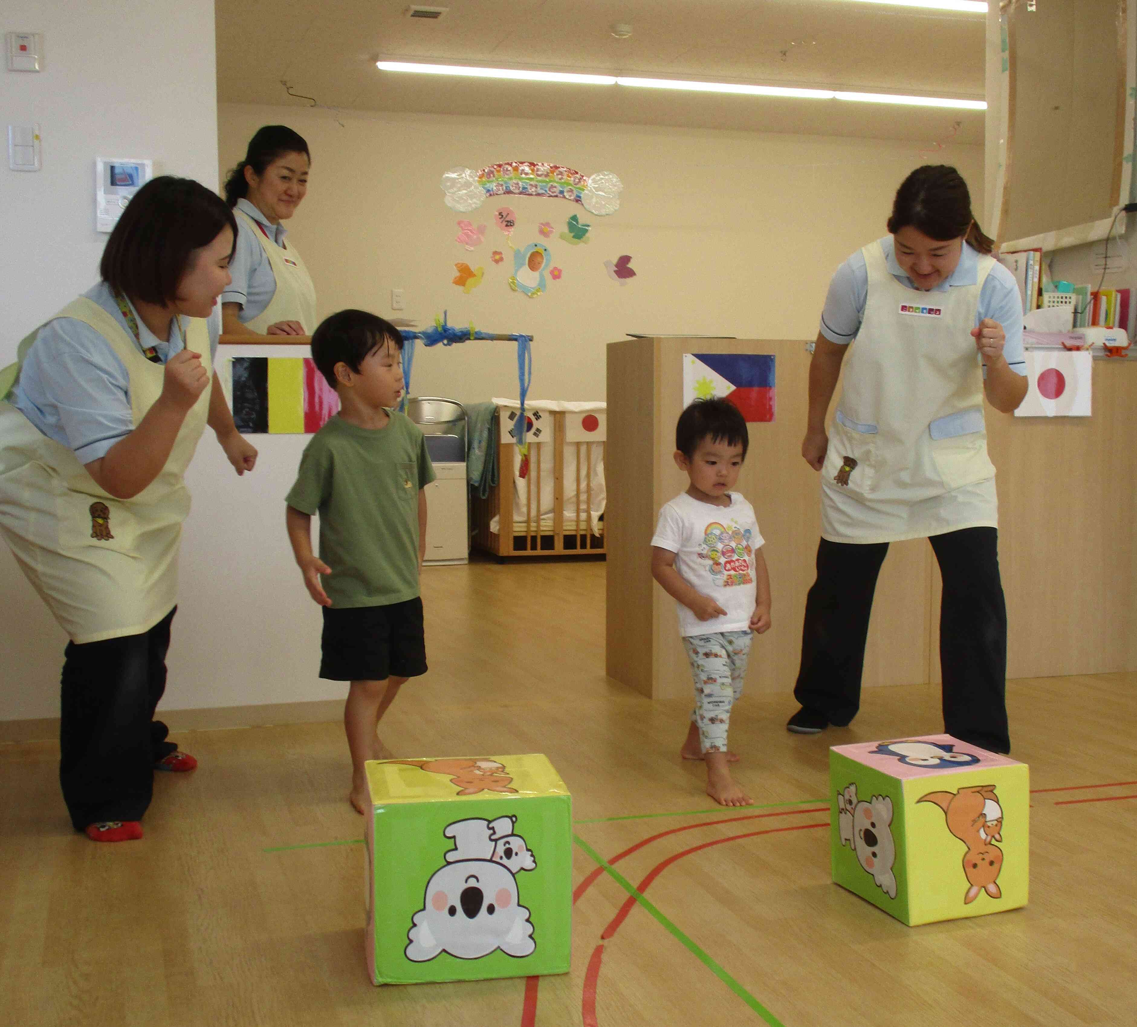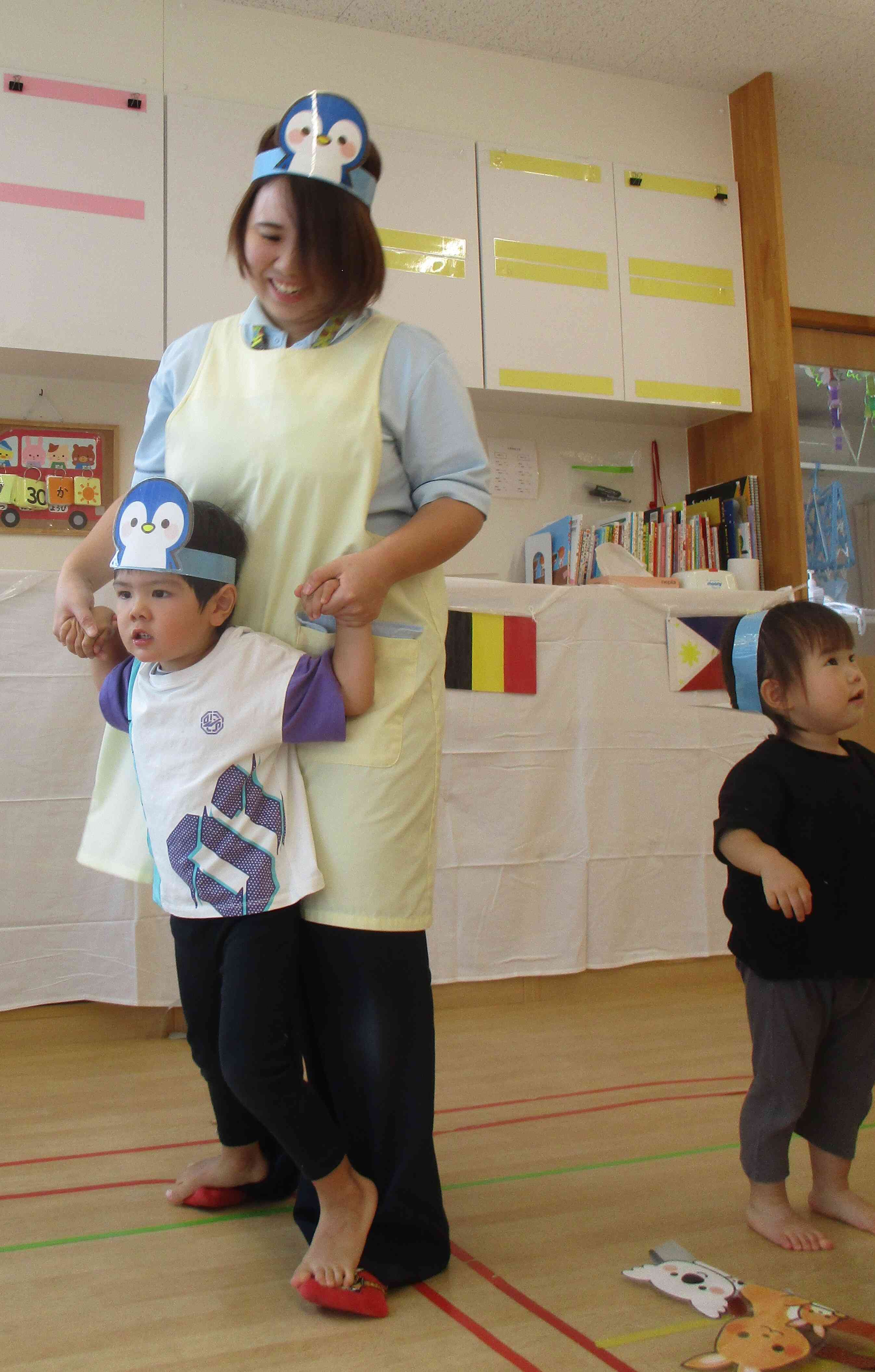 障害物レースではさいころを振って出た目の動物になりきりました。ペンギンやカンガルーに先生となりきって進む姿が可愛らしかったです。練習の成果を発揮して頑張っていましたよ。