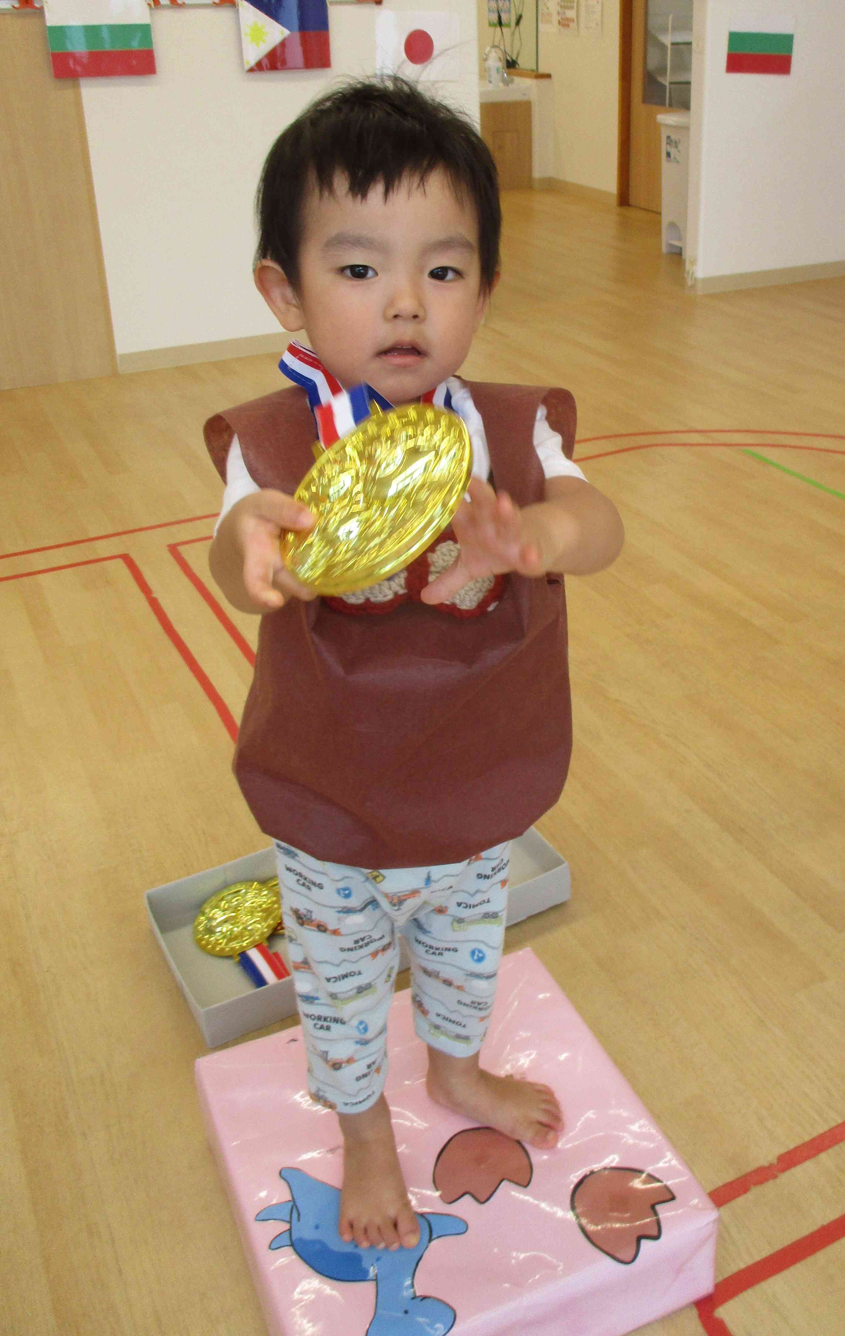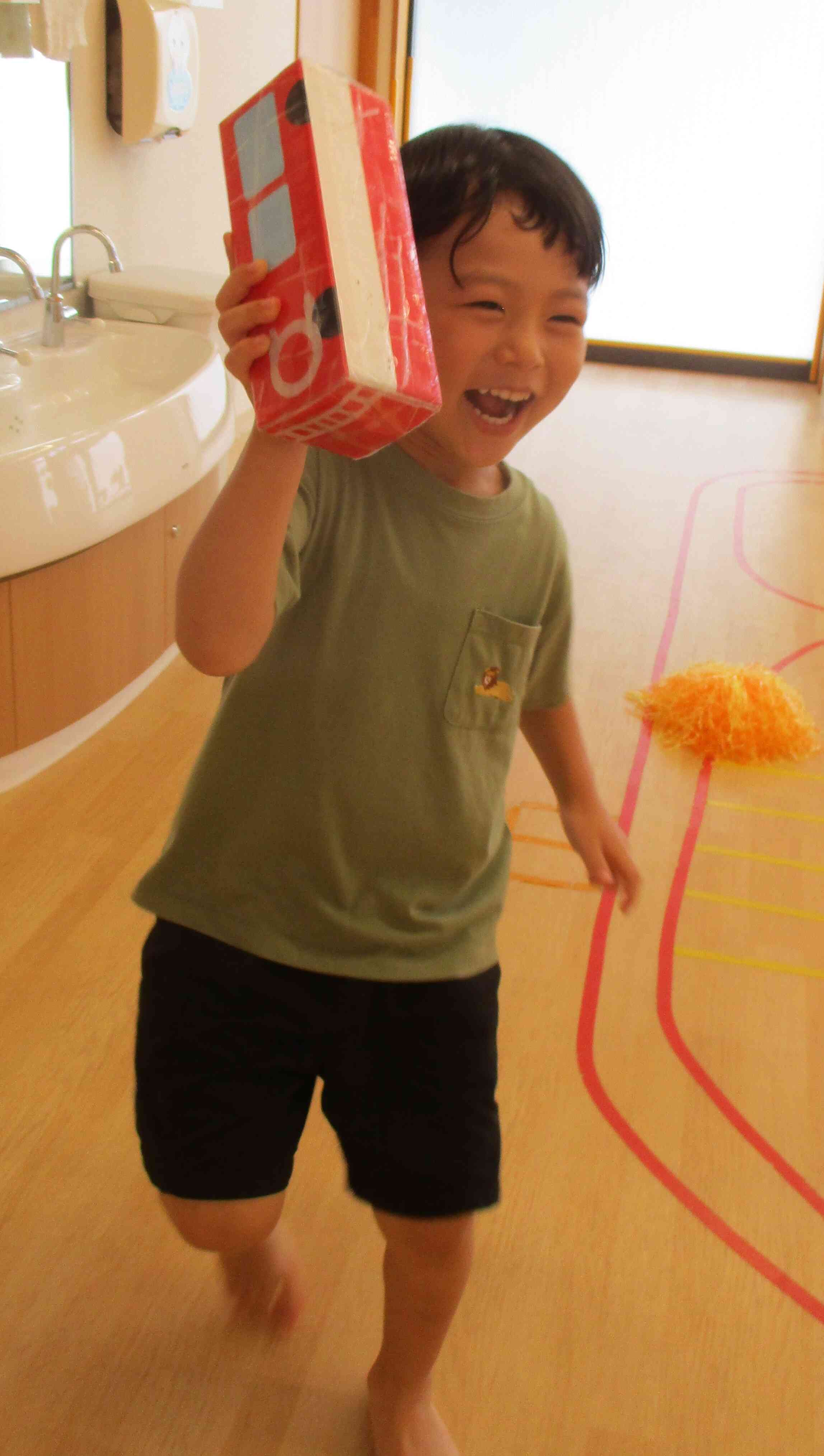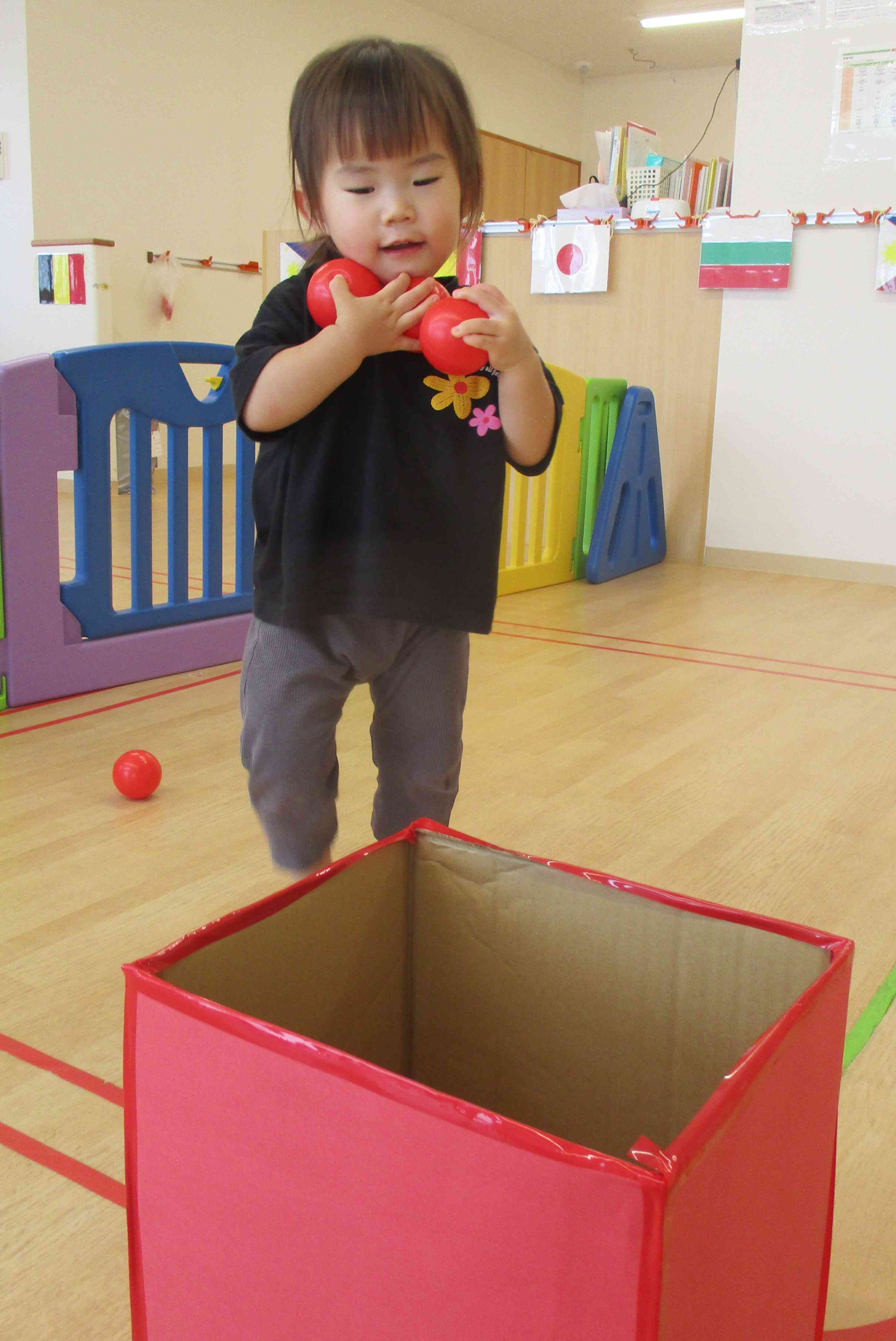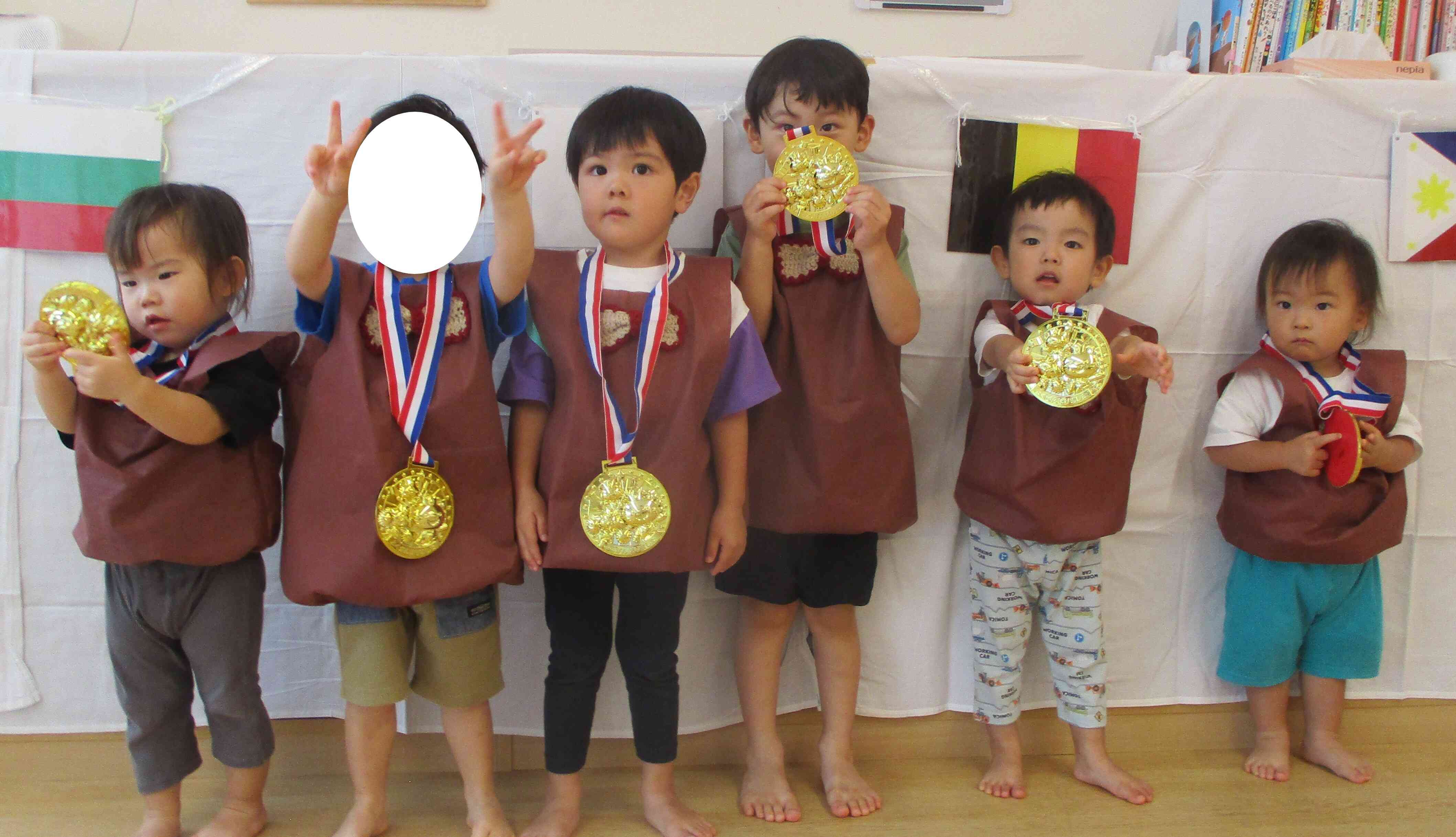 今年の運動会ごっこではかけっこや玉入れでお友達と競い合いました。「Yくんはやいよ~」「まけないぞ!」と意気込み十分でした。練習では悔しくて涙を流してしまう子もいましたが、本番では笑顔で楽しんでいる姿が見られました。