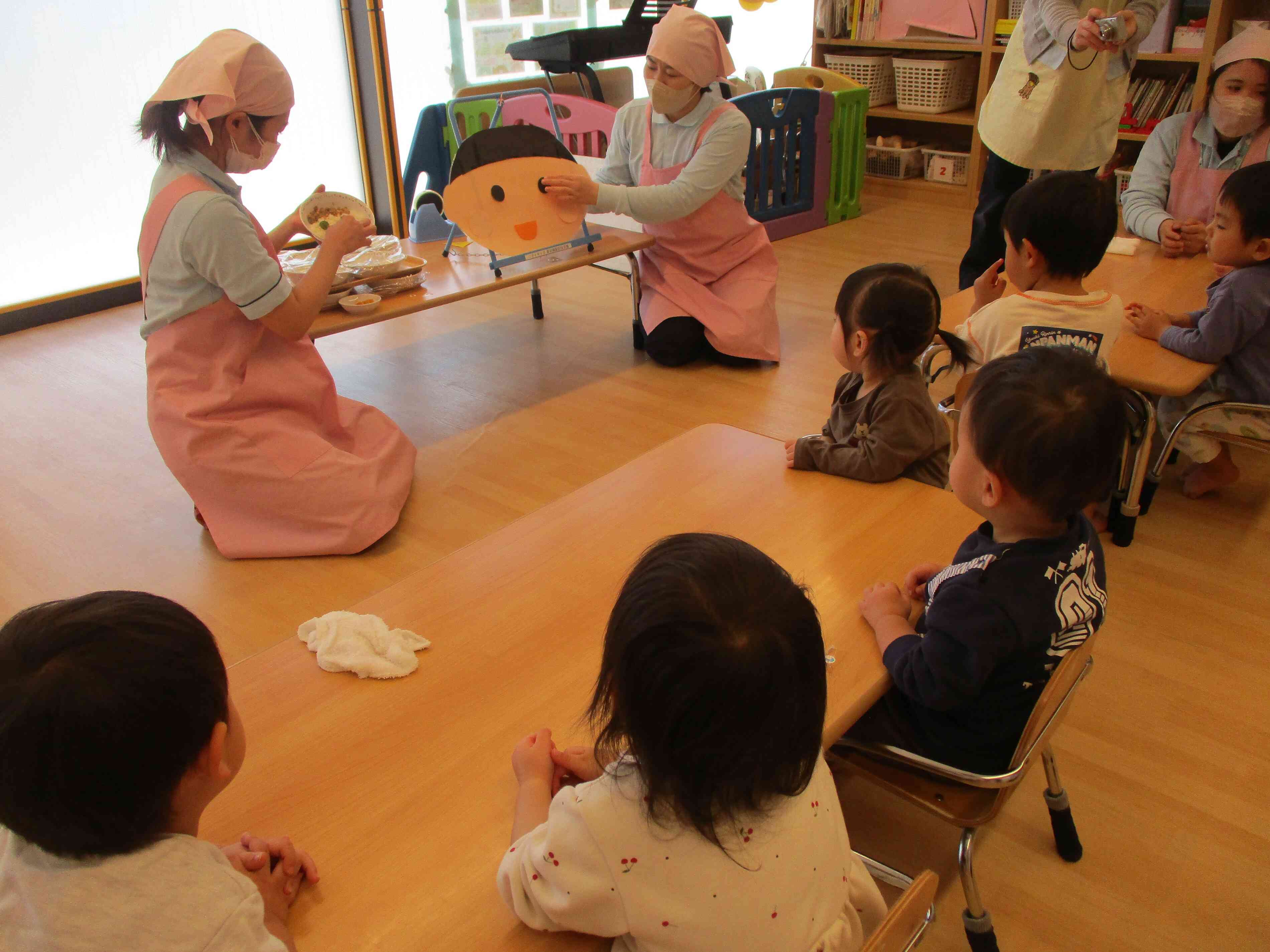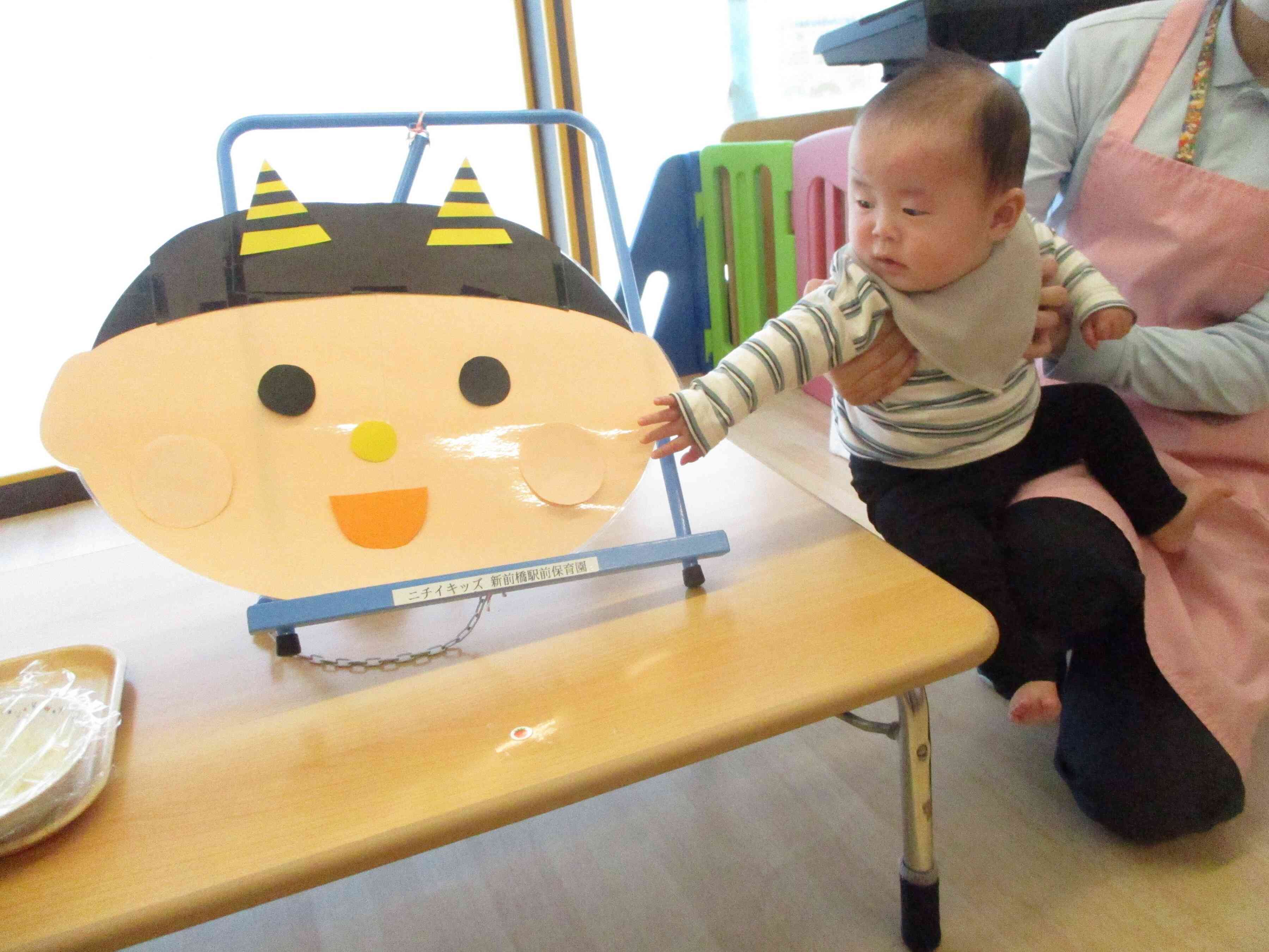 おやつに“鬼の顔ごはん”を作りましたよ。