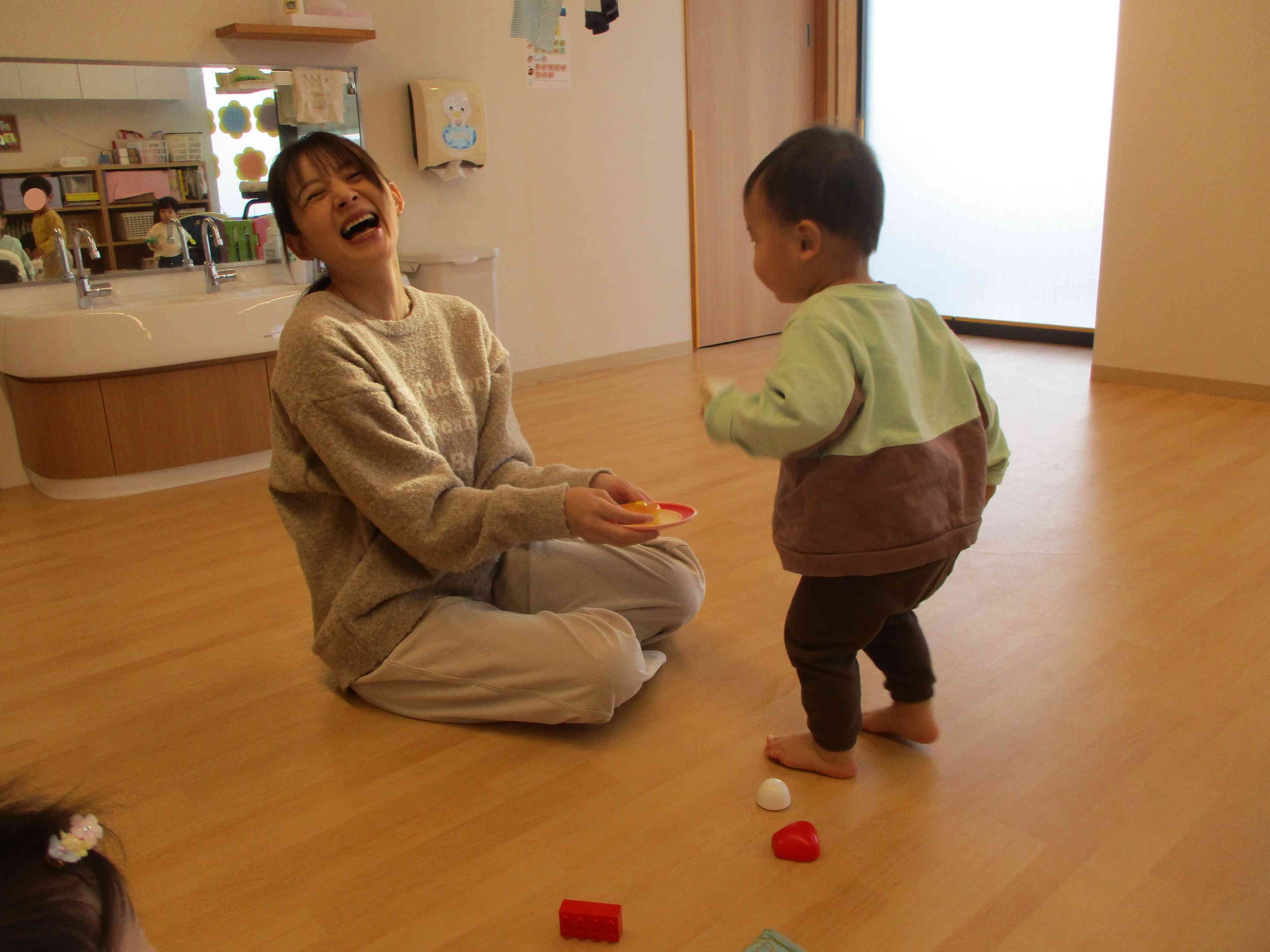離乳食の様子を見ていただけて、おうちでのお食事の様子も伺える良い機会となりました。