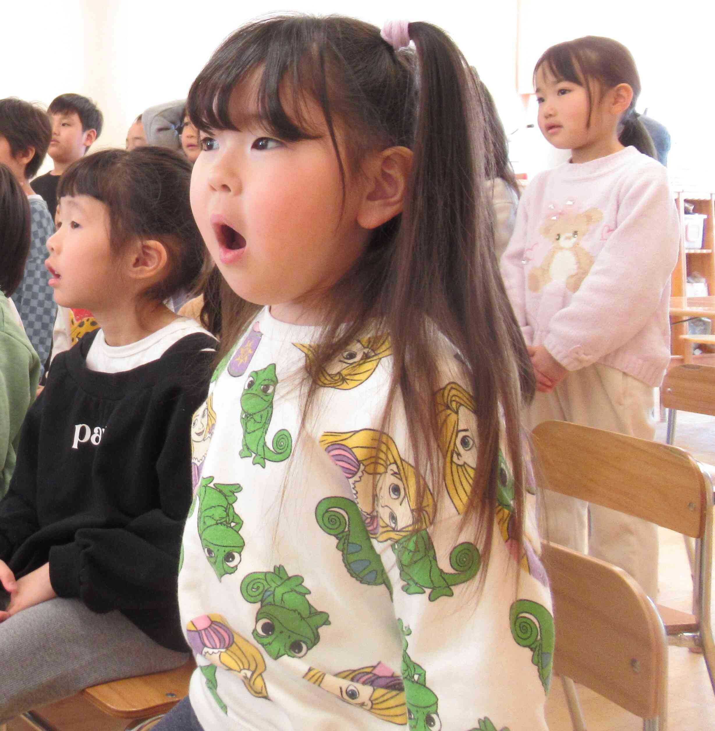 照れながらもインタビューに答えてくれる5歳のきりん組さんのお友達。