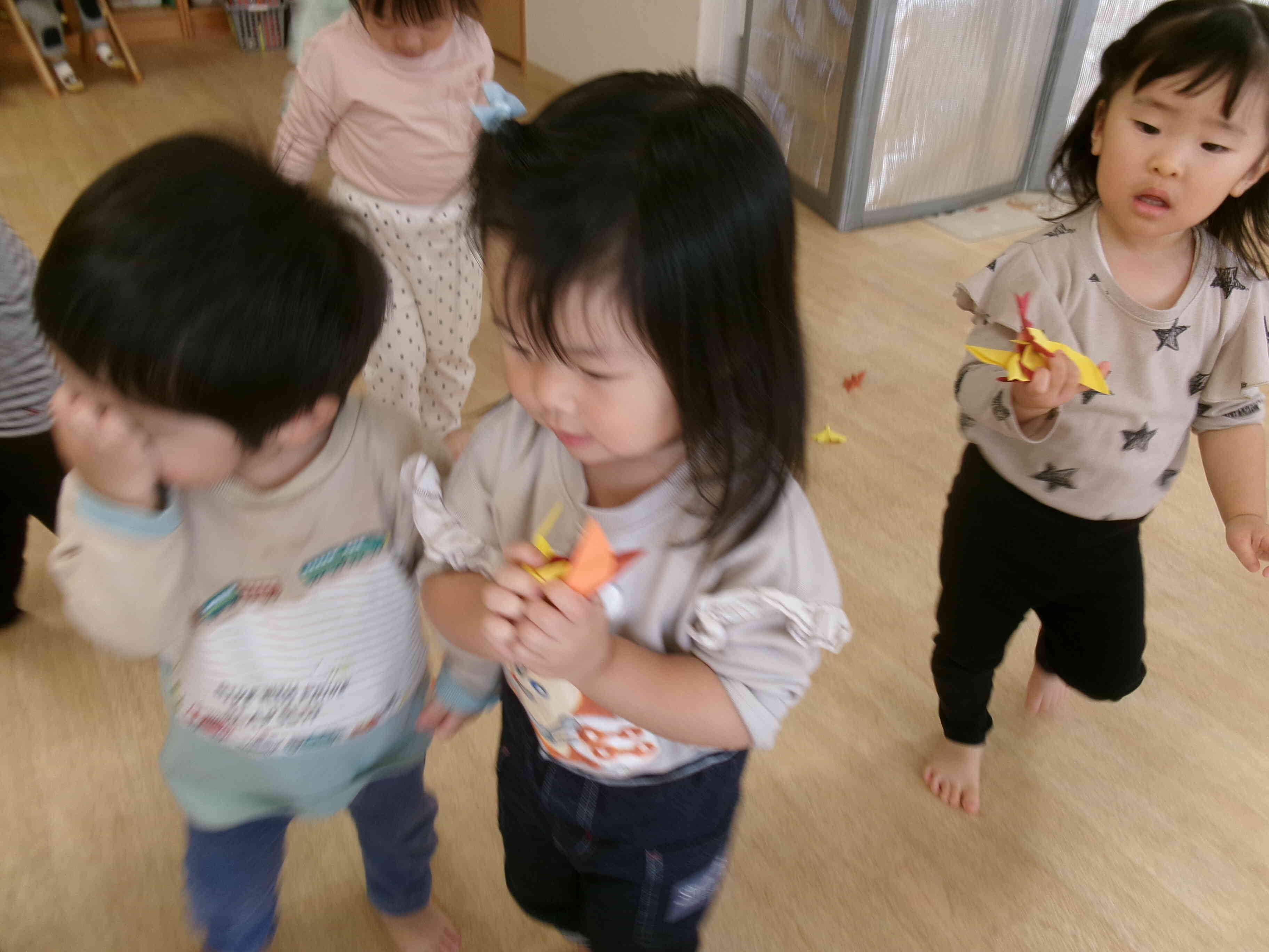 お友だちから「たんたん誕生日」の歌をプレゼントしてもらった後、保育者からプレゼント(誕生カード)を貰いました♪