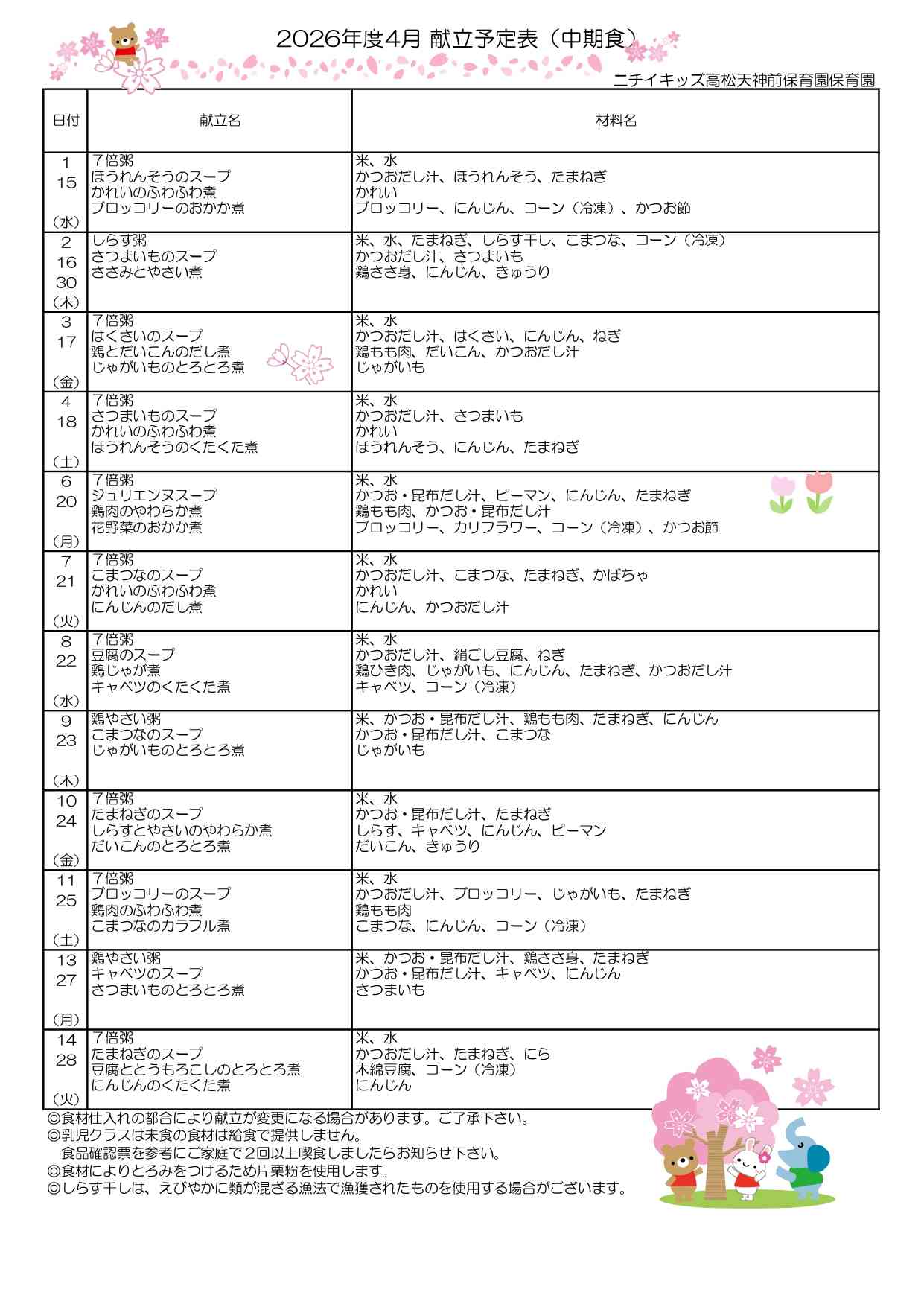 献立表4月号(中期食)