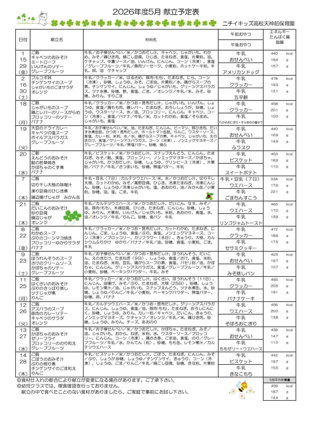 献立表5月号(幼児食)