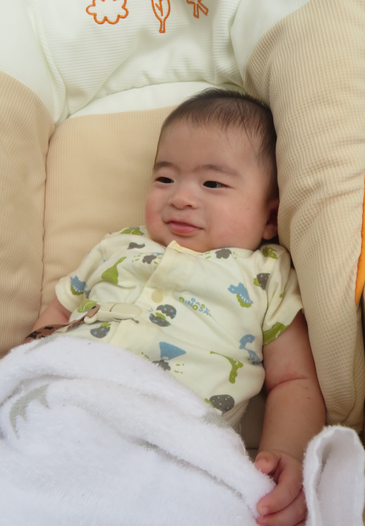 0歳児のお友だちもお兄さんお姉さんの楽しそうな様子を眺めながら、小さなボールを渡すと片手でボールを握りしめて「うーうー」と喜んでいましたよ♪