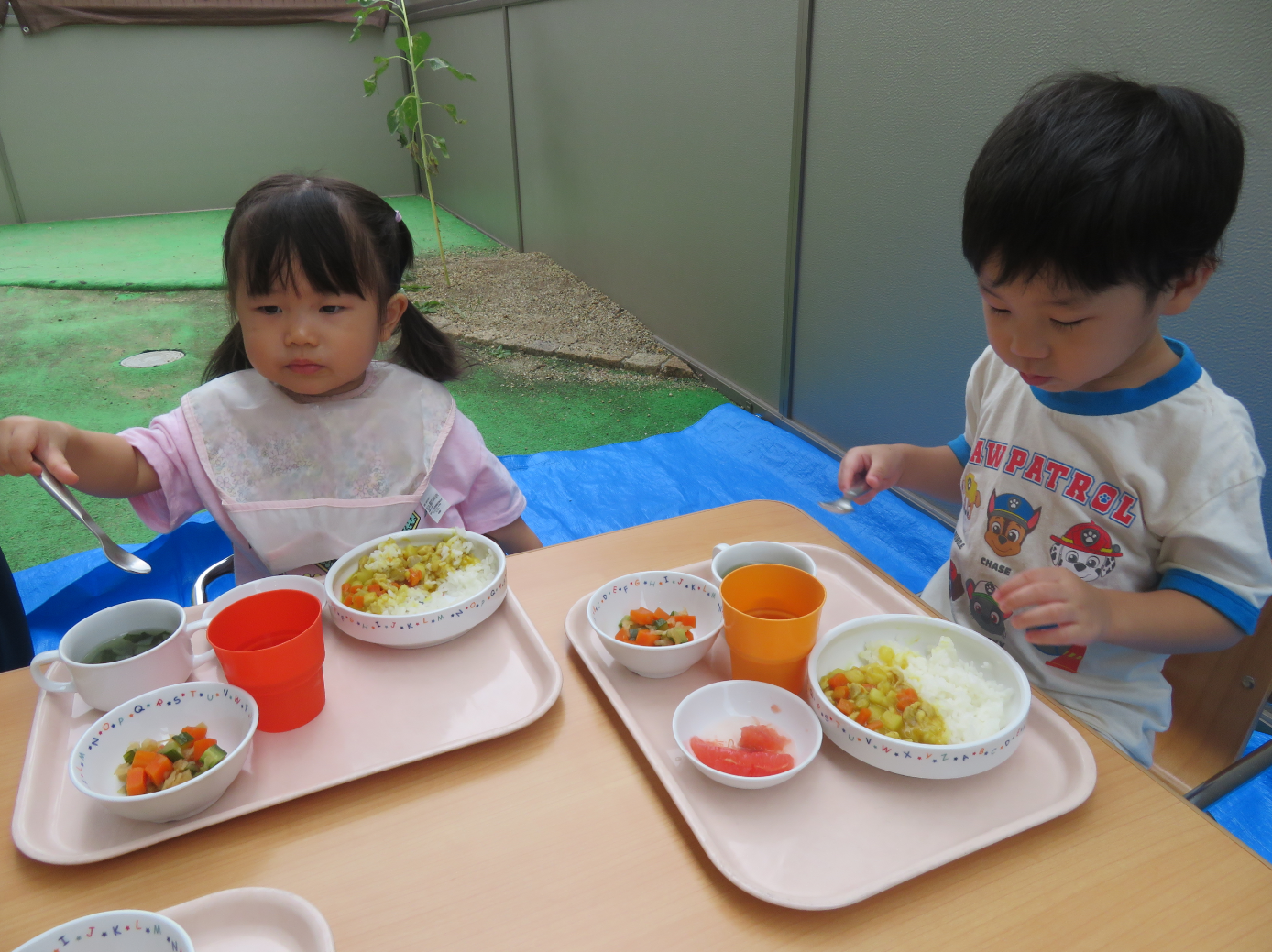 ピクニック気分で楽しそうにパクパクと食べてくれました。