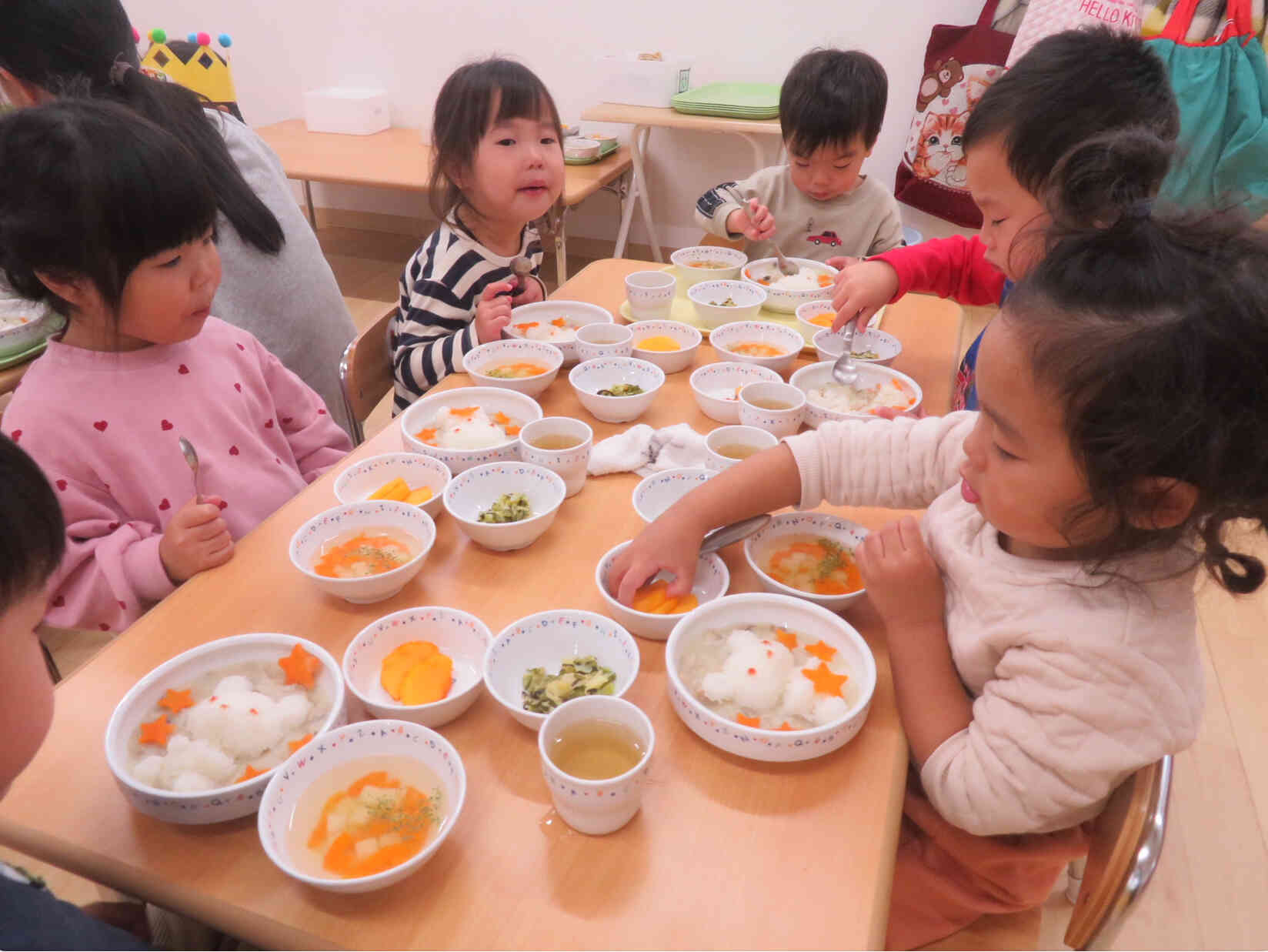 給食は、クマさんの形に盛り付けたシチューライスでした⭐︎