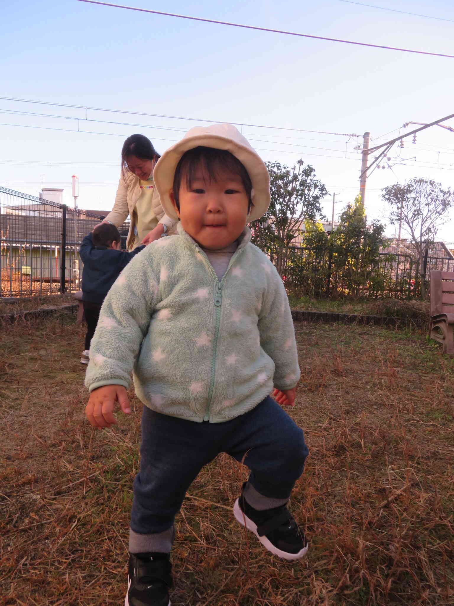 途中で電車が通ると嬉しそうに手を振っていました。