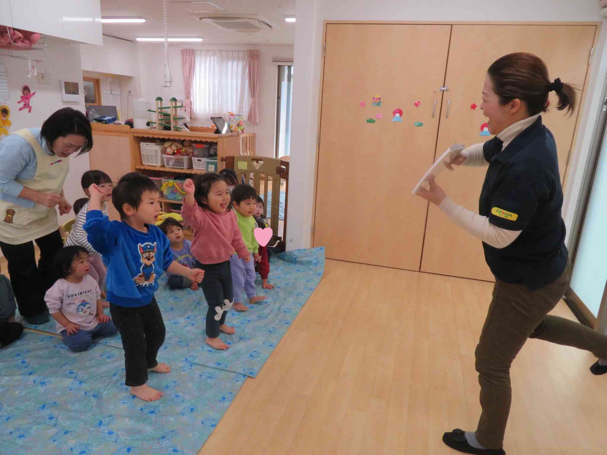 毎月『セイハ英語教室』の先生にお越しいただき、体を動かしながら楽しく英語に親しむ機会を設けています。