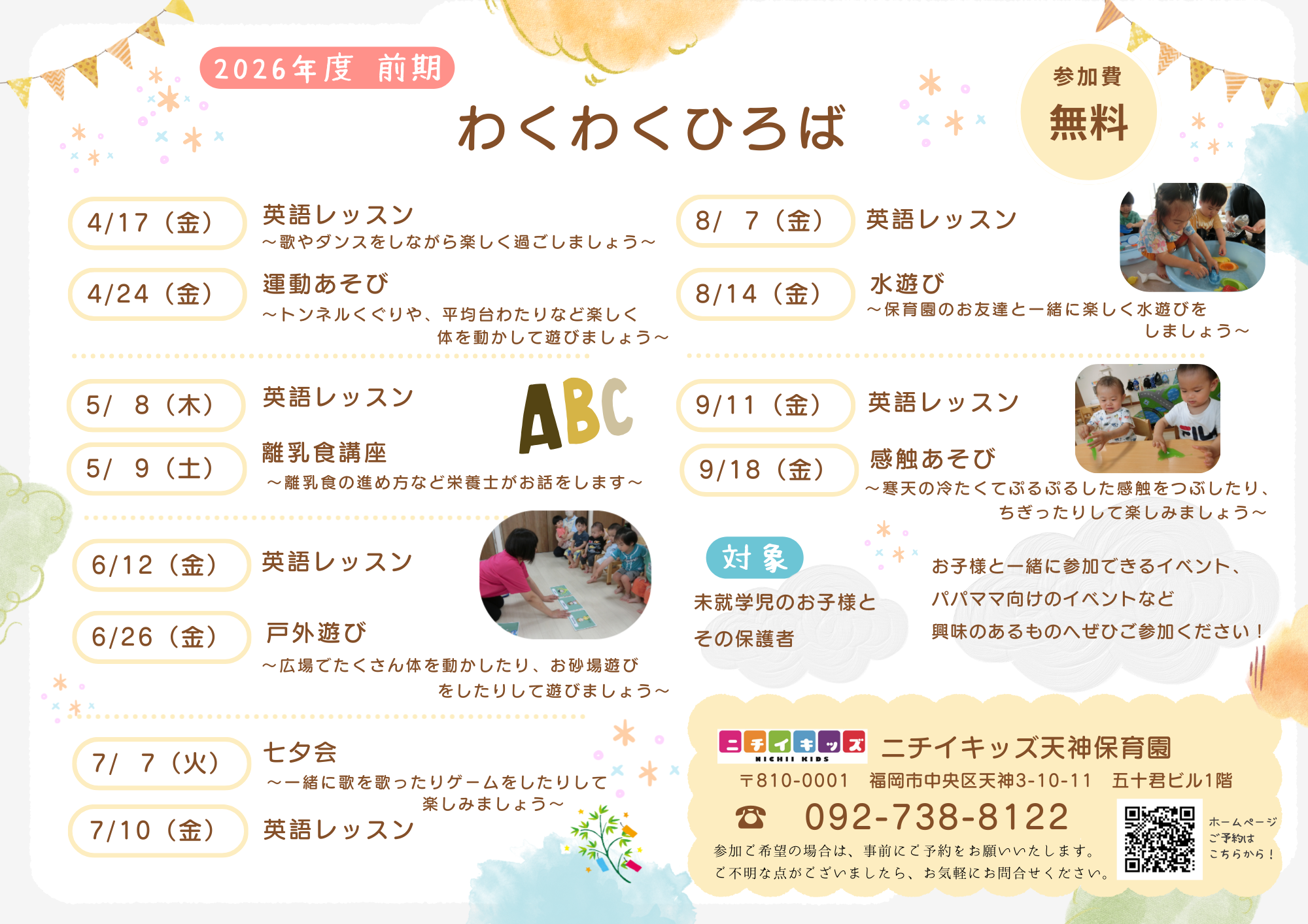 5月は、英語レッスンと離乳食講座を開催いたします。ぜひ、ご参加ください♪