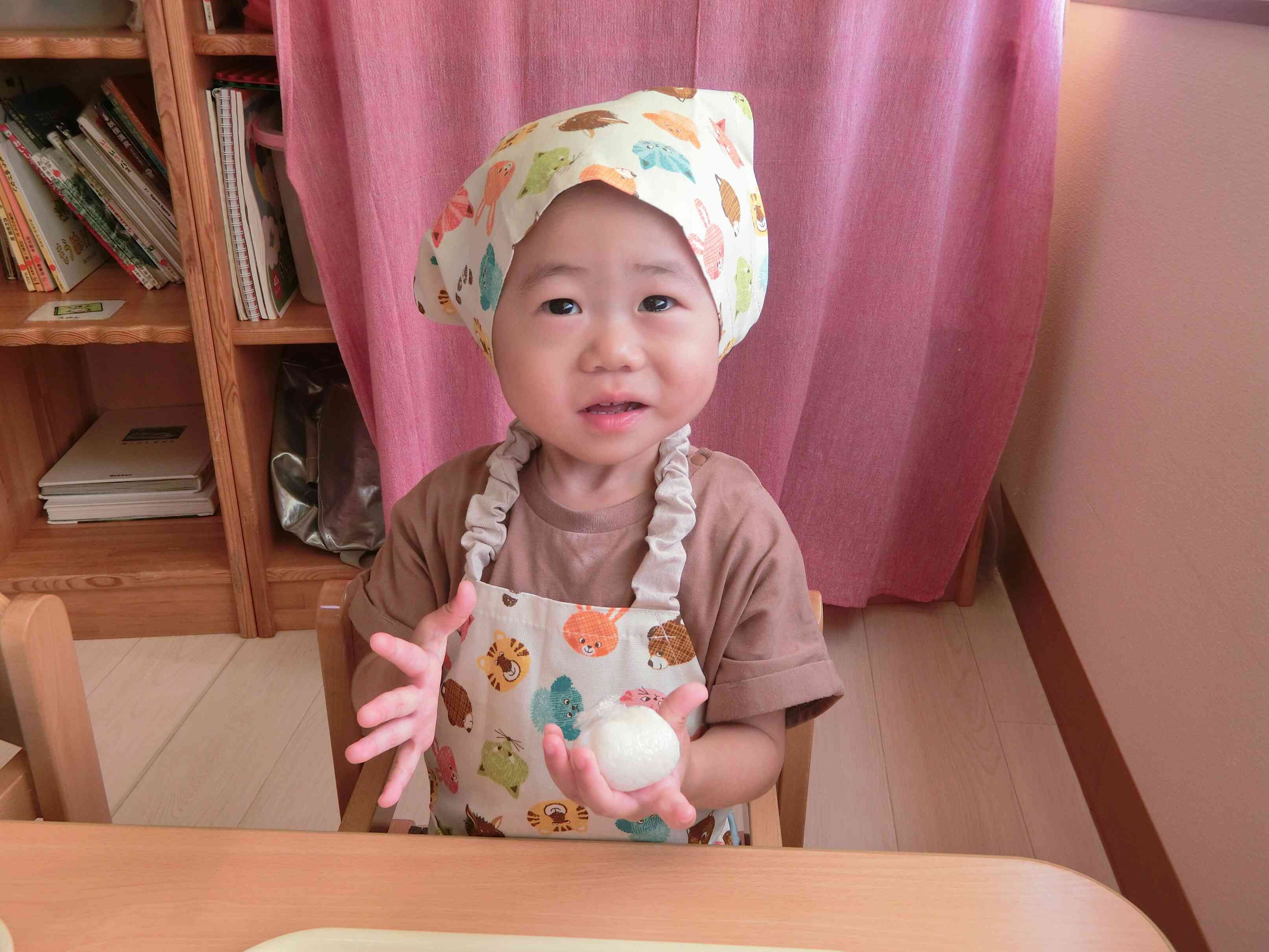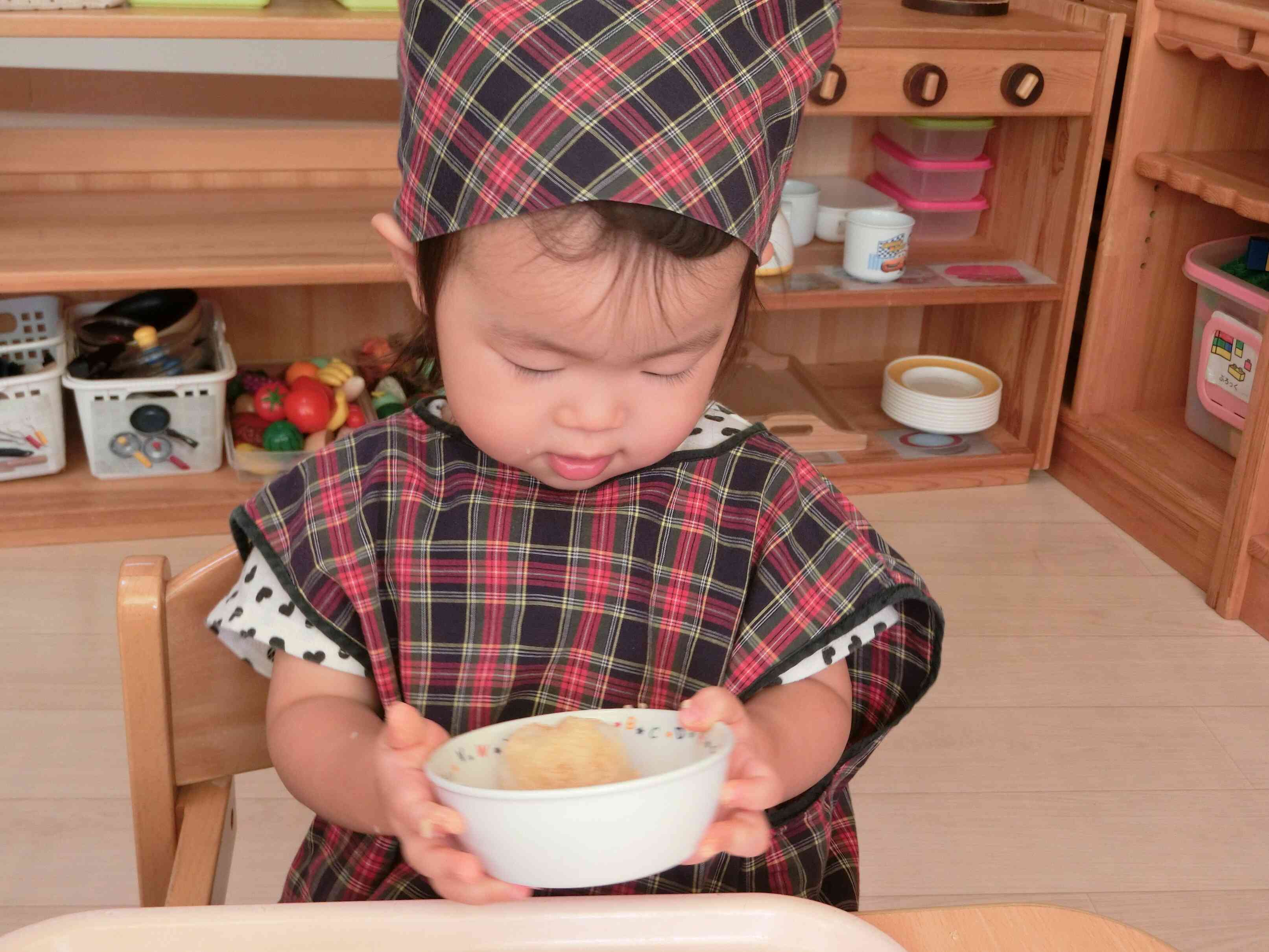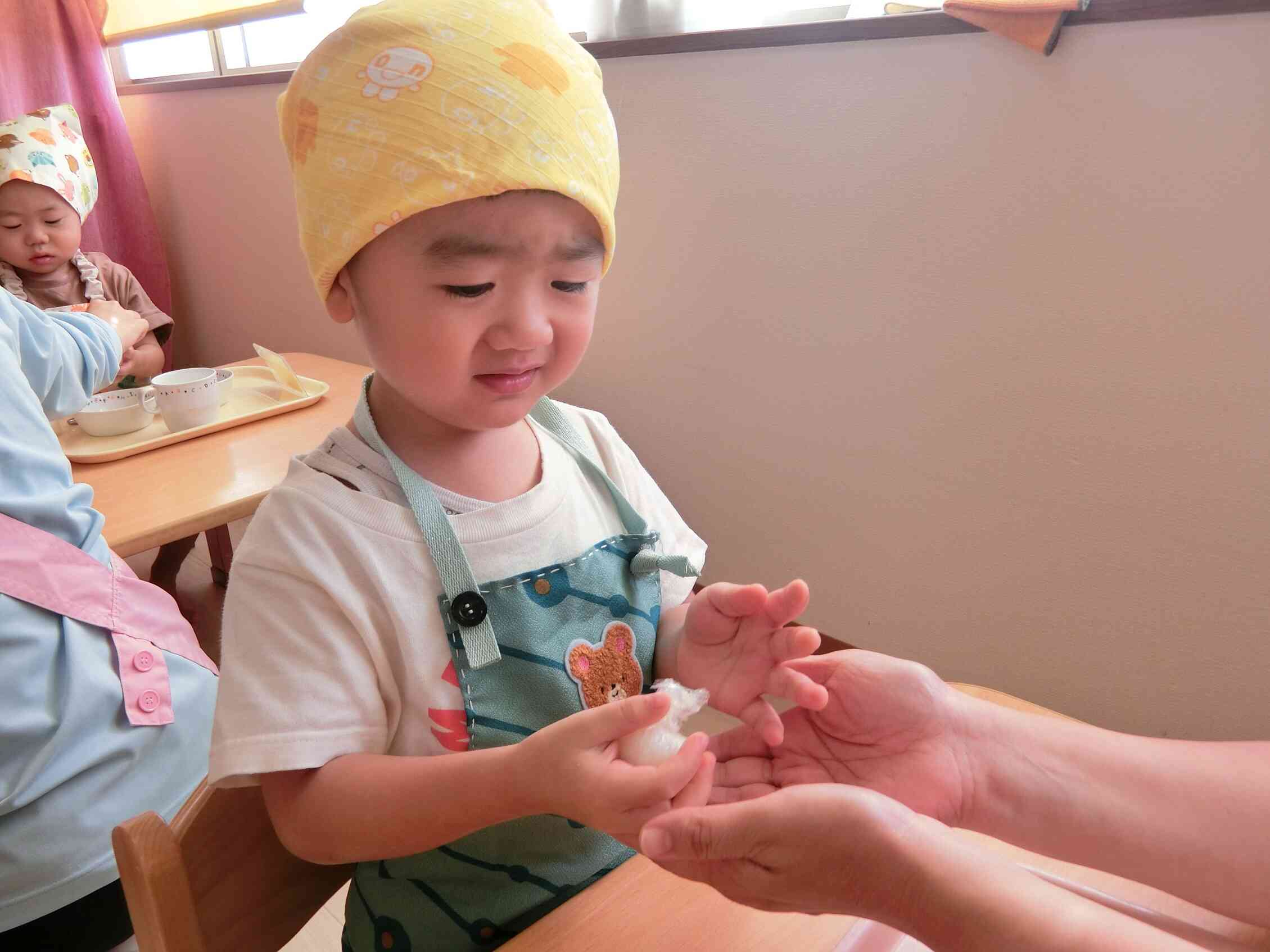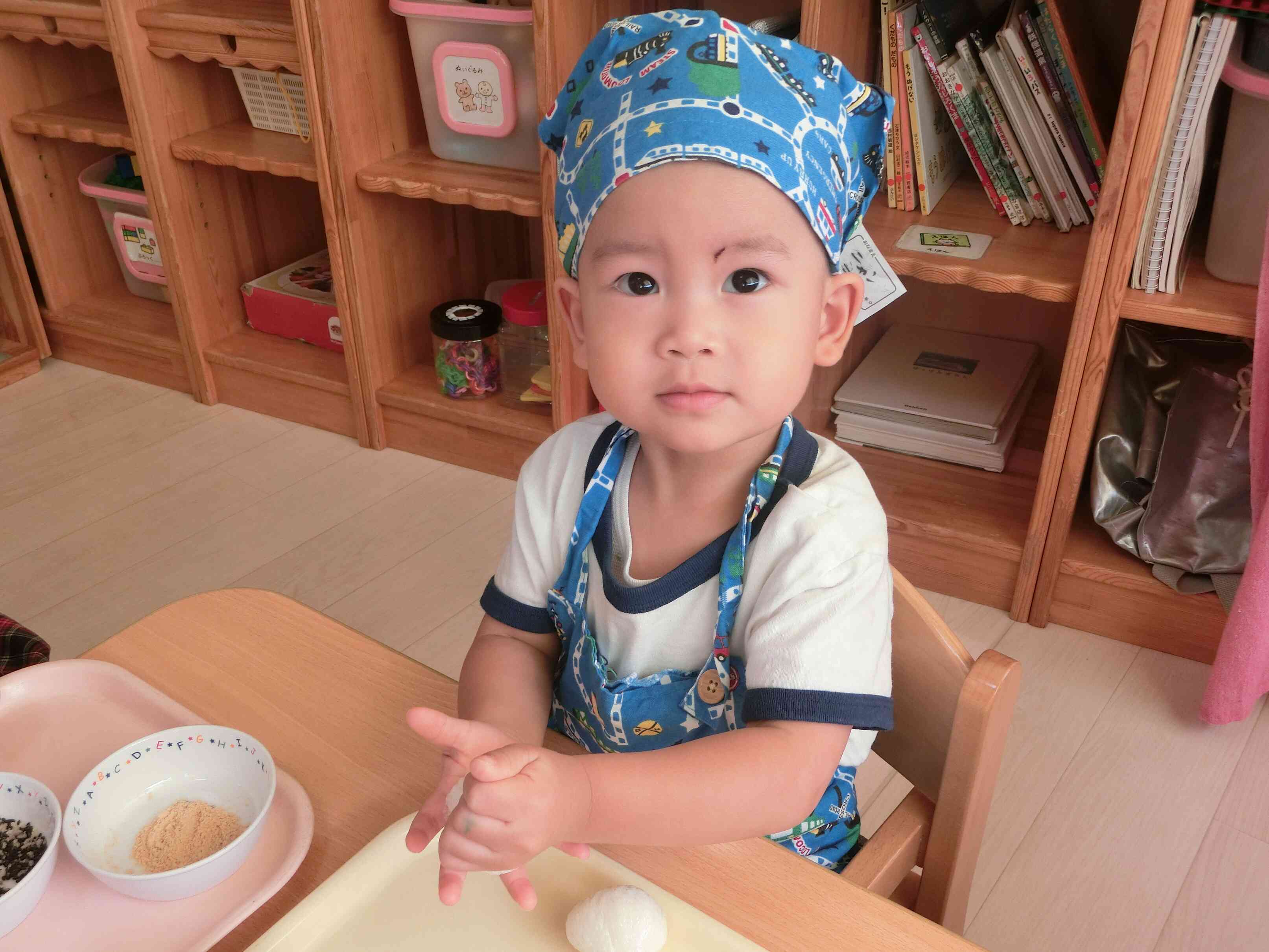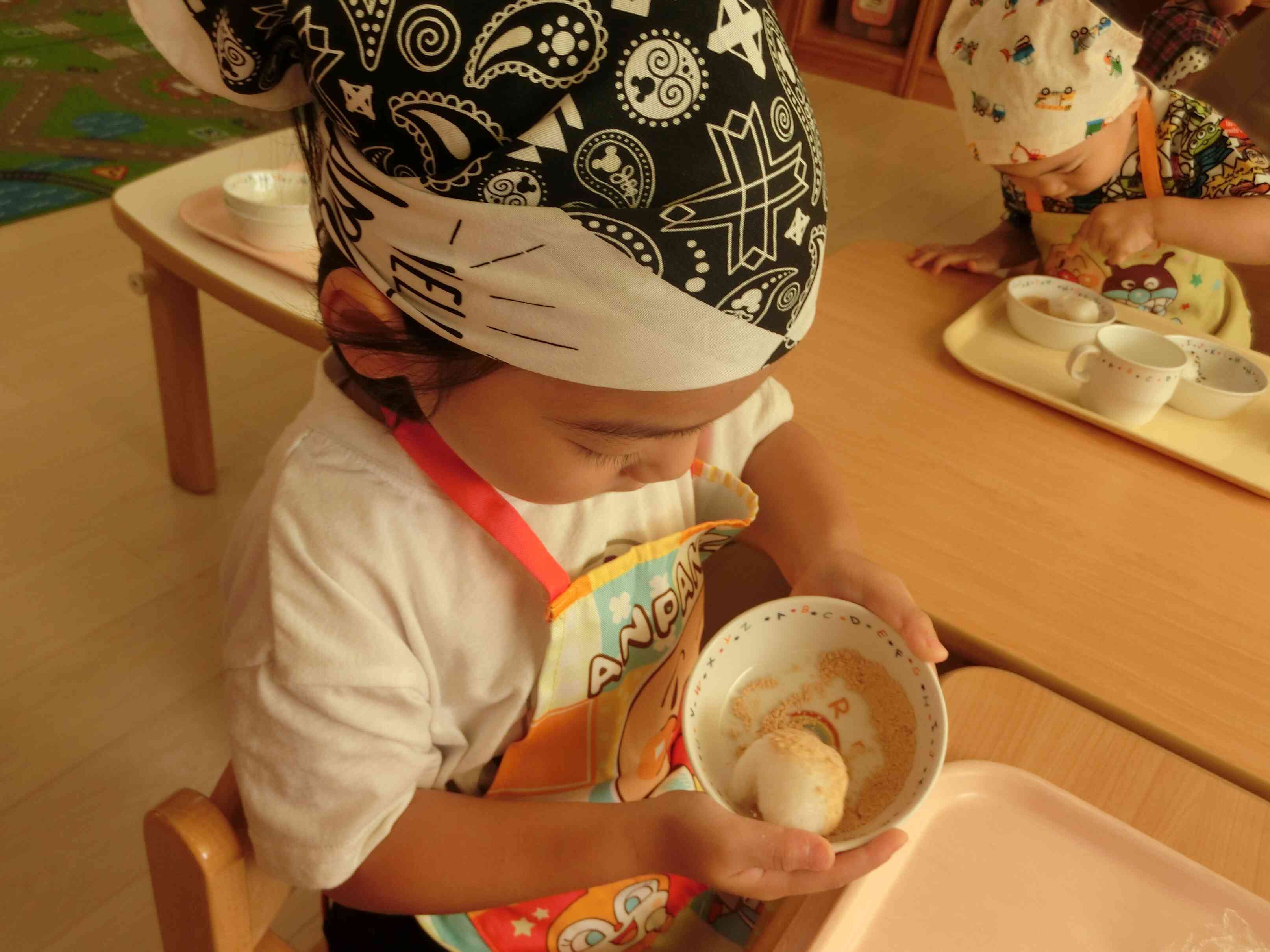 「ころころ~」と集中して取り組み、しっかりまぶすことができていましたよ。