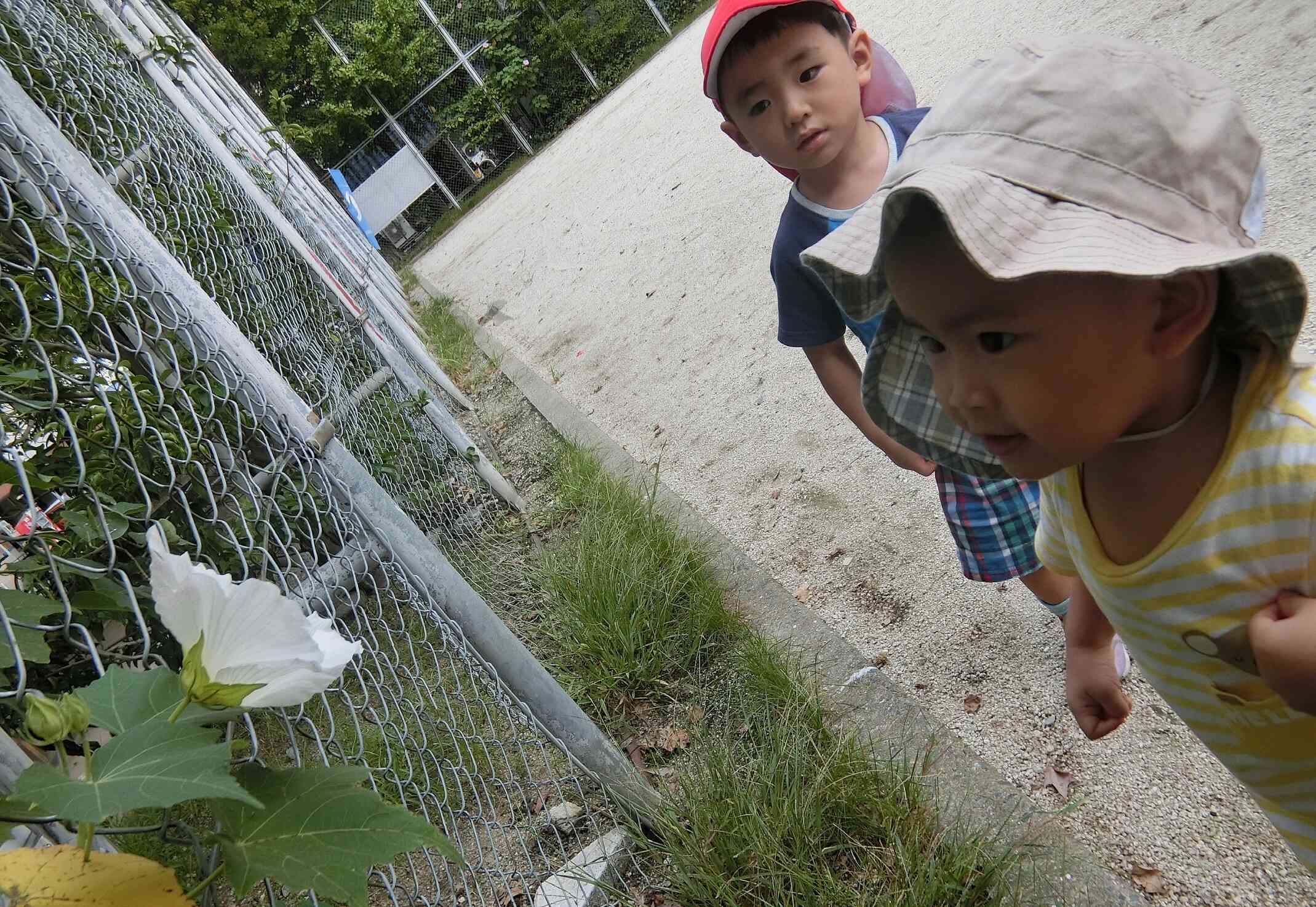 少しずつ過ごしやすい気候の日が増えてきて、保育者やお友達と一緒にお散歩を楽しんでいます。広場ではかけっこで体を動かしたり、虫や花を見つけて探索をしたりと夢中で遊んでいますよ♪