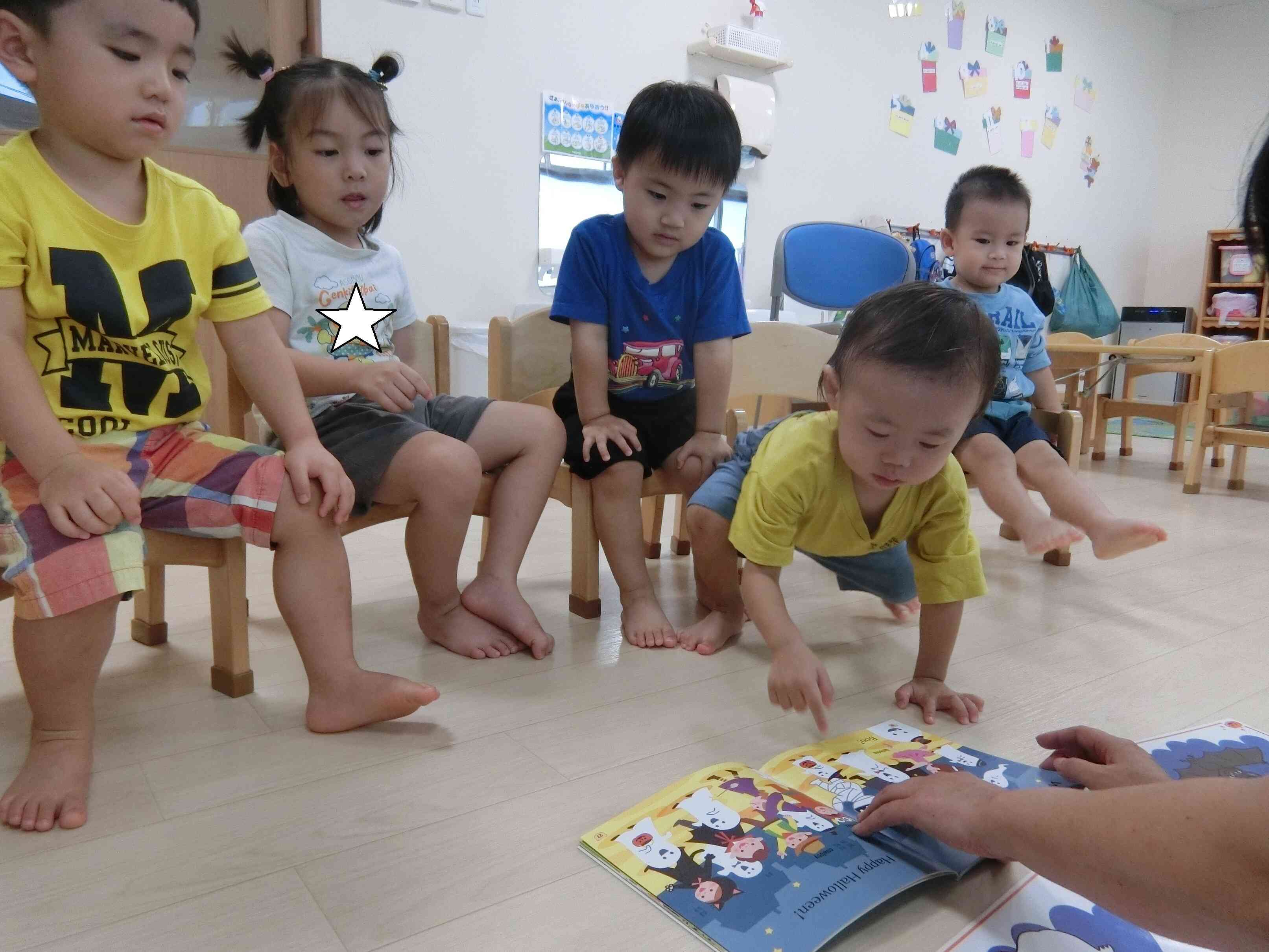 「pumpkin」「ghost」など、カードを見ながら元気いっぱいに発音したり、講師の先生に「Trick or Treat!」と言ってカードをもらうやりとりを楽しむ姿も見られましたよ。
