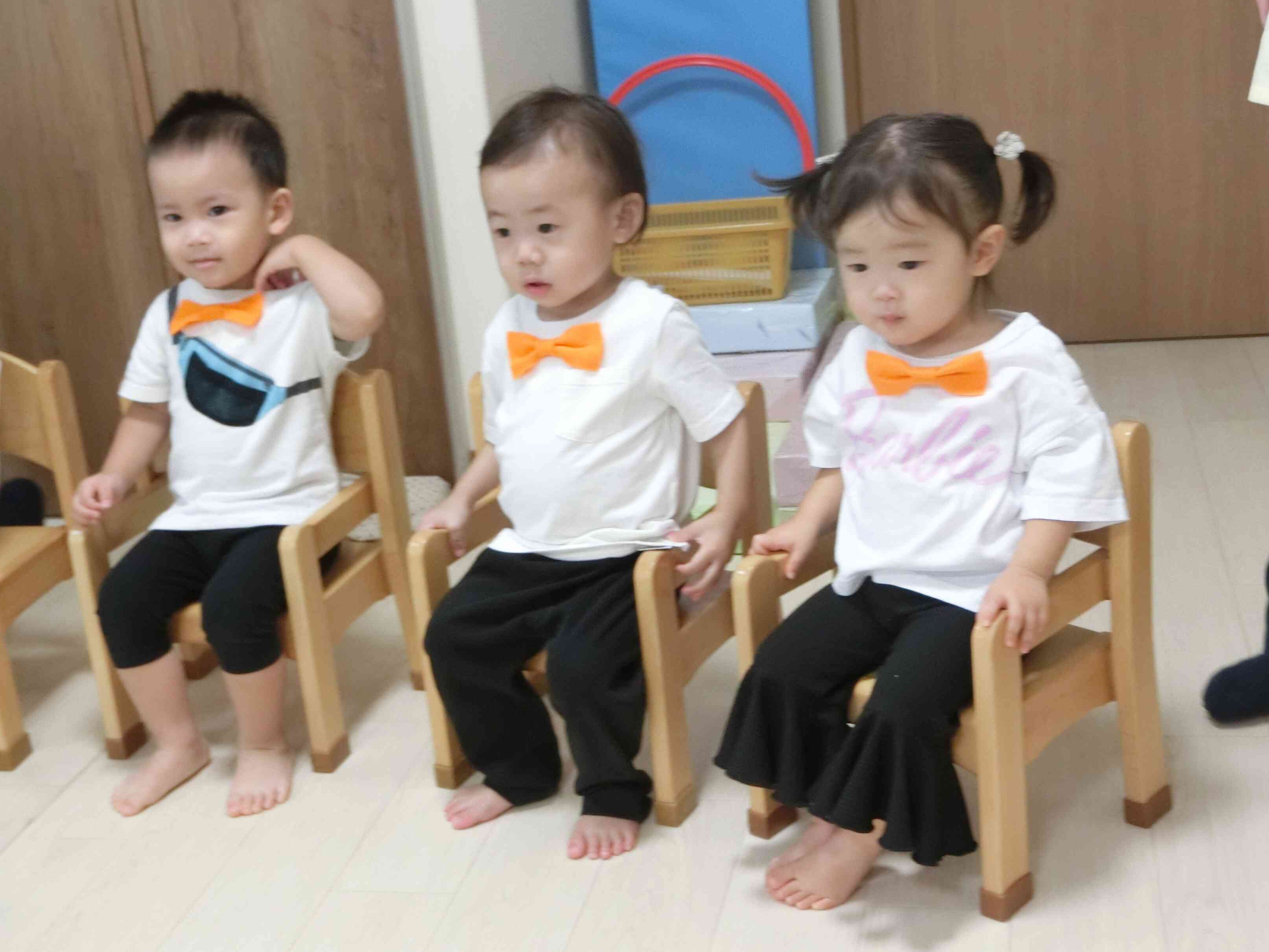 緊張して普段通りの姿とはいきませんでしたが、保育者と一緒に頑張って台詞を言おうとする姿に成長を感じました!