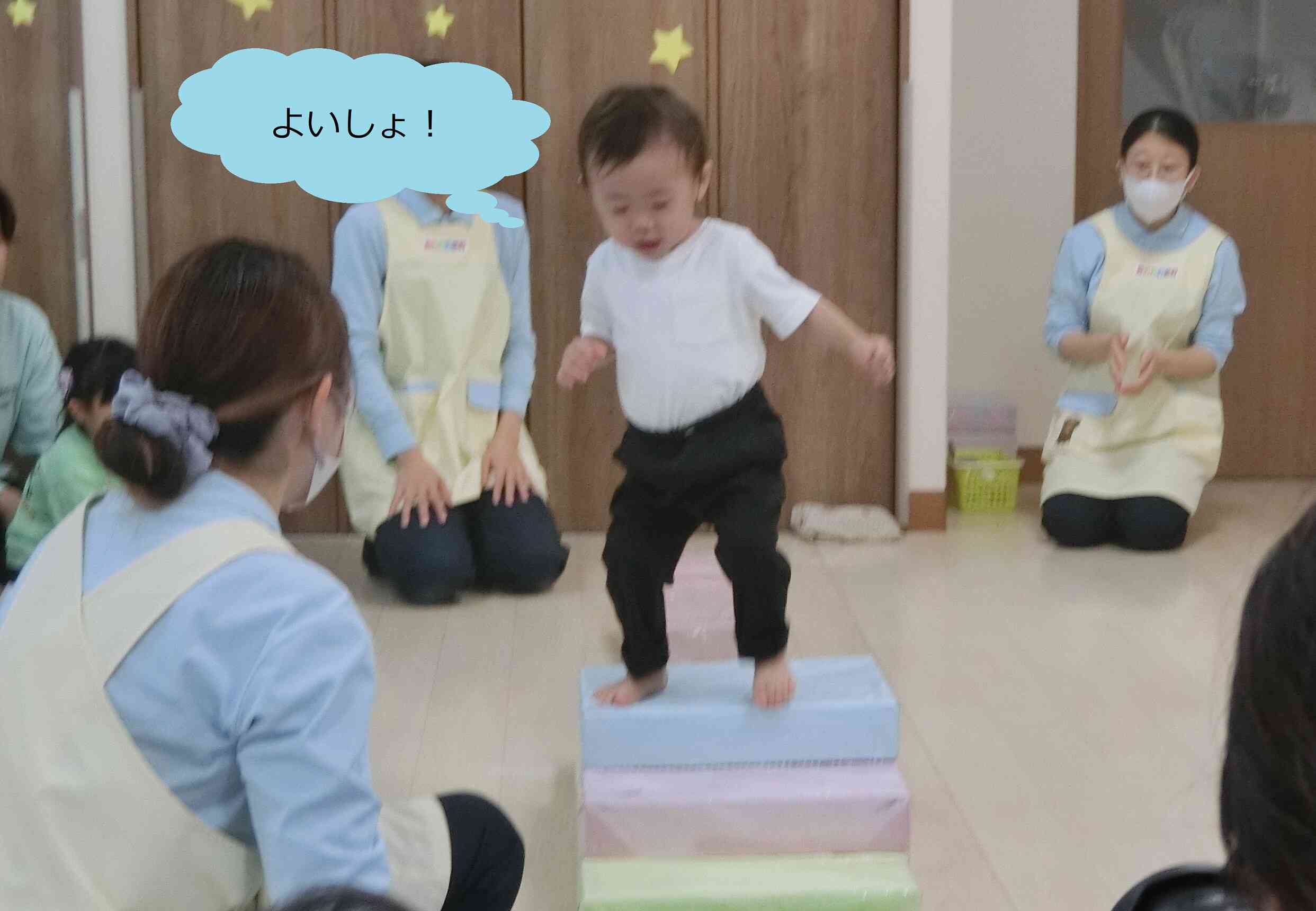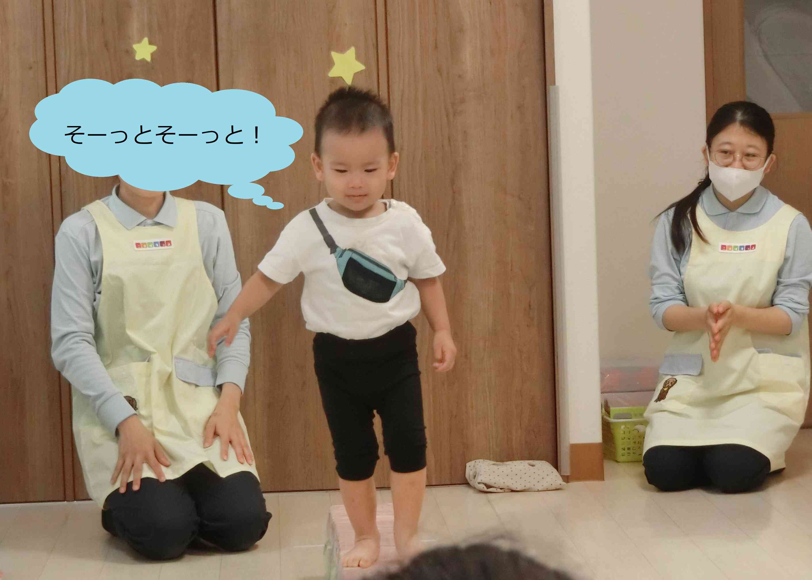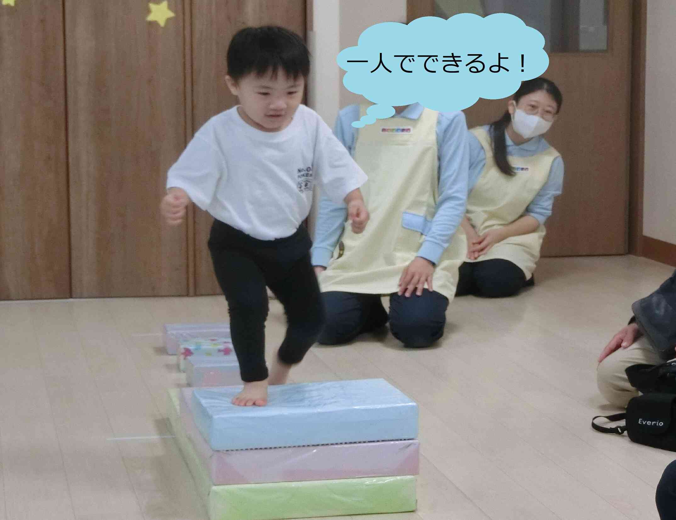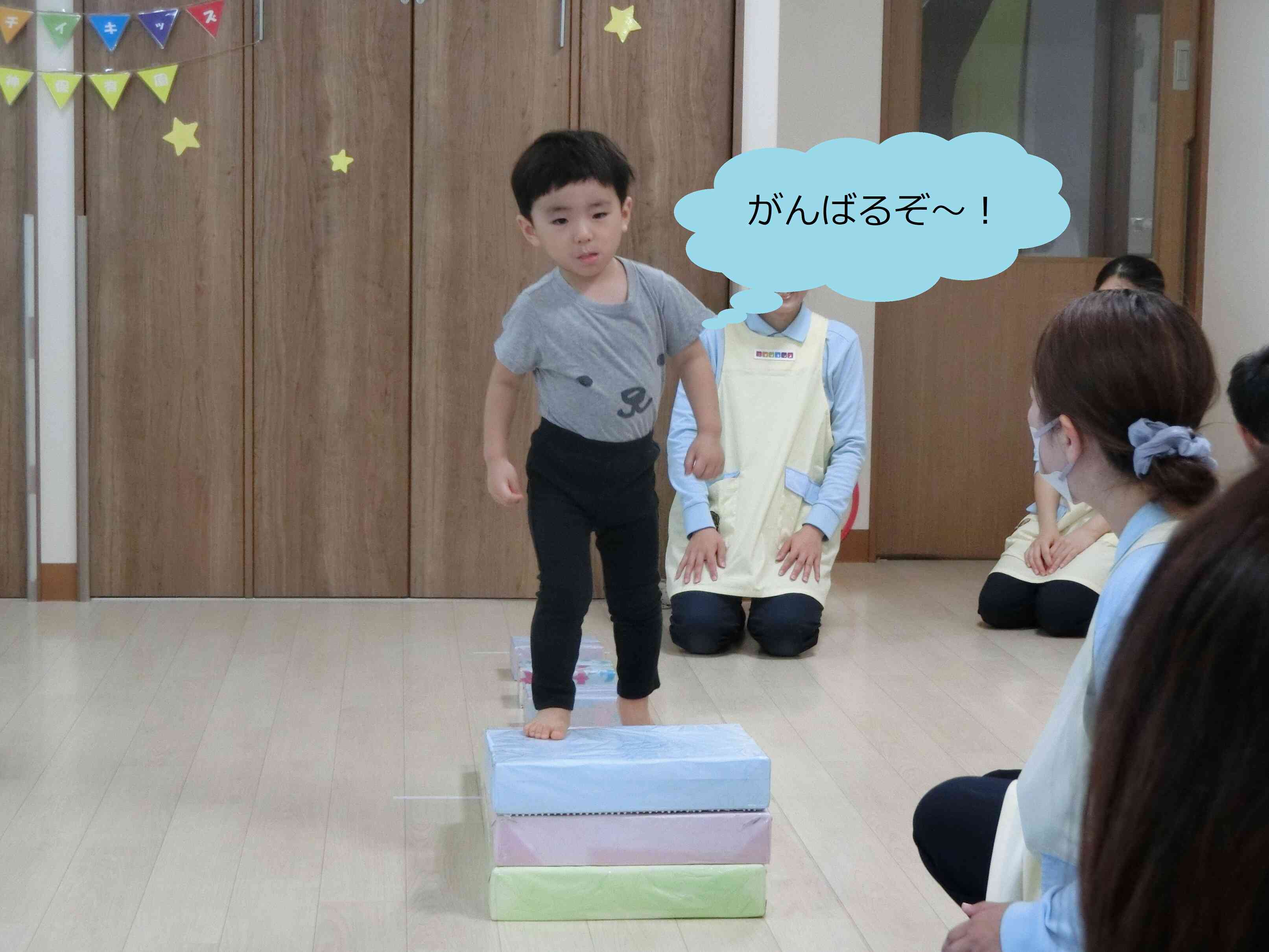 サーキット遊びでは年齢に合わせて平均代、階段、マット運動に挑戦しました!