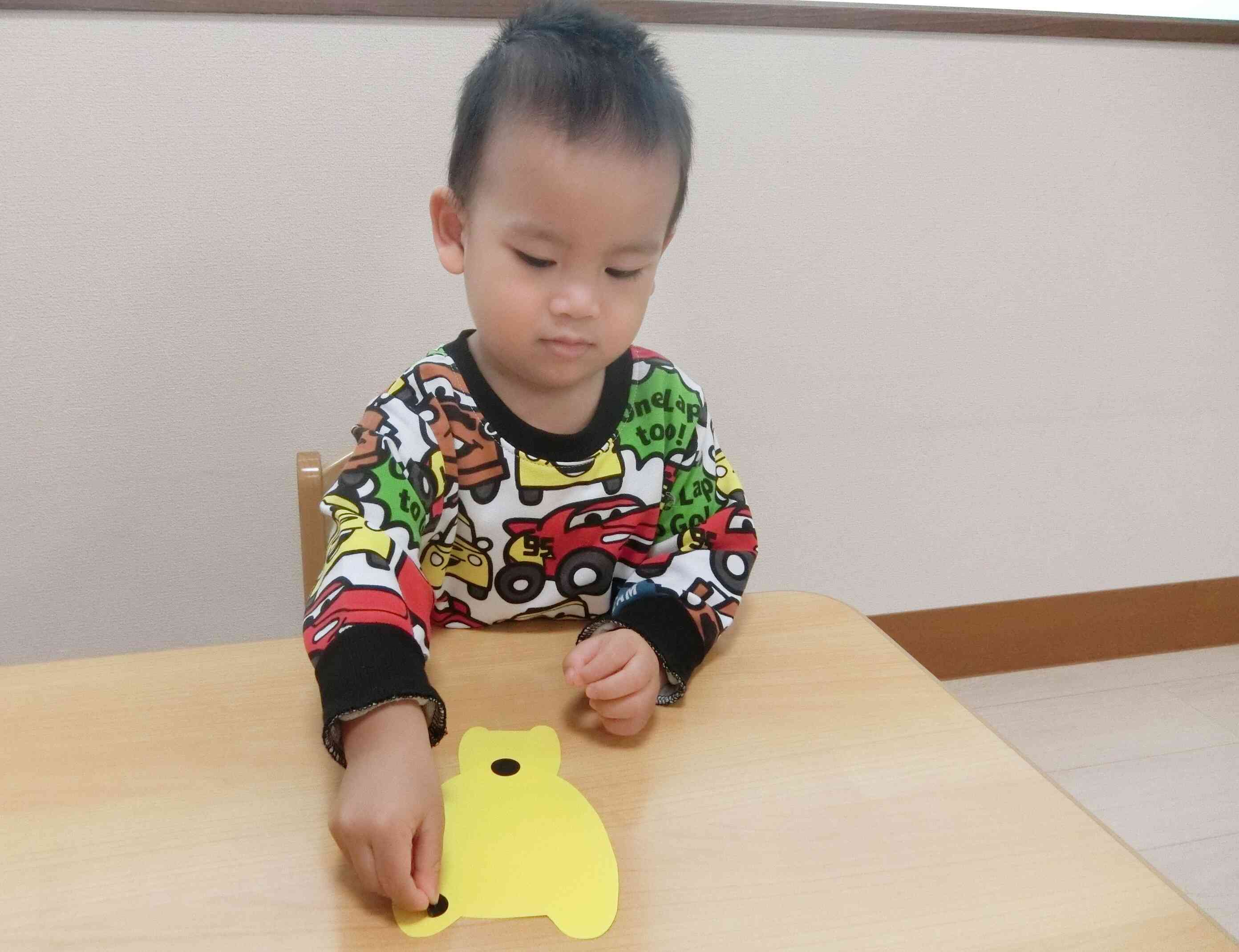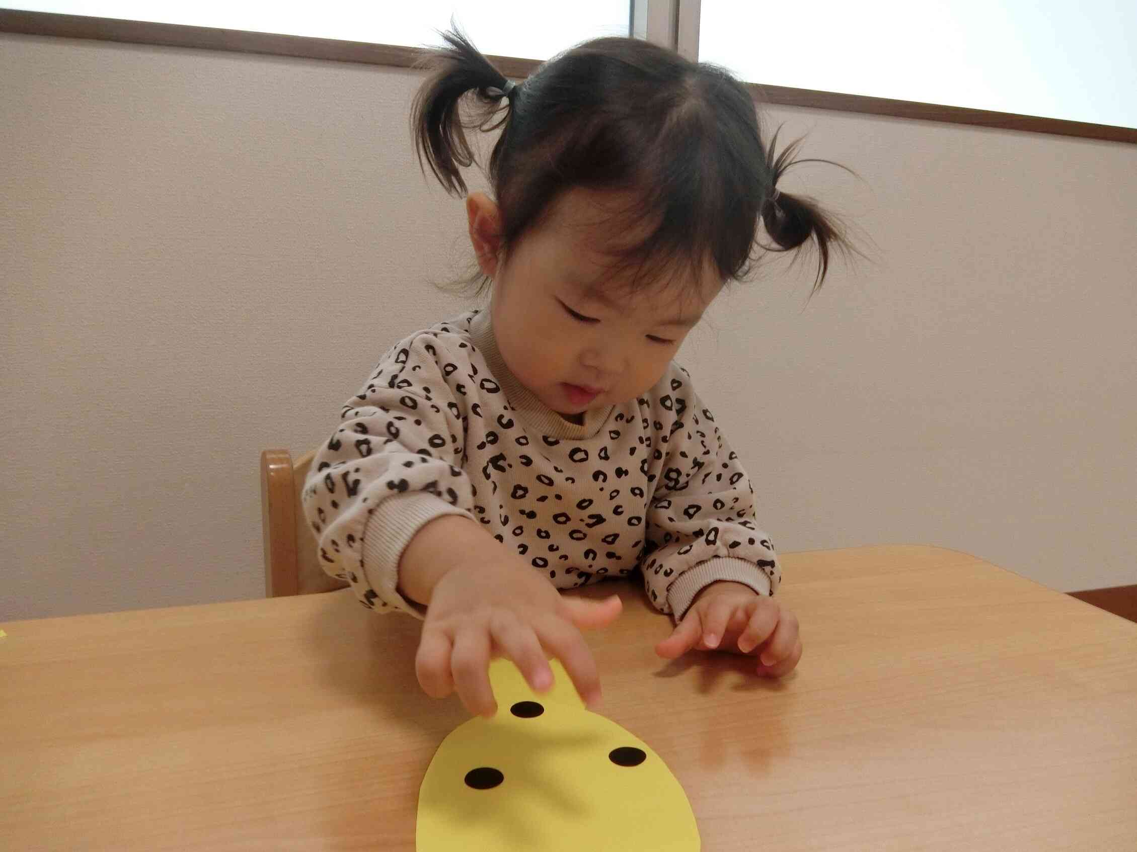 折り紙を折ったり、足型をとったり、シールを貼ったり…季節の歌で”こぎつね”の歌を歌っているので、興味を持って集中して楽しみながら取り組んでいましたよ。