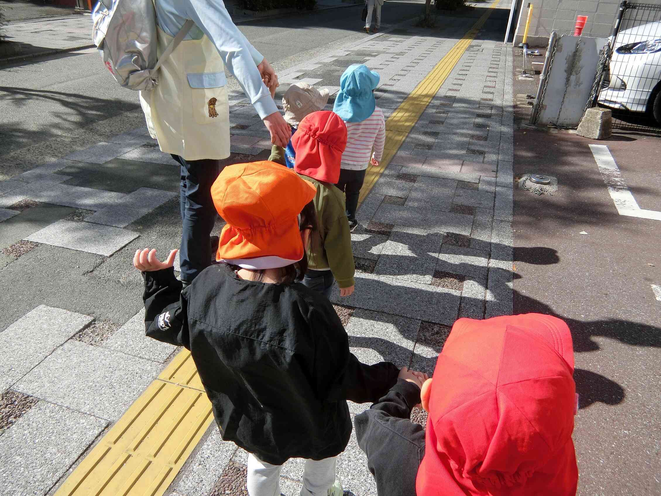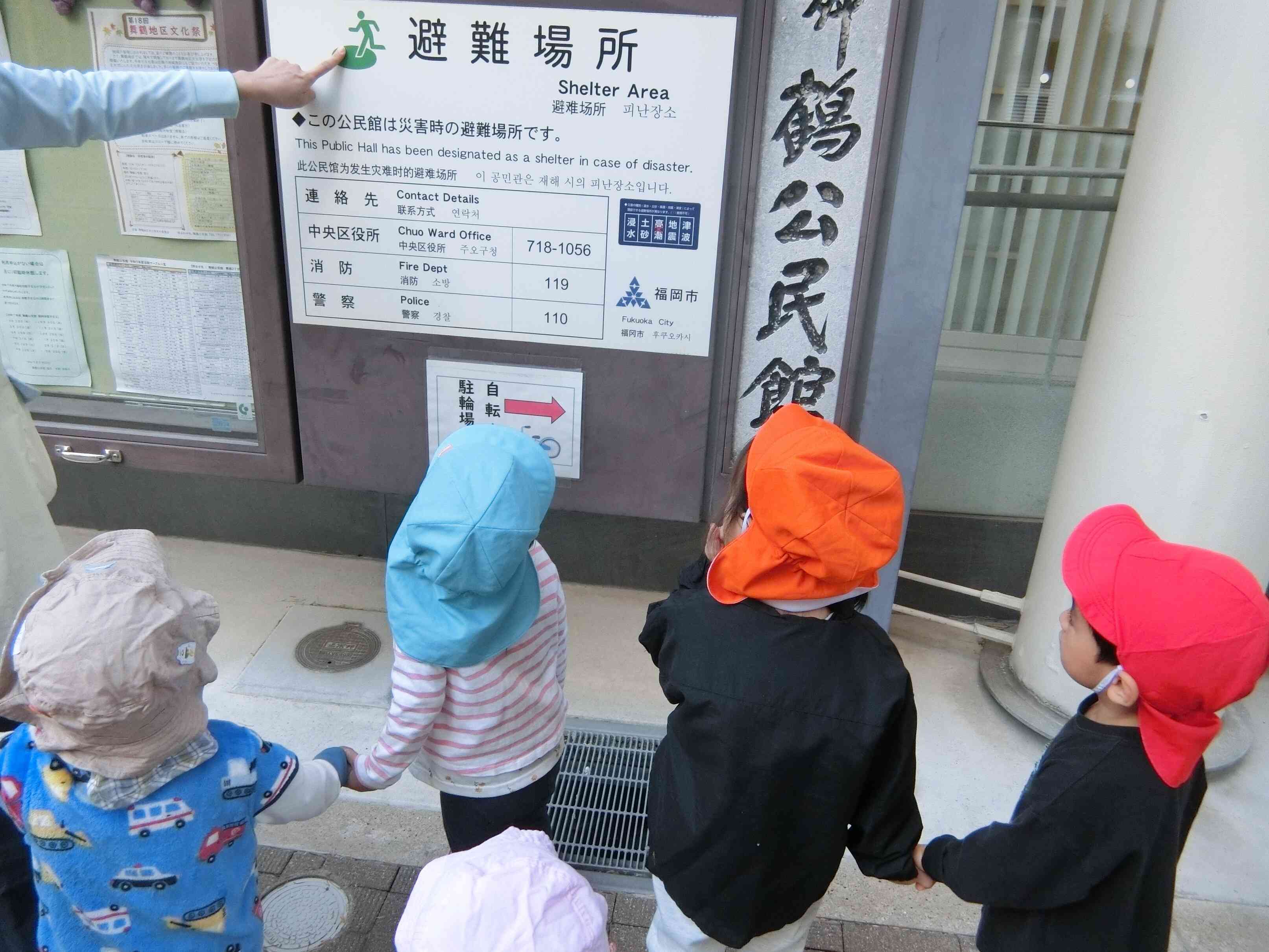 その後、火事の知らせを聞くと、保育者の誘導に従って口をおさえながら速やかに落ち着いて園外に出て、実際の避難所まで歩いて避難をしました。