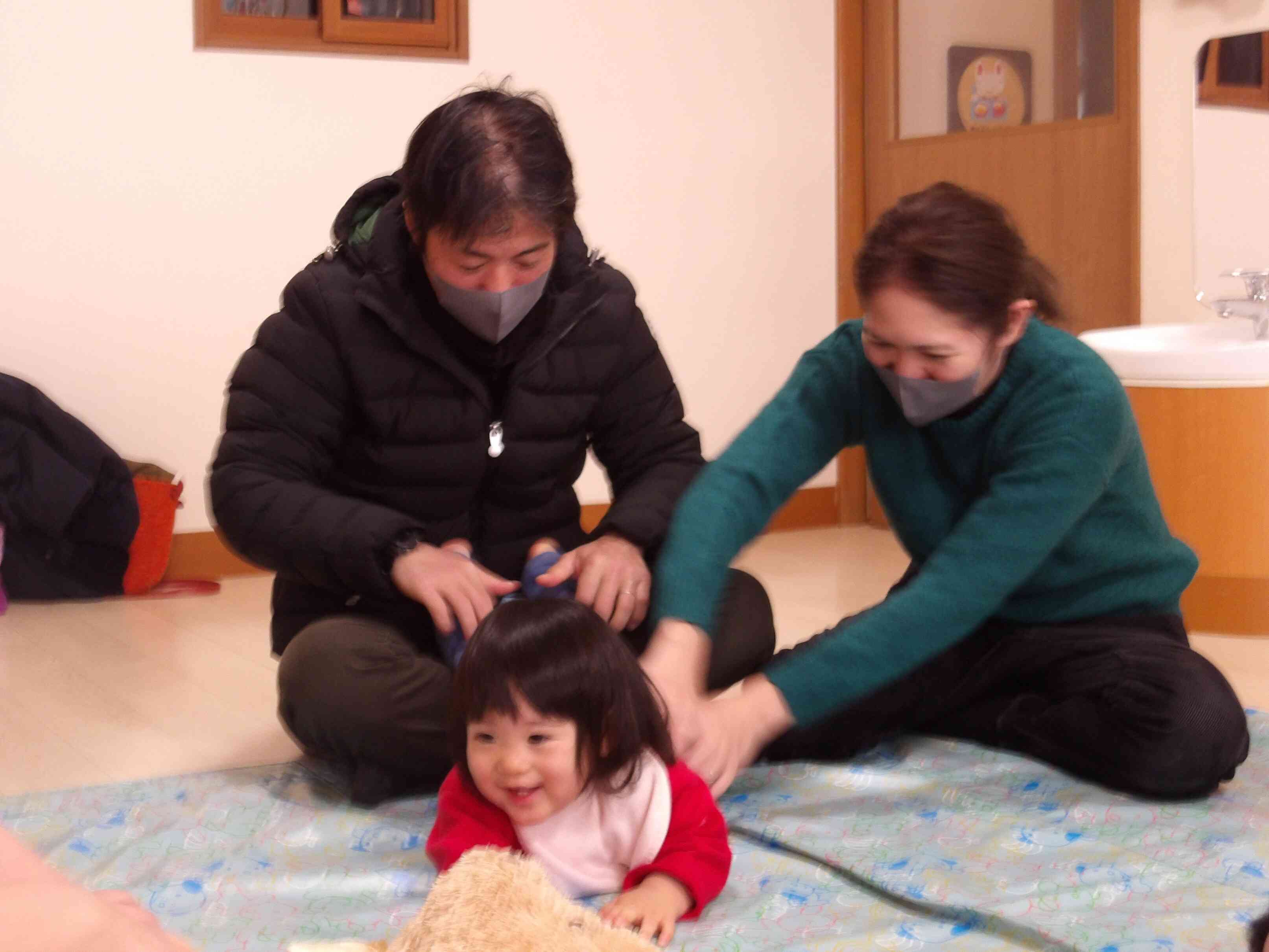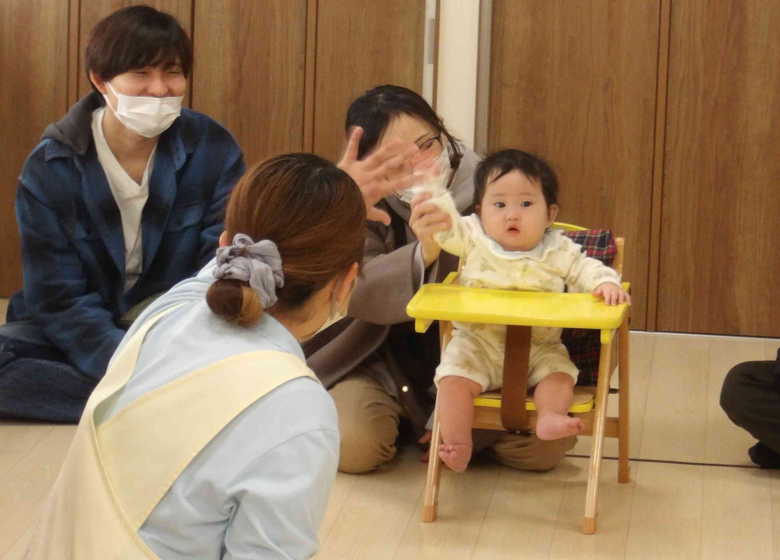 いないいないばあの遊びやくすぐる遊びでは声を出して笑っていて、子どもたちがとても素敵な笑顔だったのが印象的でした♪