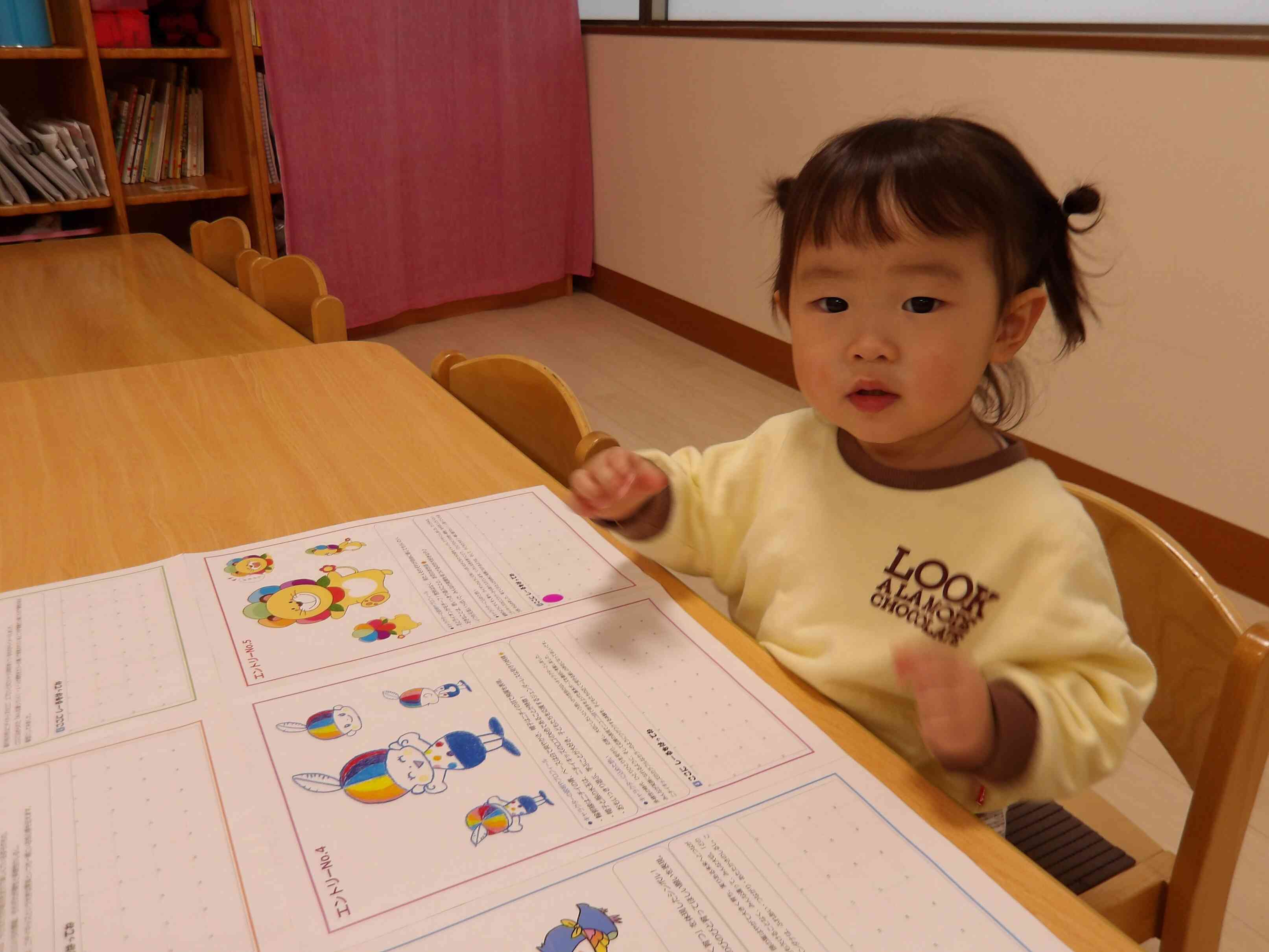 「どれがいいかな~」「これが可愛い!」と話しながら気に入ったキャラクターにシールを貼りました。