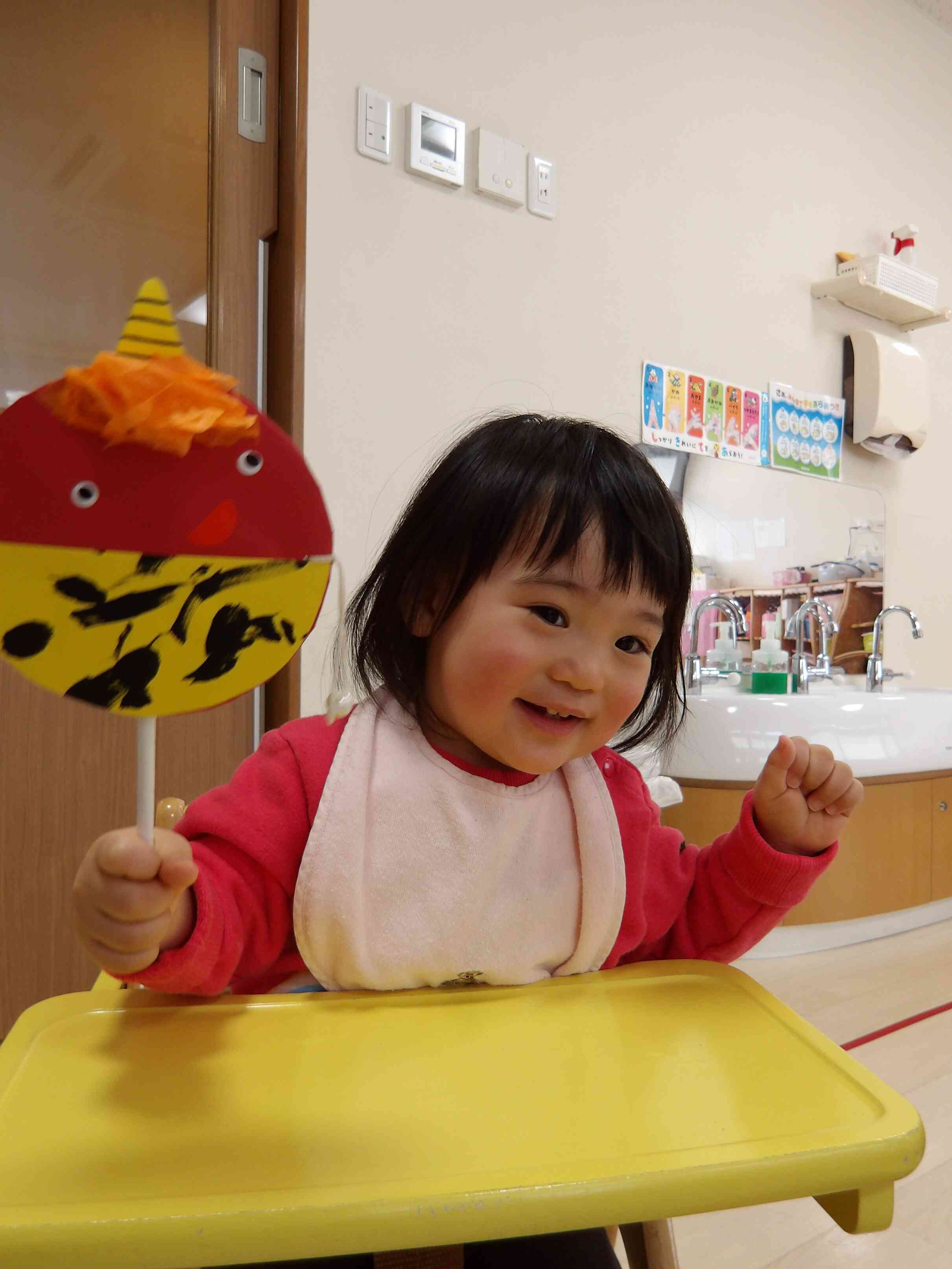 皆の心の中にはどんな鬼が住んでいるかな?と一緒に考え、豆まきに向けて気合十分な子どもたちでしたよ!