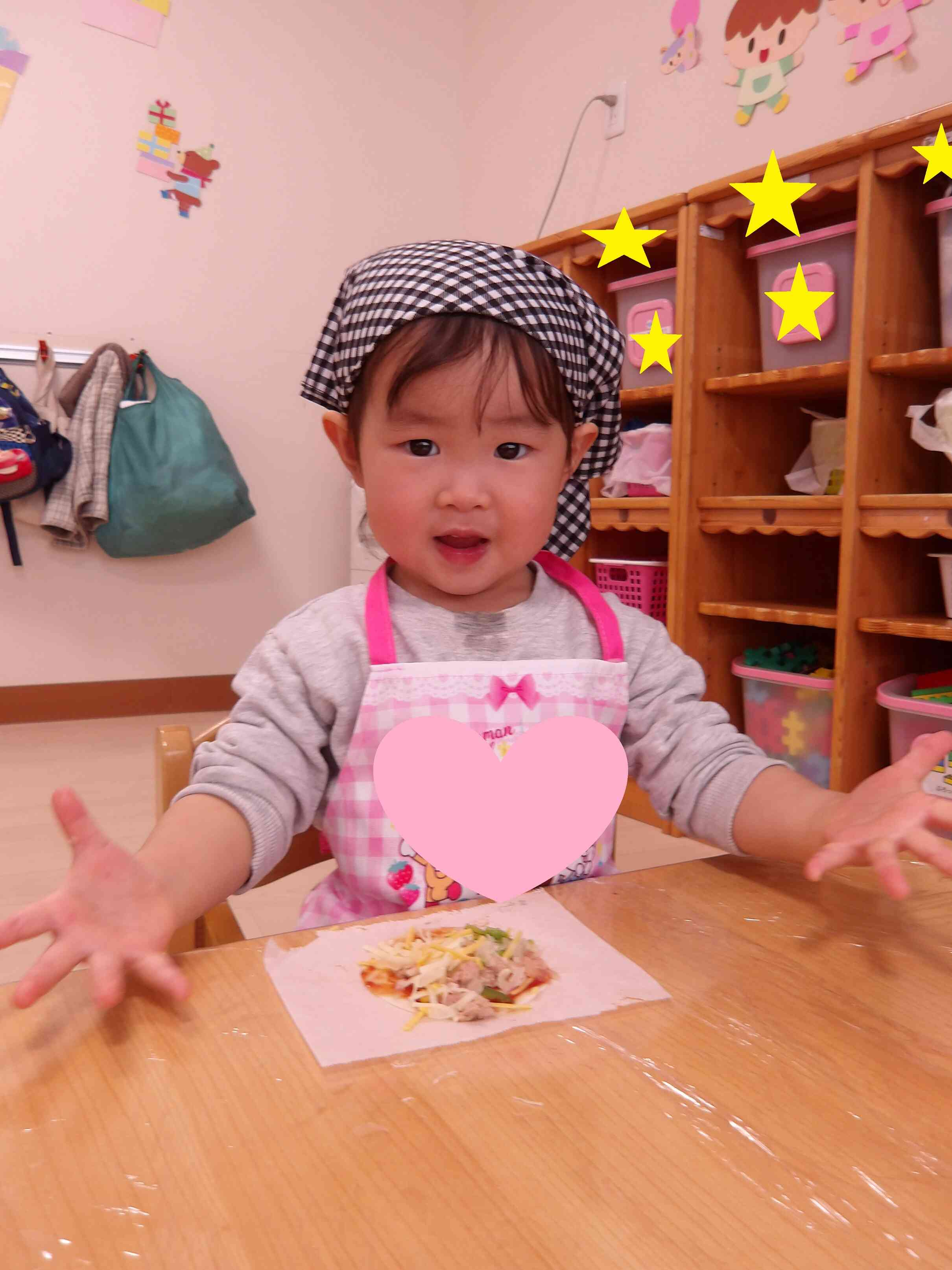 完成したピザは調理し、午後のおやつとして美味しくいただきました♪