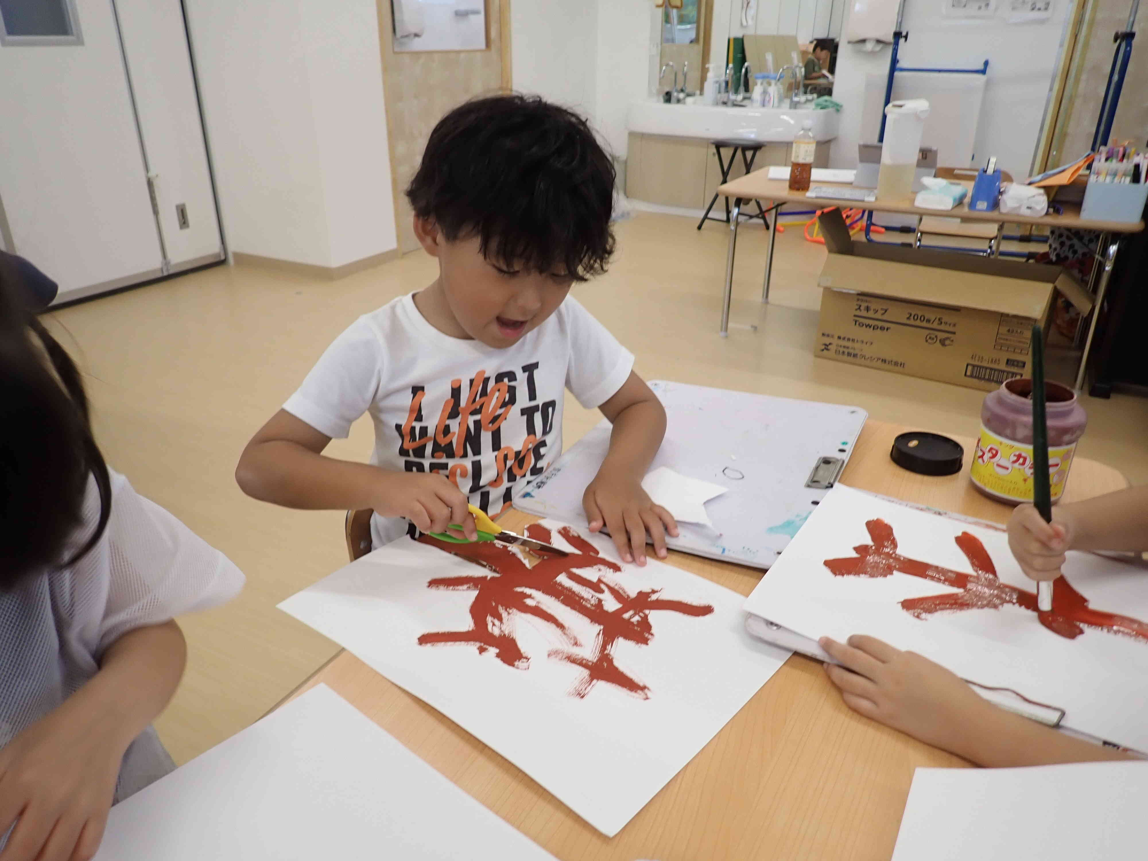 始めは「え~こんなん簡単やん」と言っていましたが、だんだんと複雑な折り方になり「え?え?どうゆう事?」と難しい表情。