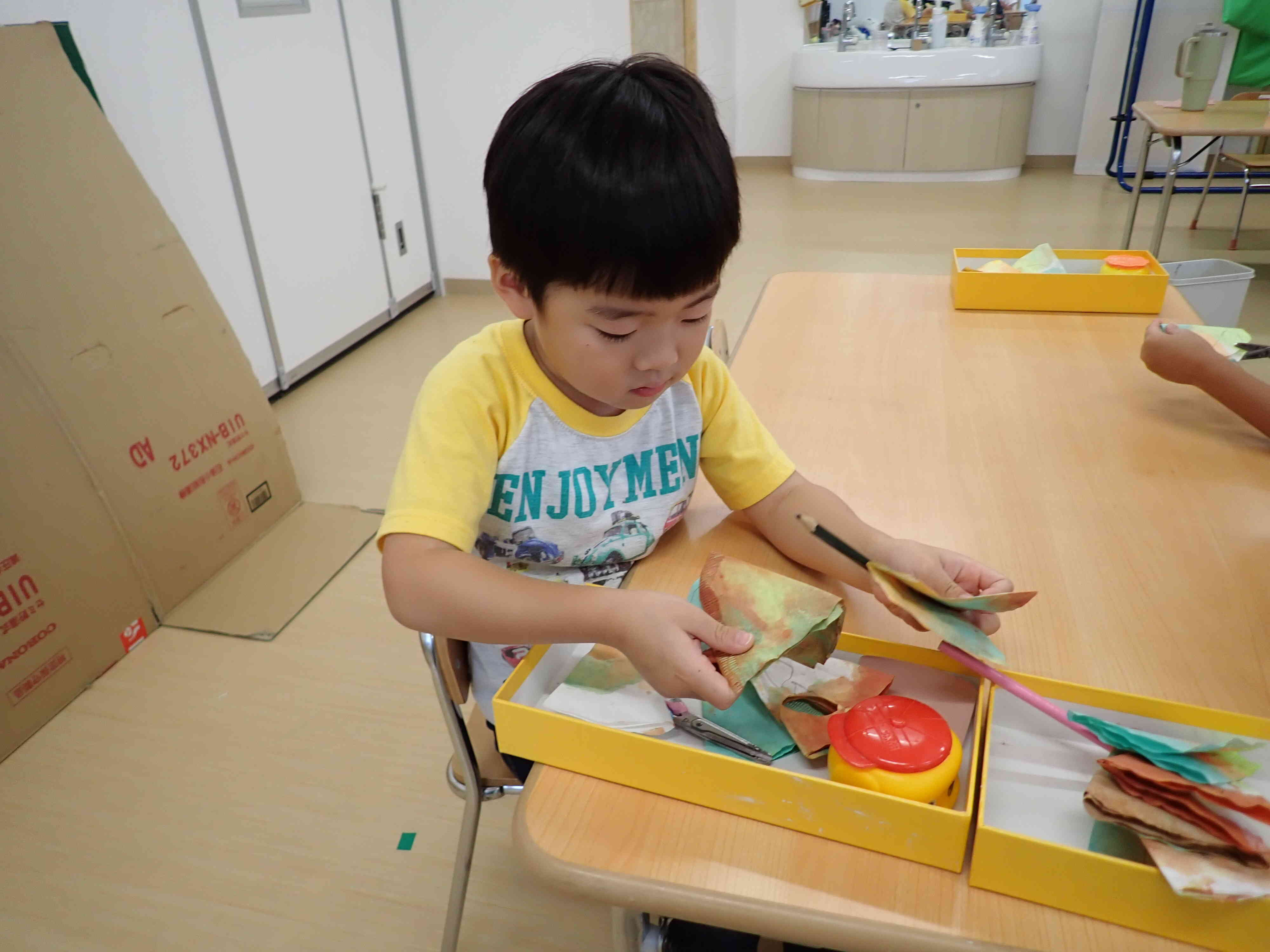 折り紙がとっても上手なきりん組さんには難易度がアップしたフクロウ折りに挑戦!
