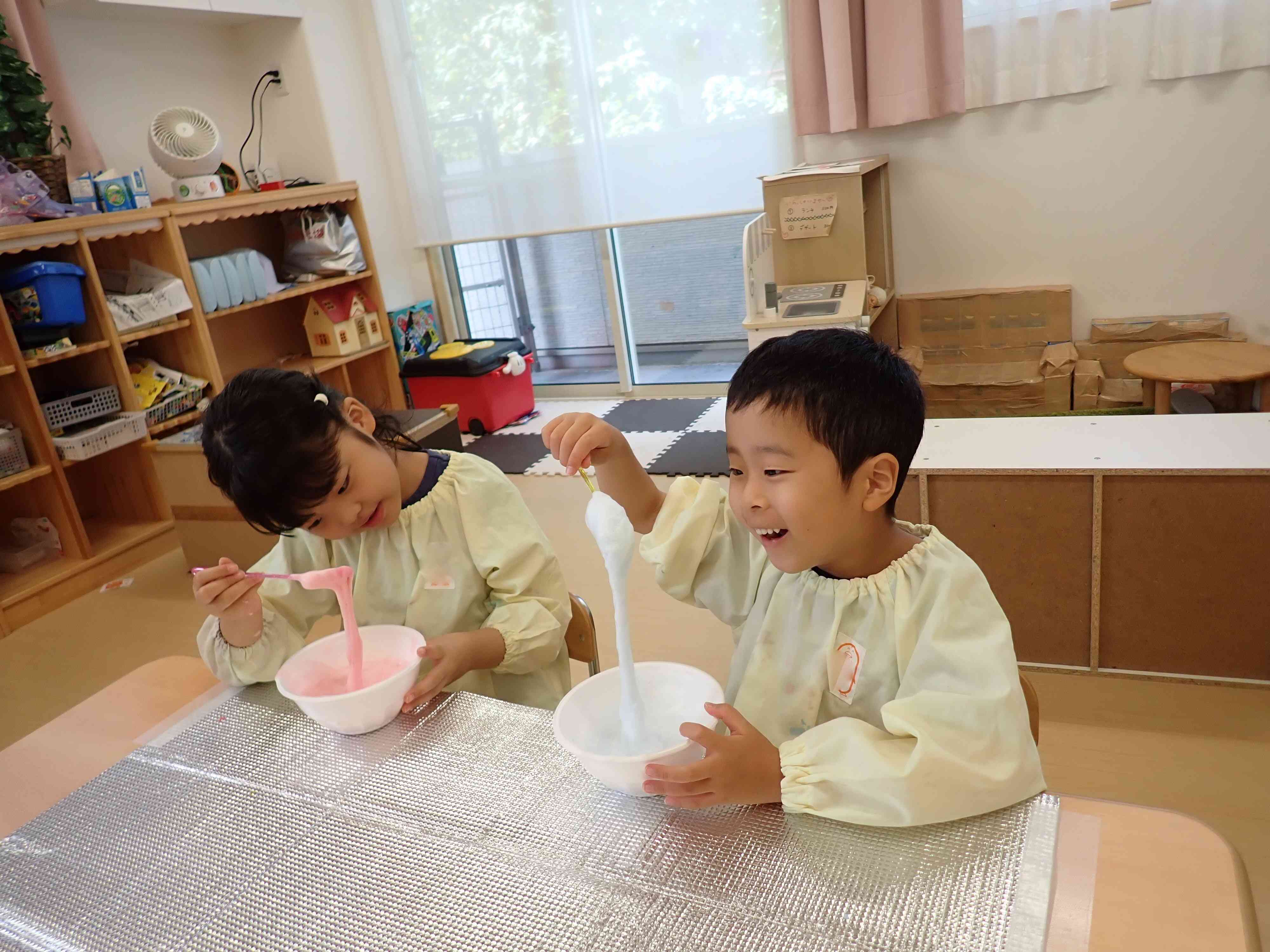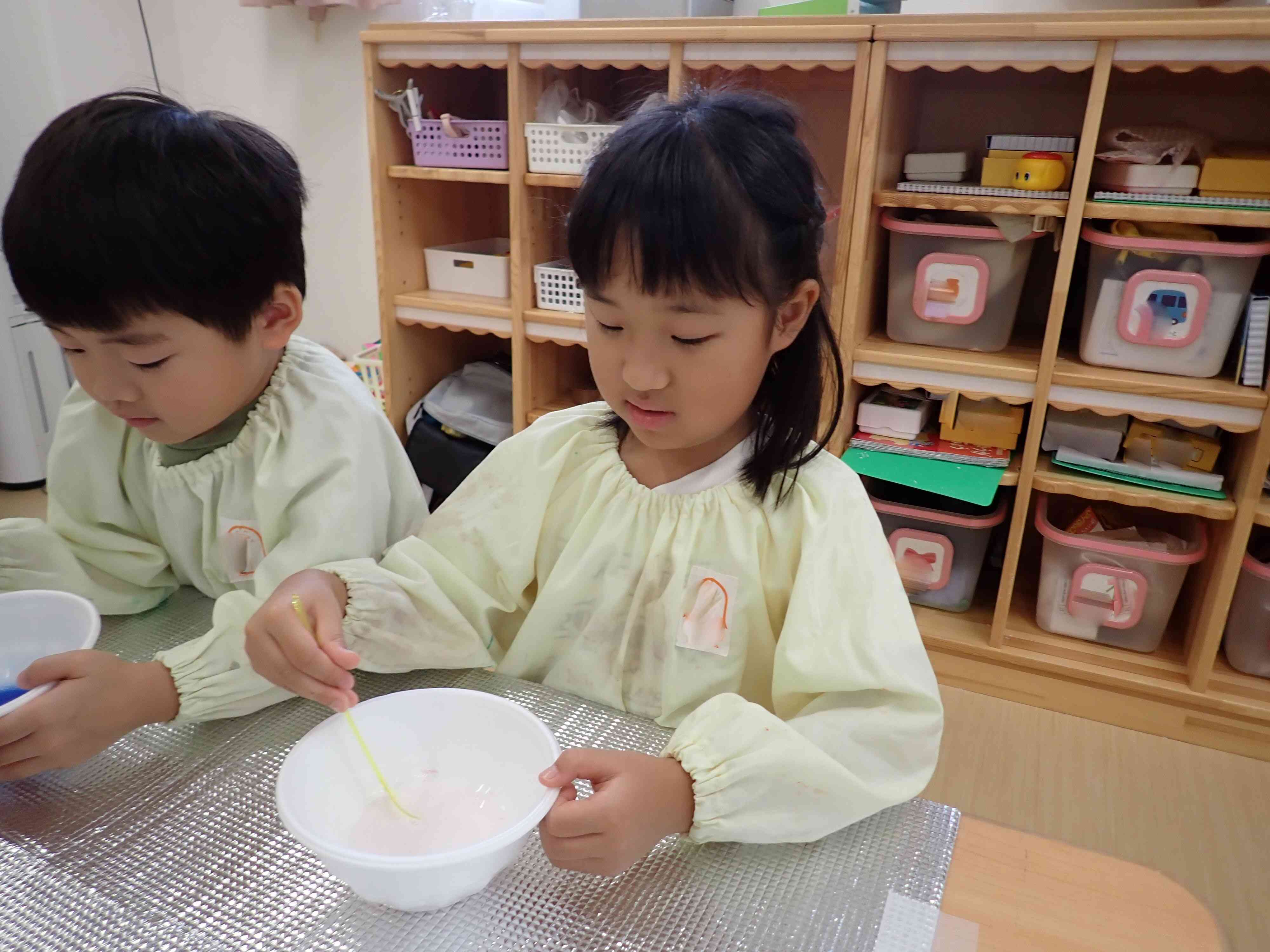 「もっと魔法の水入れてみたらいいんじゃない」とお友だち同士で研究♪