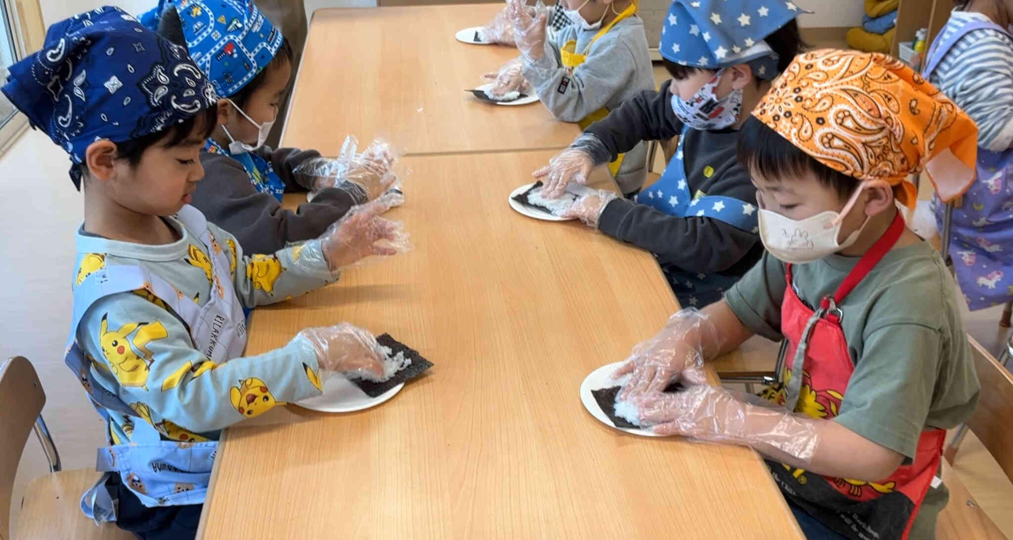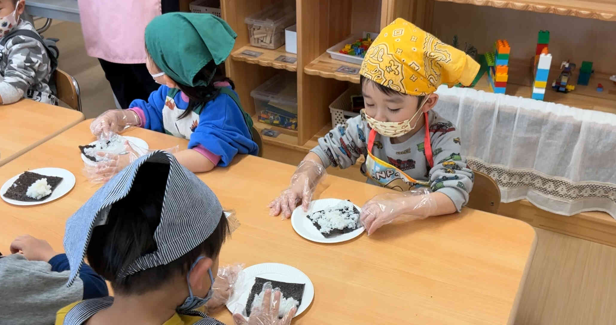 エプロンをつけて、手を洗って、恵方巻作りの準備完了!