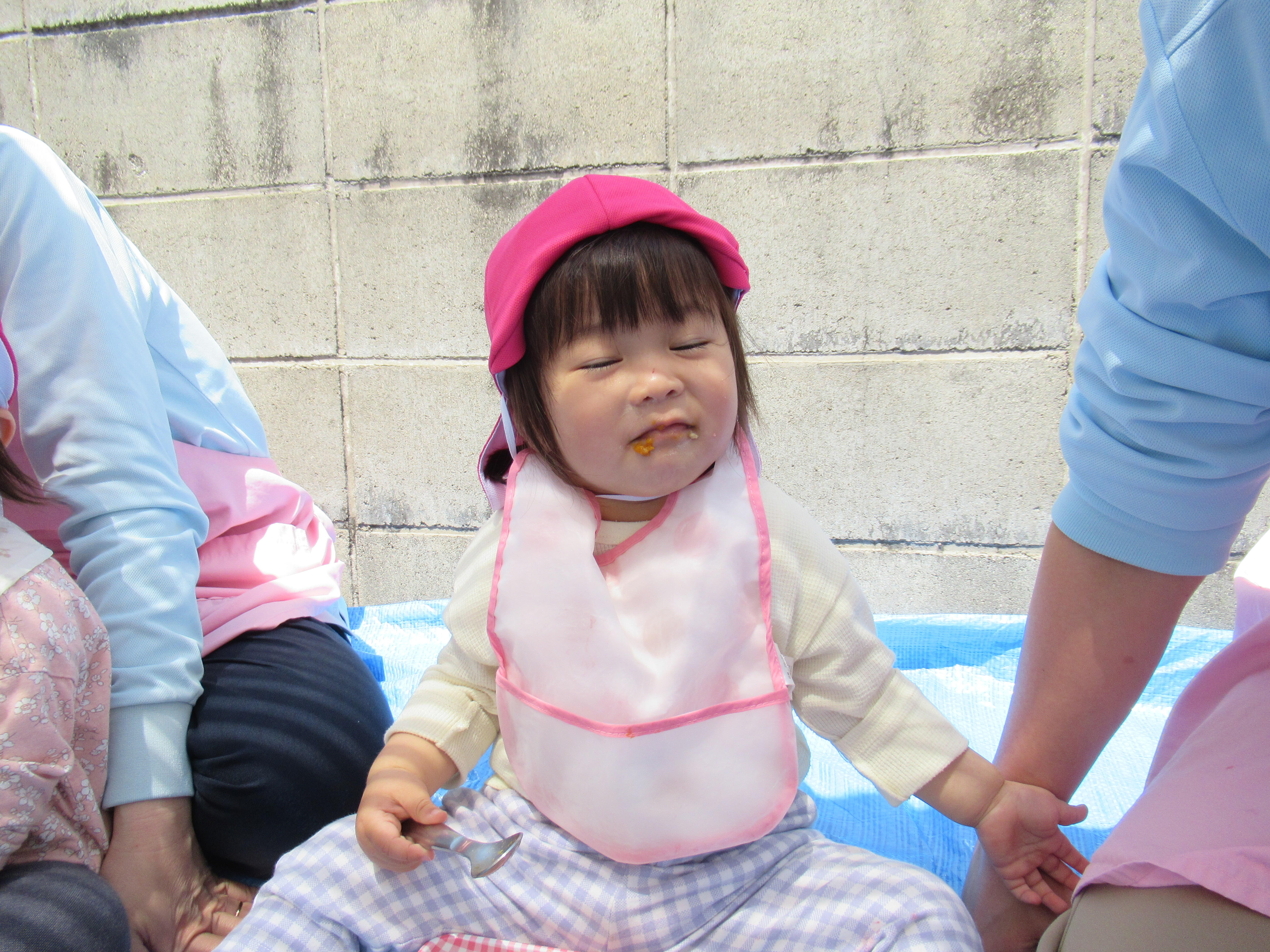 今日はピクニックランチということで園庭でお弁当を食べました!