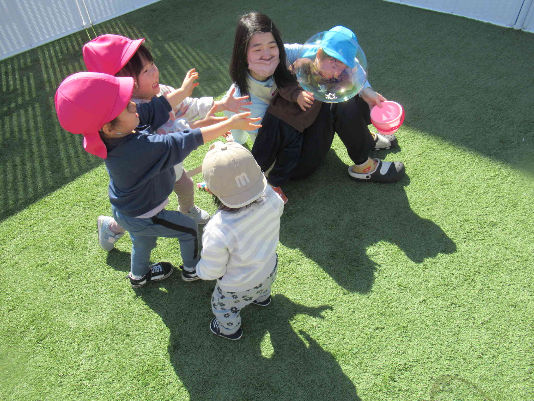 園庭でしゃぼん玉あそびを楽しみました。