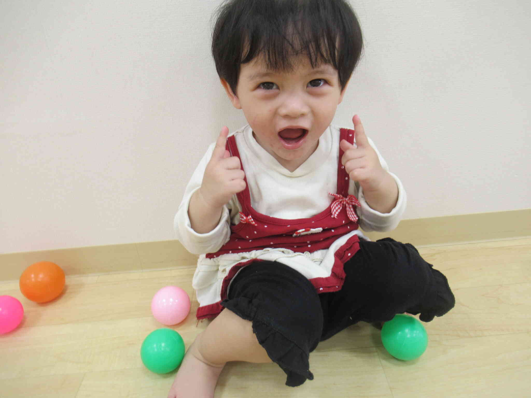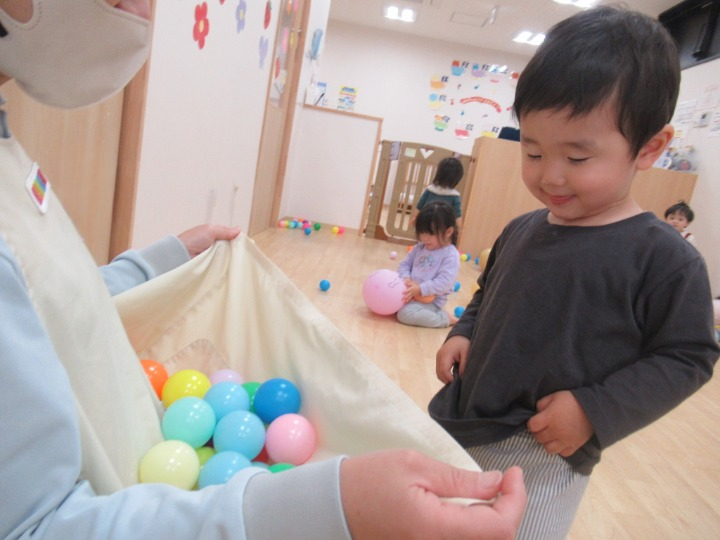 室内でボールと風船であそびました