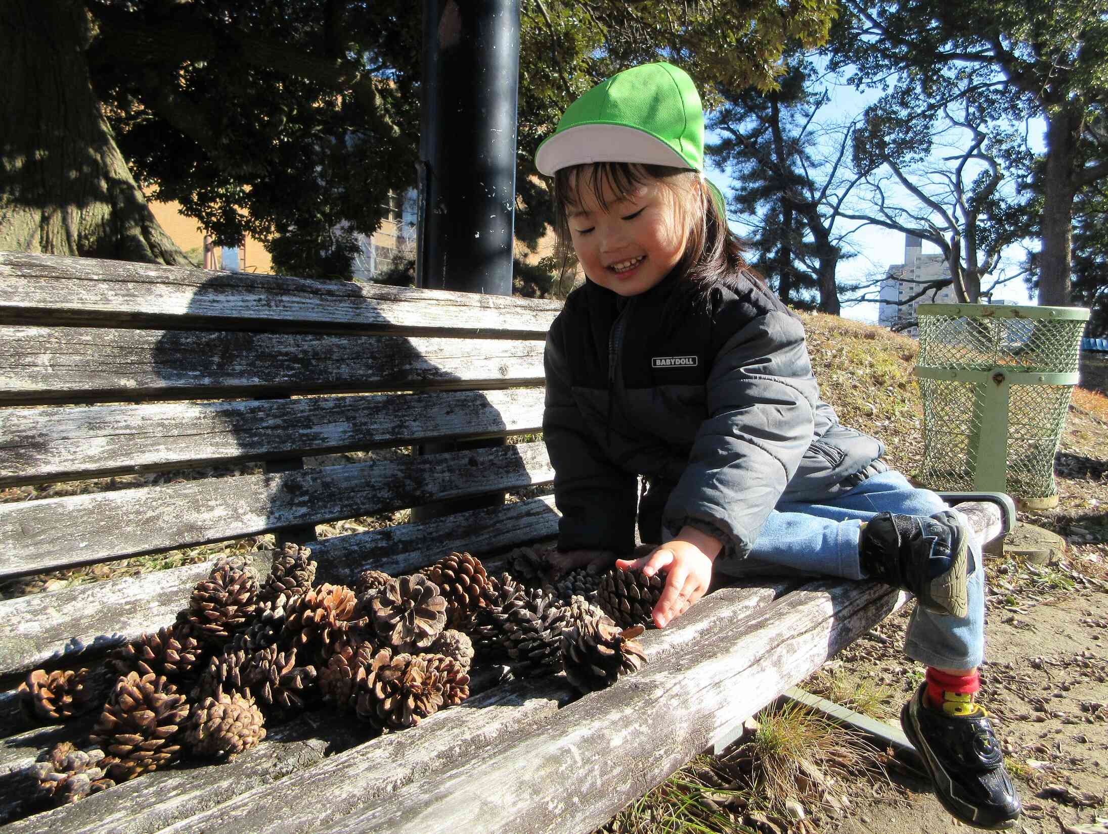 公園へ遊びに行くと草や土も冷たく固くなっていますが、霜柱のサクサクとした音が子どもたちはお気に入りです。「いいおとだね~」と冬ならではの遊びを楽しんでいます。