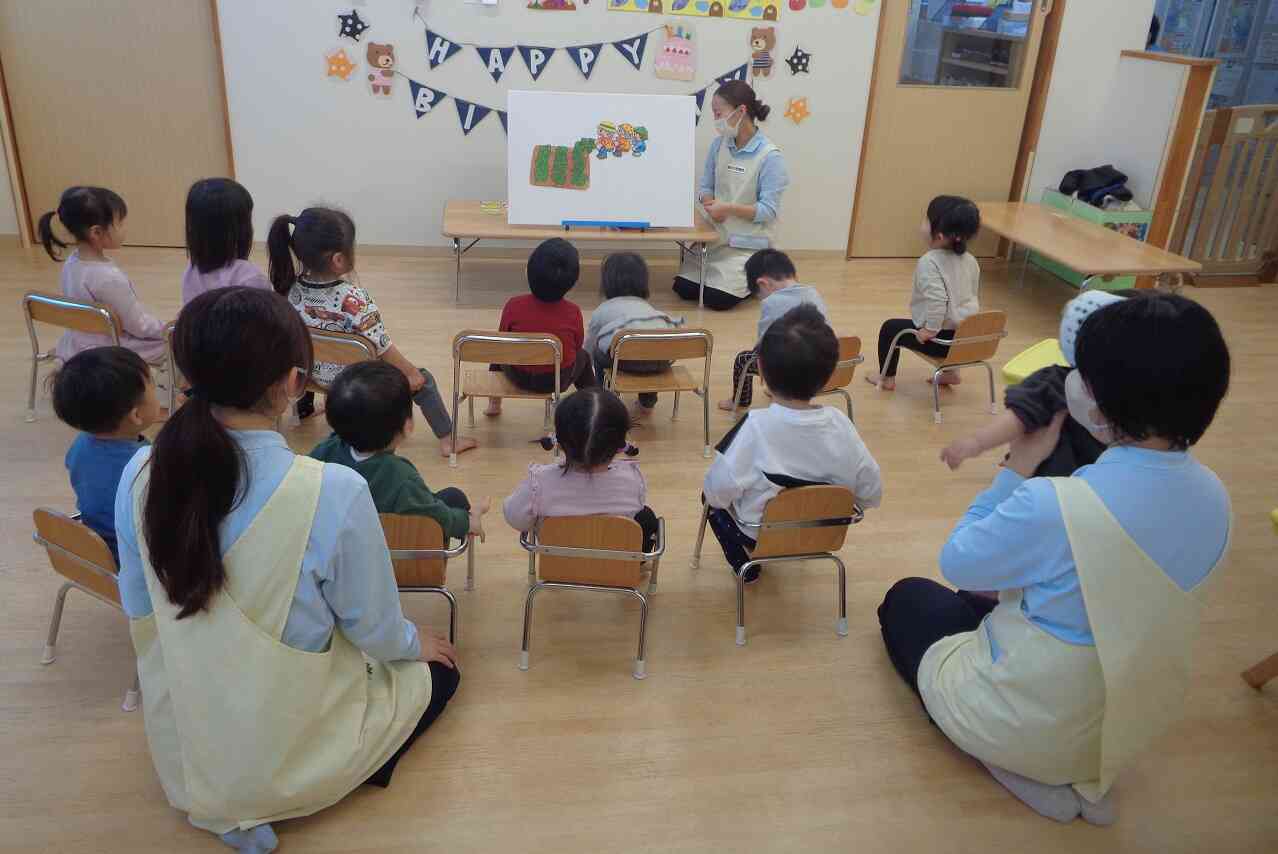 誕生カードに興味津々なうさぎ組のお姉さん!!